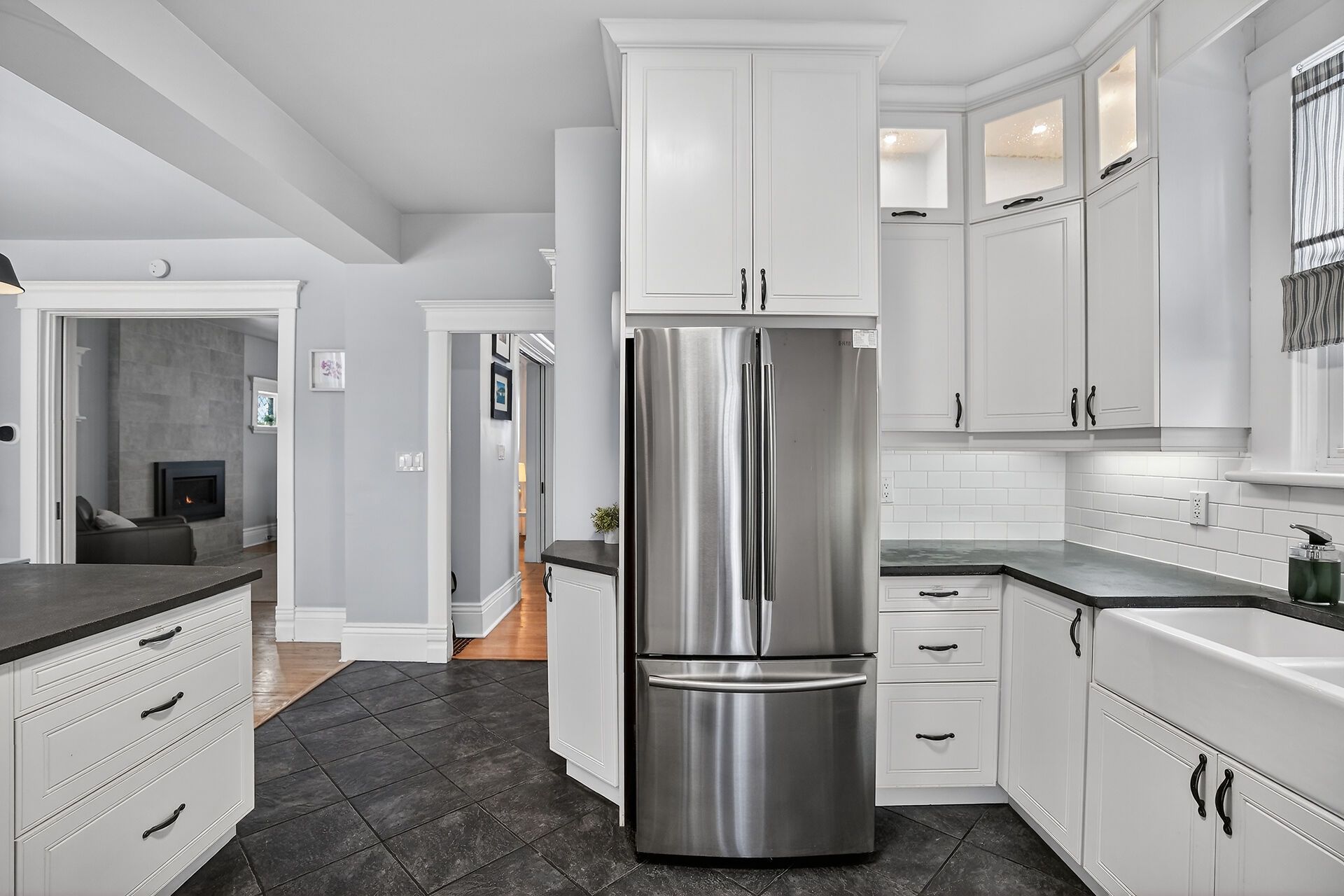 • Open-concept main floor with gas fireplace, perfect for living and entertaining.
