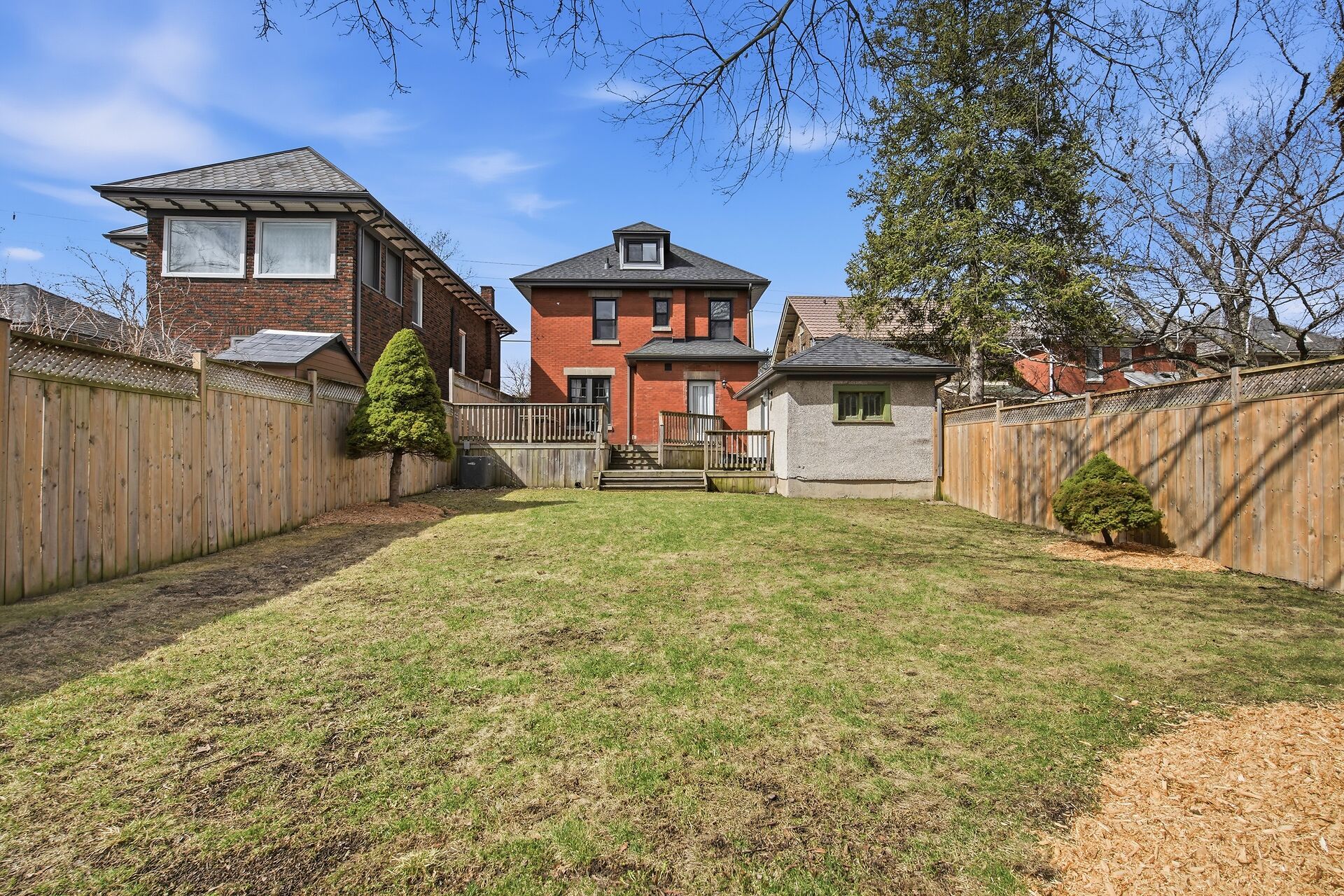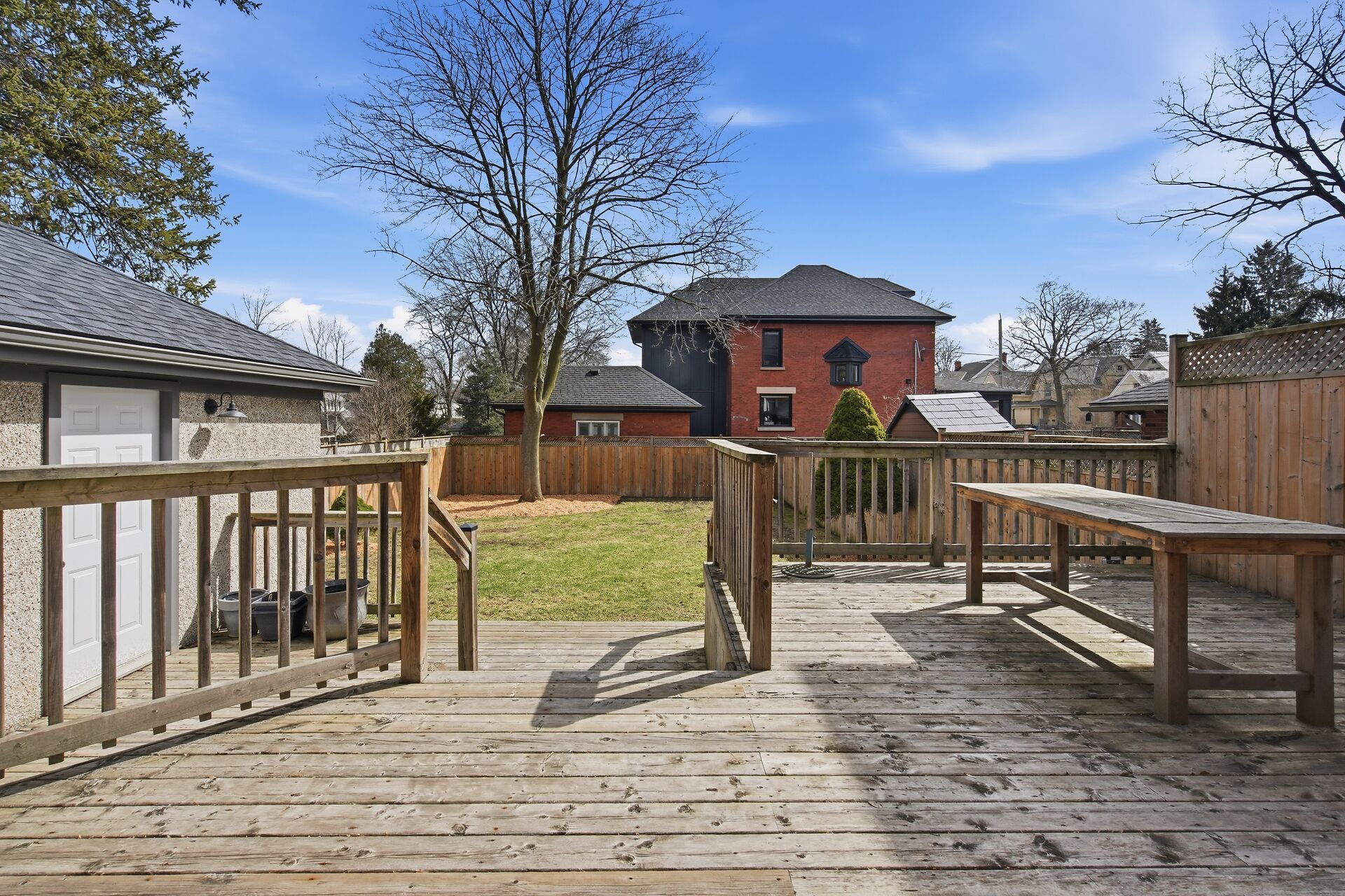 • Large fenced backyard ideal for gathering, gardening, or relaxing.