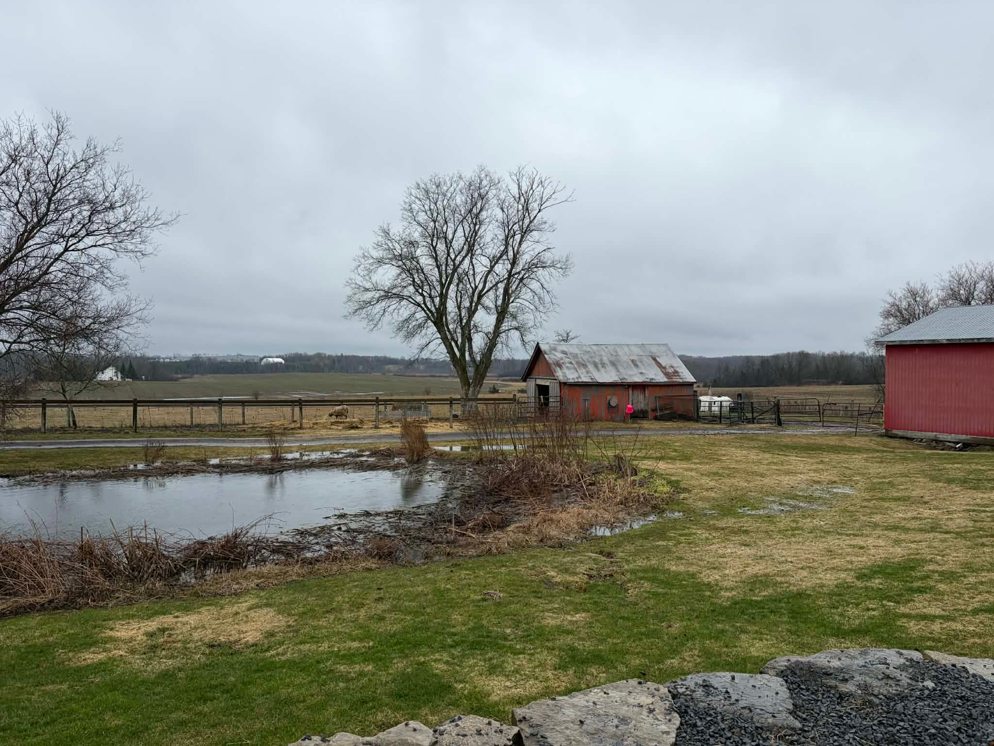 • Detached garage, small barn, pond, and paddock for versatile use.