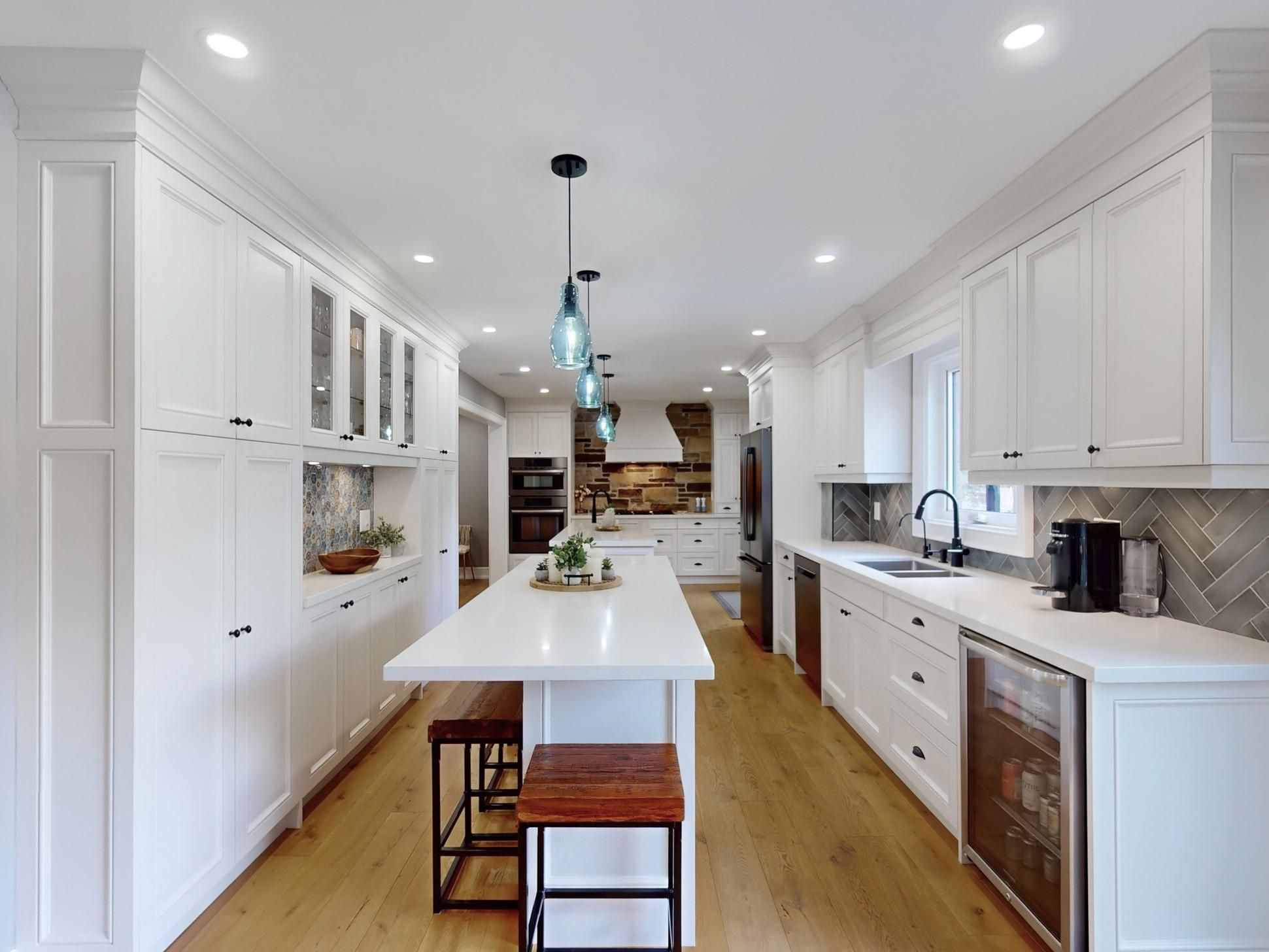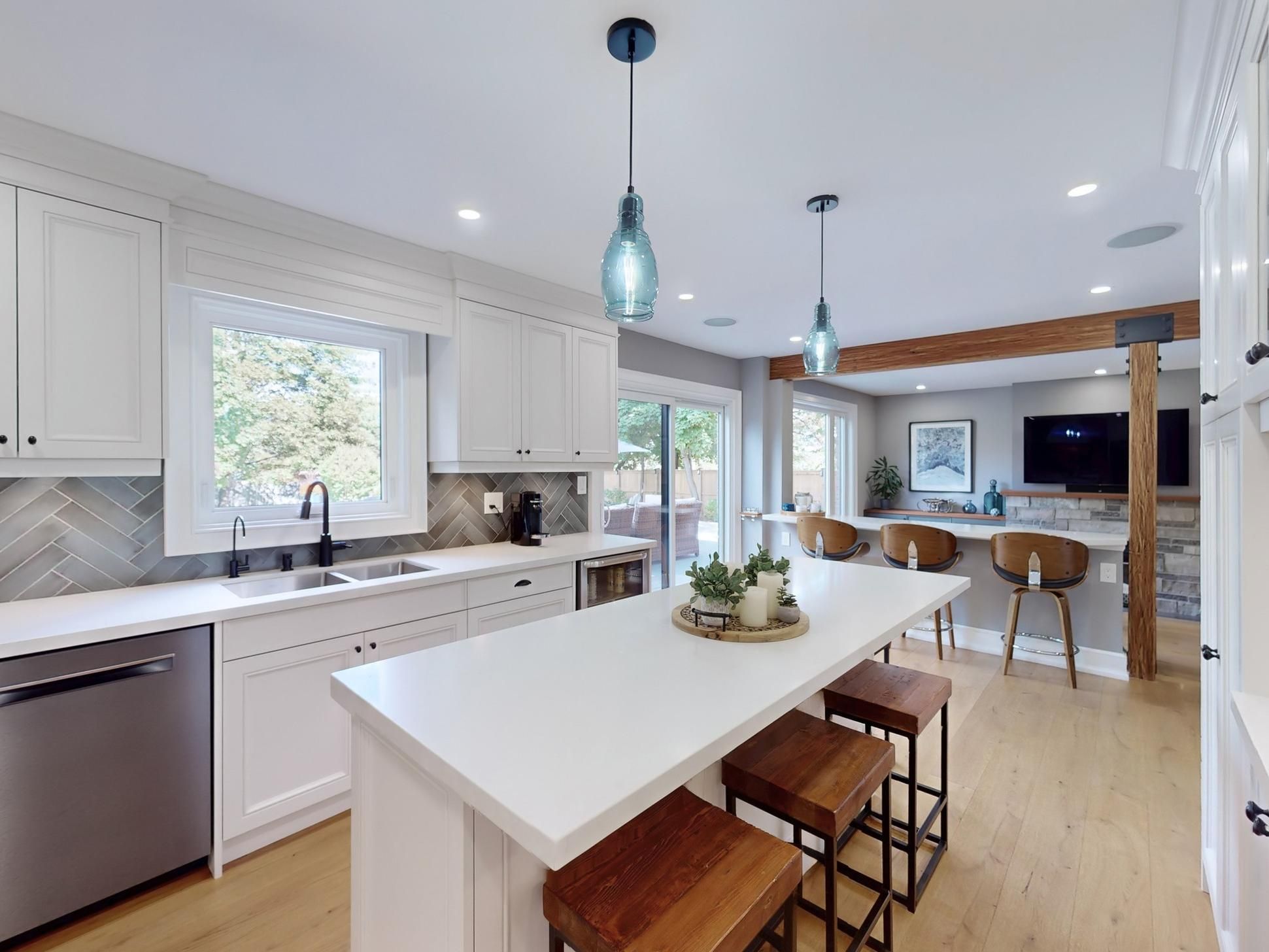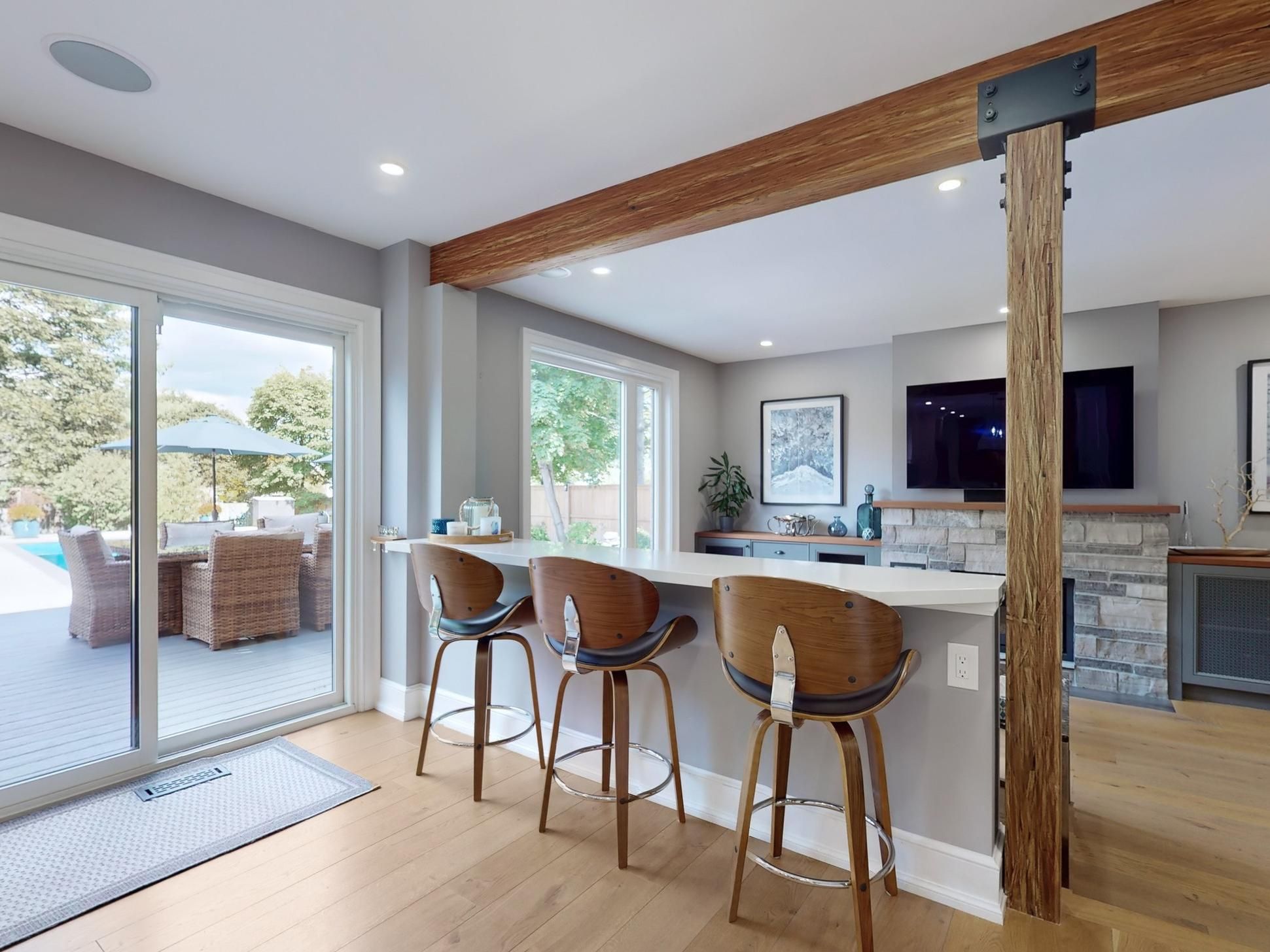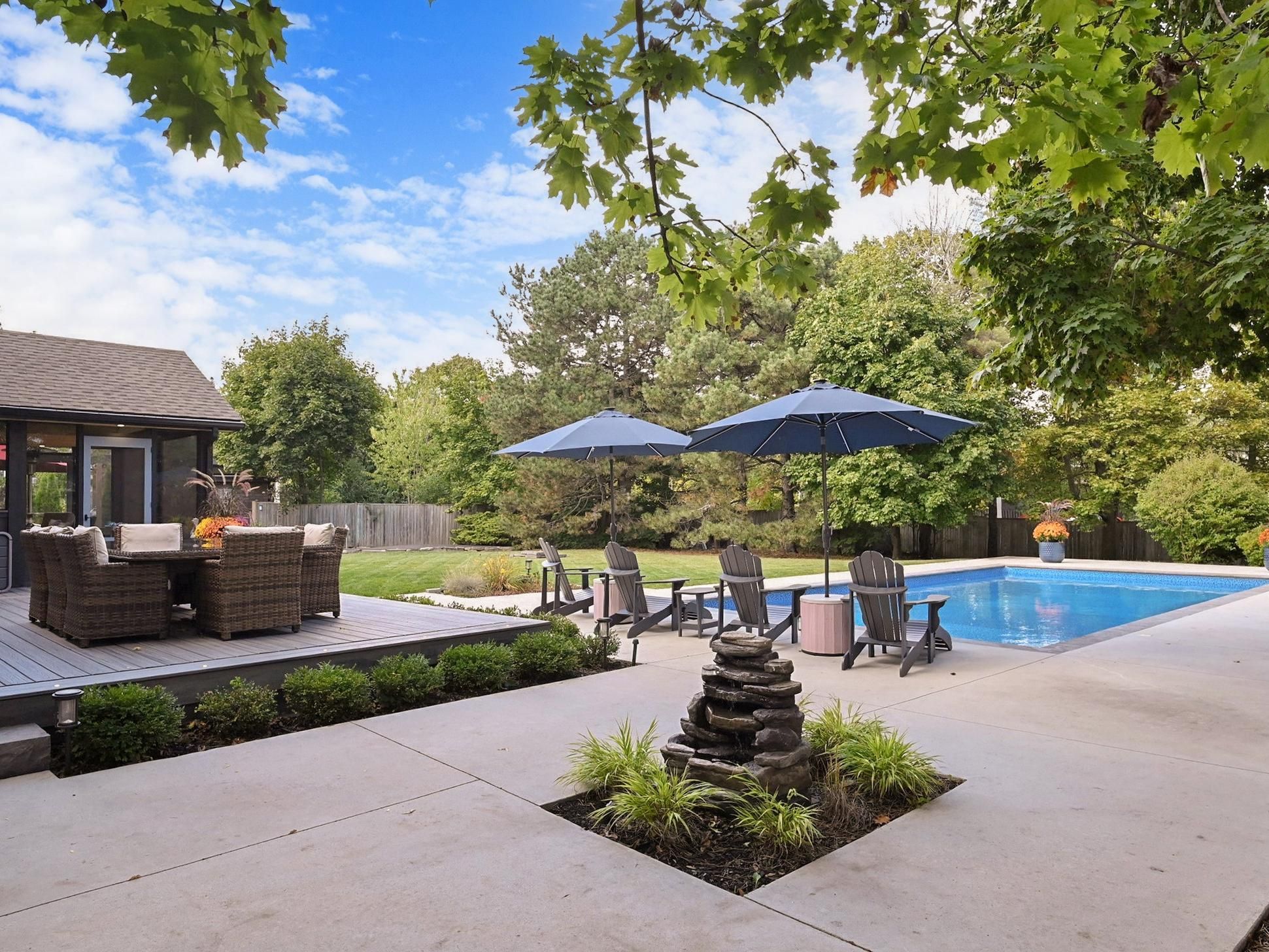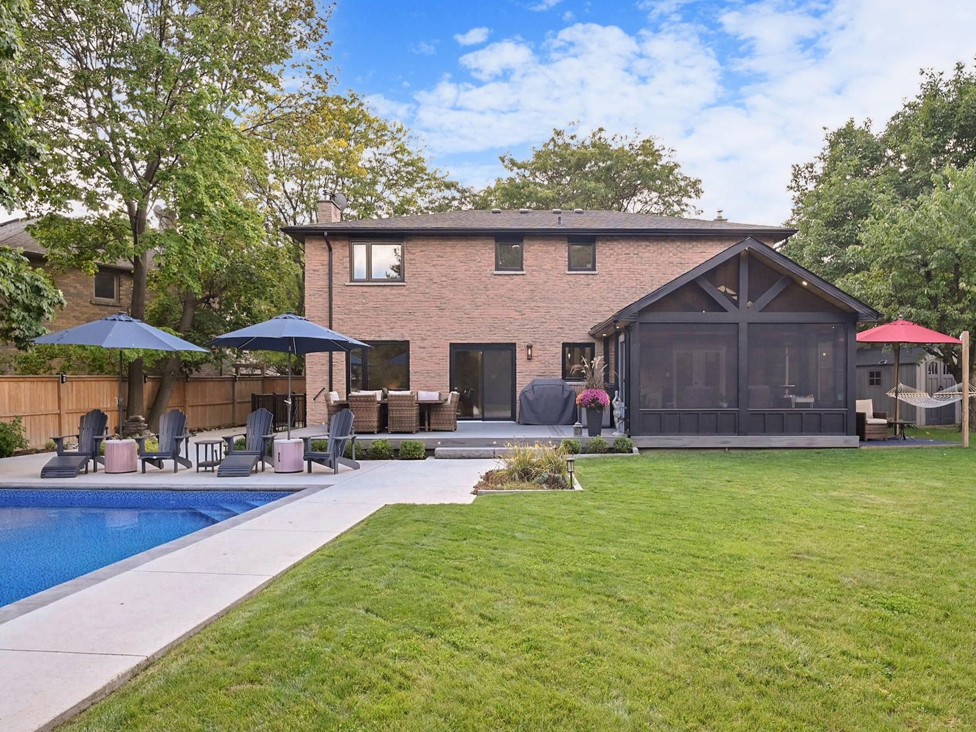 Welcome to this exceptional home, almost 4000 sq feet of finished living space. An entertainer's dream where city living meets relaxing lifestyle. All-brick detached home, perfectly situated on a quiet cul-de-sac with a premium extra-large pie lot complete with inground pool & fully screened in muskoka room. Home offers over $400k in renovations & upgrades, blending modern finishes with timeless design. Offering 4+1 bedrooms, 4 renovated washrooms. Large completely renovated kitchen, showcasing custom cabinetry, two islands, bosch black stainless steel appliances, overlooking family room. 2 walkouts to fabulous muskoka room and outstanding backyard with inground pool. Walkouts from kitchen and muskoka room, to private backyard retreat featuring a lighted inground pool, fully fenced backyard, expansive no maintenance 43' x 16. 5 composite deck, accent lighting & fountain. Patio stone pad off muskoka room, electrically wired & ready for a hot tub. Home offers white oak engineered hardwood floors thru-out upper floors & laminate thru-out basement. Main floor family room boasts custom built-in cabinetry, danish morso air tight wood burning fireplace. Upstairs you'll find 4 generously sized bedrooms, closet organizers in all bedrooms & main hall closet, luxurious primary suite with 4 pc ensuite & walk in closet. The home is designed for comfort and function. Two laundry rooms. Fully finished 1 bedroom basement apt with private exterior entrance, spacious living area, large eat-in kitchen, private laundry room with storage. Basement has separate storage area & cold cellar. Recent updates include new windows (22), pool liner, pool pump (23), inground sprinklers (24). Custom fiberglass front entry door with secure 3 point multi-lock. Ample 8 car parking, 6 in driveway + 2 in garage. This home truly has it all-modern luxury, resort-style living, room for family & guests, in-law suite/1 bdrm bsmt apt. Everything is thought of & everything is done. Just move in, relax & enjoy!
