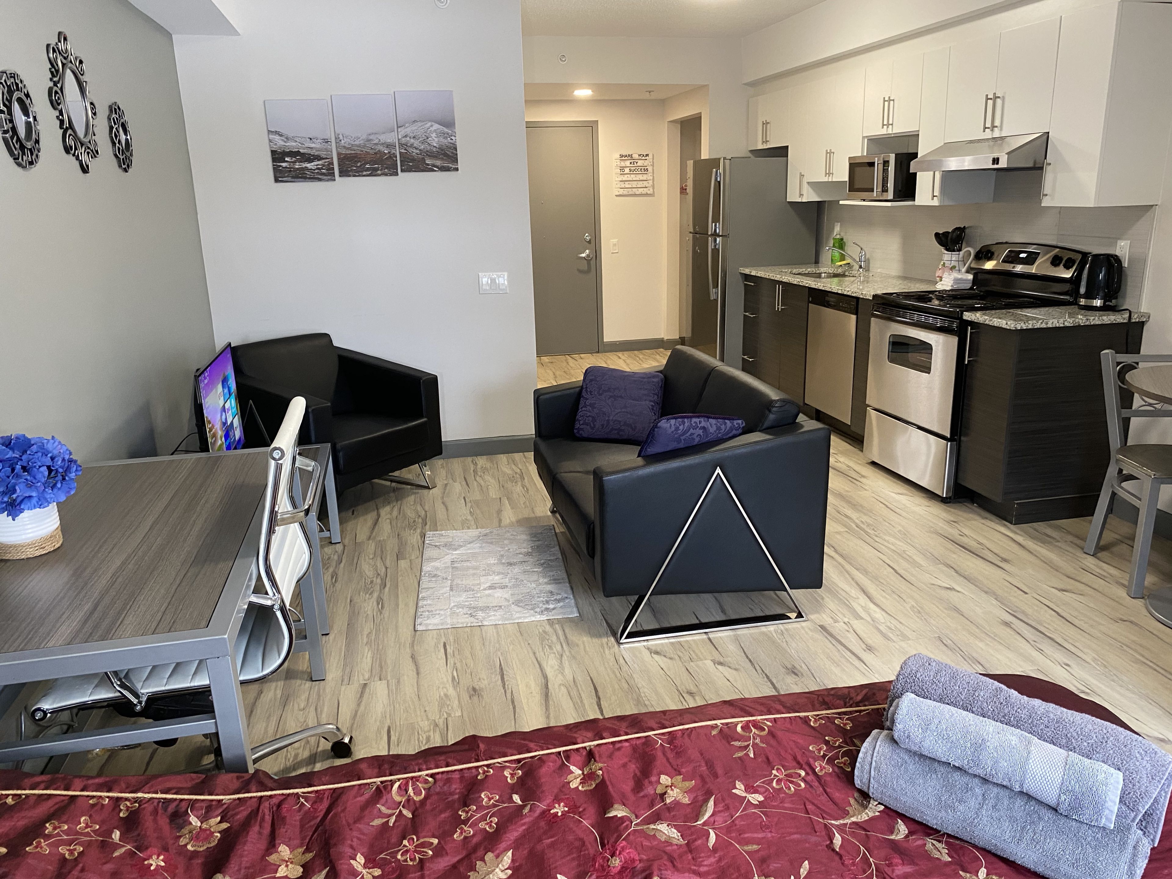 Perfect for investors or university parents. Vacant possession available. Unbeatable location, few minutes walk from both wilfred laurier university and the university of waterloo, while close to ion/lrt transit and 5 mins to highway 7/8. Very bright fully furnished studio. Features all kitchen stainless steel appliances, carpet-free living spaces throughout, and an open-concept living area. Private in suite laundry. Internet, water, and heat included in the condo fees. Only hydro is extra.