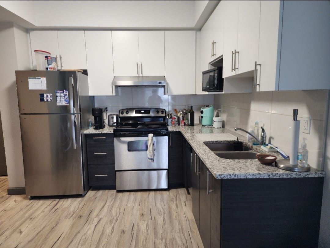 Stunning modern corner condo - steps to universities & everything you need. Experience stylish urban living in this stunning, modern corner condo perfectly situated just minutes from the university of waterloo, wilfrid laurier university, the bus station, and over 40 restaurants, cafés, and everyday essentials. Designed for students and young professionals in mind, this fully furnished unit offers exceptional comfort and convenience. Large windows in every bedroom flood the space with natural light, creating a bright, warm, and inviting atmosphere throughout. Enjoy sleek laminated flooring across the unit, complemented by elegant porcelain tile in the shared bathrooms and laundry area. The contemporary shared kitchen features stainless steel appliances, ample workspace, and a clean, modern design - perfect for cooking, studying, or gathering with friends. High ceilings enhance the open-concept feel, while secure key-access entry ensures peace of mind. Additional amenities include both indoor and outdoor bicycle parking for ultimate convenience. This is more than just a condo - it's a vibrant, move-in-ready space in one of waterloo's most sought-after locations! All utilities are included in the monthly rent, including heat, hydro, water, and high-speed internet, so there are no hidden costs, and budgeting is simple. Looking from may 1, 2026, to august 31, summer terman entire unit of 3 extra-large rooms is available.