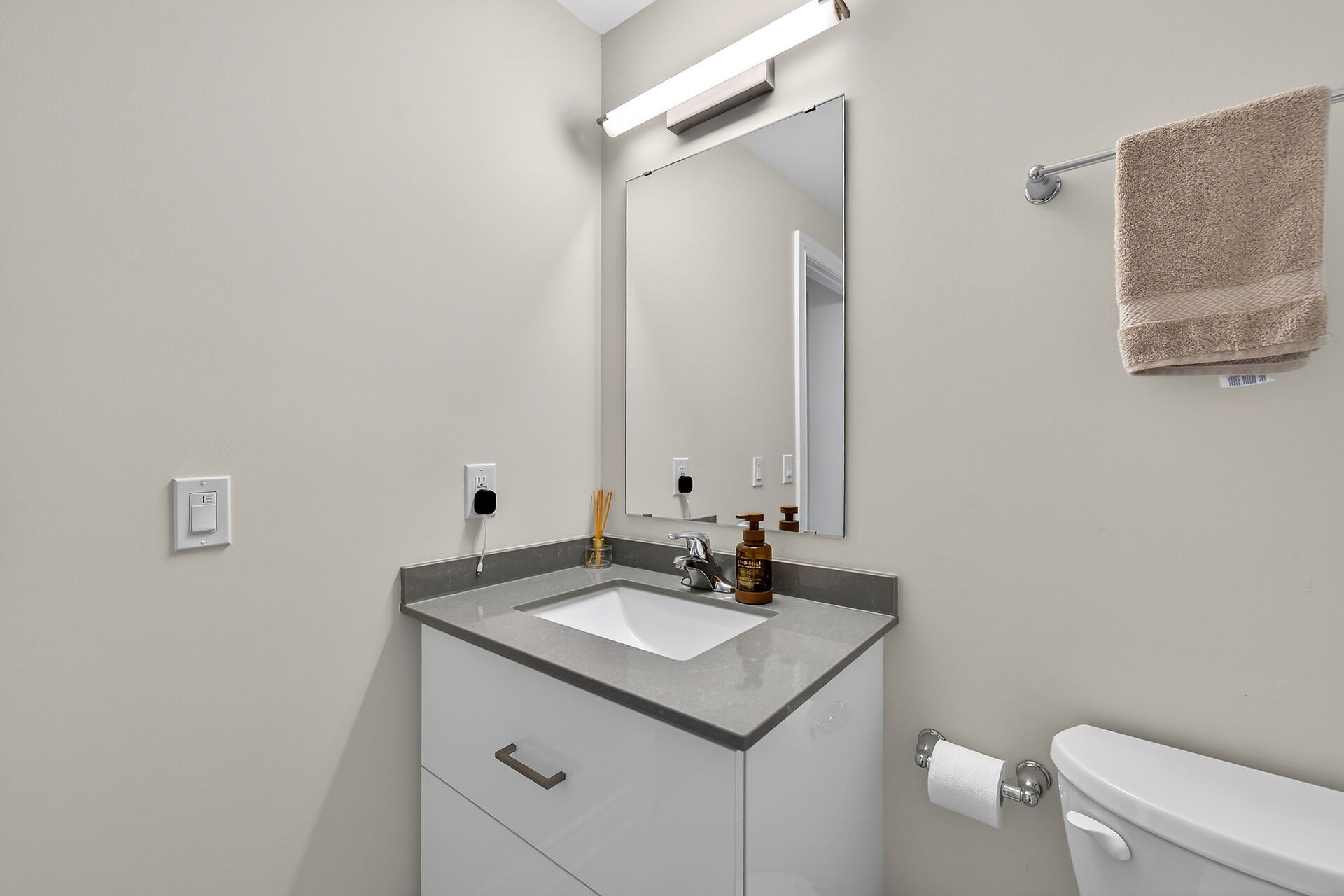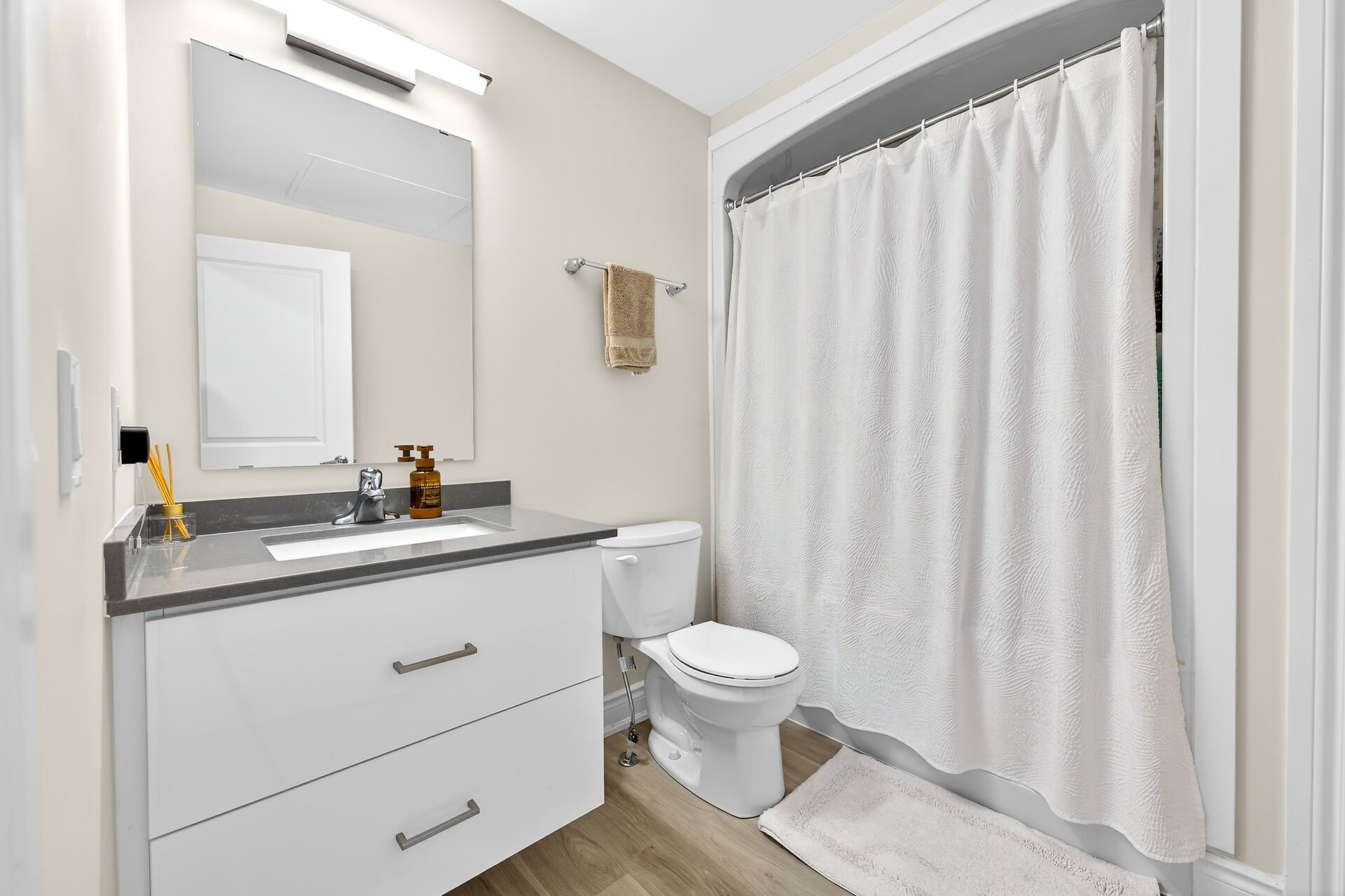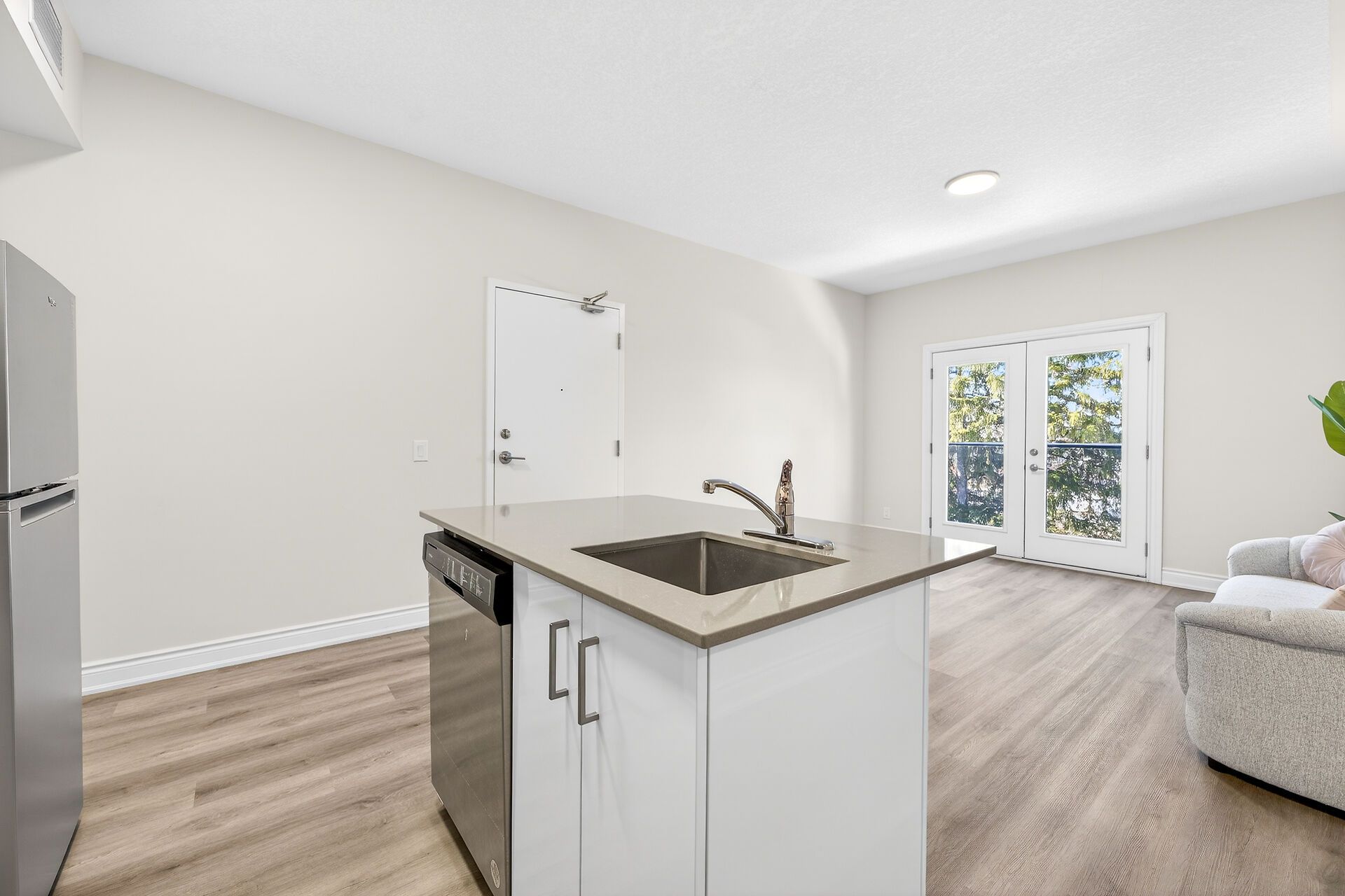 • Modern 2-bedroom, 1-bathroom unit with an open-concept layout.