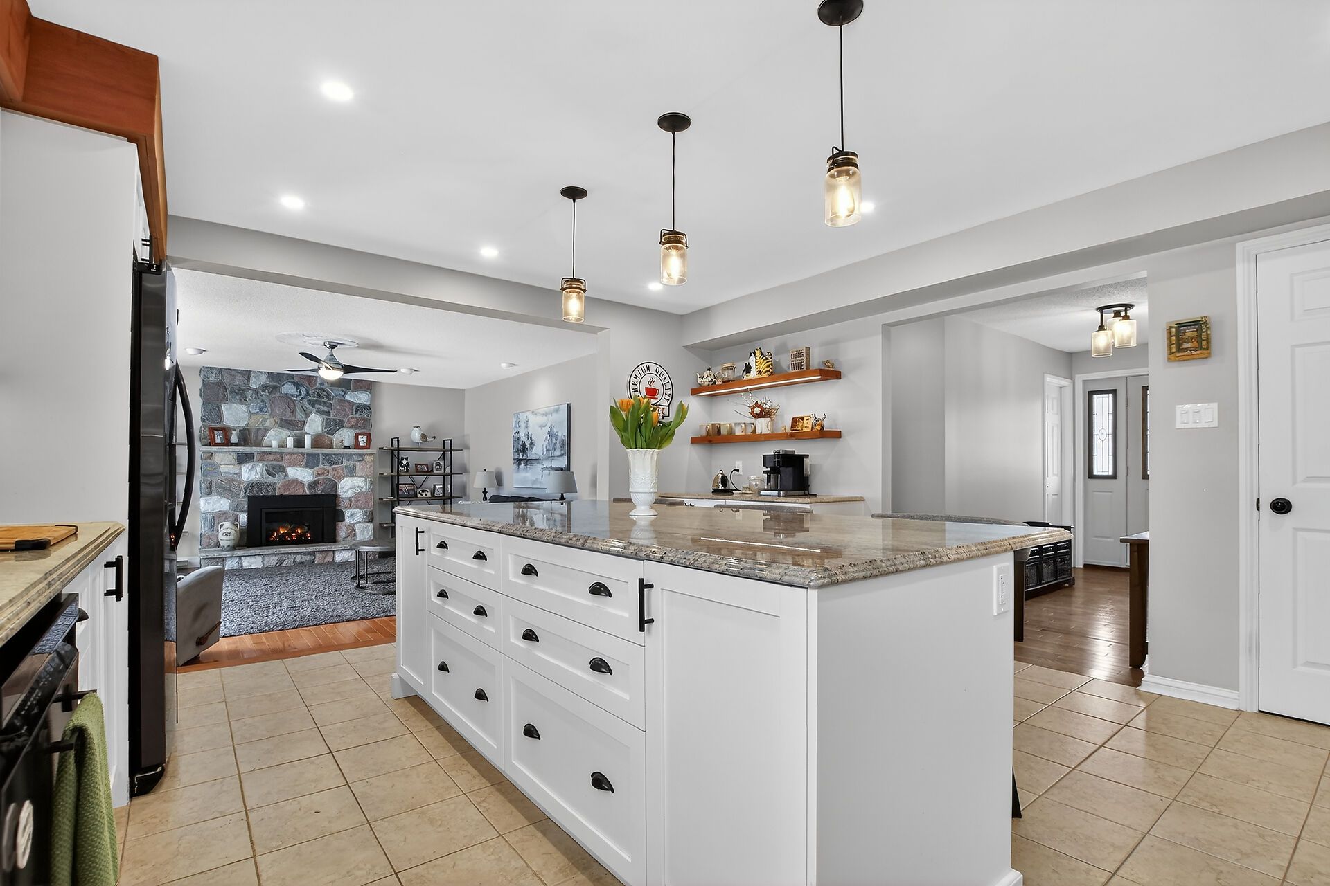 Welcome to this beautifully updated and spacious home offering over 2,600 sq ft of comfortable living in the heart of carleton place-one of the ottawa valley's most desirable and fast-growing communities. Combining location, privacy, style, and space, this home is perfectly suited for families looking to settle into a vibrant small-town setting just minutes from ottawa. The heart of the home is the stunning renovated kitchen (2020), featuring a large island, coffee bar, and seamless flow into the bright, inviting family room-ideal for everyday living and effortless entertaining. A dedicated dining space is perfect for hosting, while two separate main-floor living areas-one at the front and one at the back-offer flexibility for growing families, quiet retreats, or work-from-home setups. Upstairs, you'll find four generously sized bedrooms, providing plenty of room for the whole family. Step outside to your private backyard oasis, complete with a deck and gazebo-perfect for relaxing summer evenings or entertaining guests. The large driveway offers ample parking for multiple vehicles and visitors. Major updates have already been taken care of, including the kitchen renovation, addition of a patio door, and conversion of the wood-burning fireplace to gas, with a full list of improvements available on mls. This is a true move-in-ready home. Located just a short walk to downtown carleton place, you'll enjoy easy access to boutique shops, local cafés, restaurants, parks, schools, and the hospital. With its scenic riverfront, strong sense of community, and relaxed lifestyle, carleton place offers the perfect balance of charm and convenience. Measurements from virtual floorplans, may be minor differences. Book your showing today!