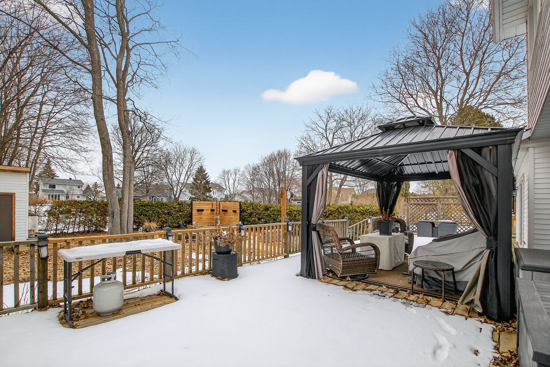 • Private backyard oasis with a deck and gazebo for summer enjoyment.