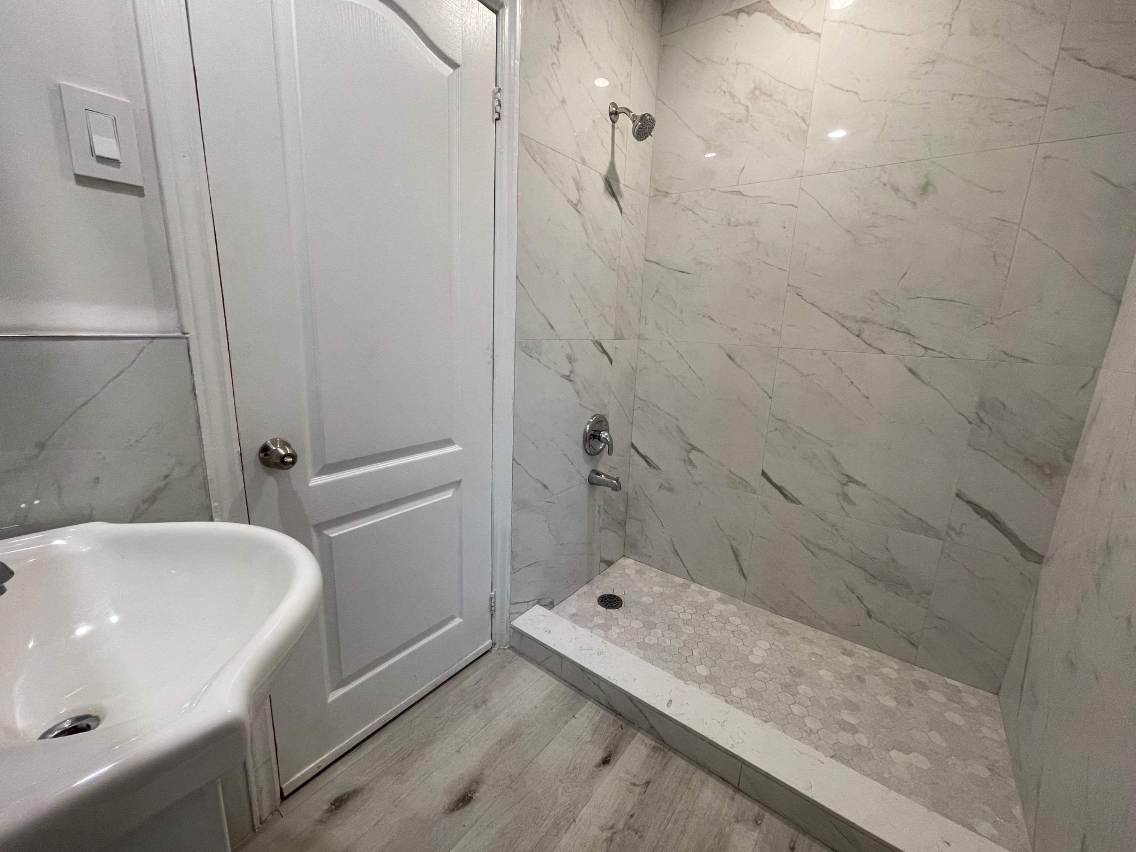 • Modern pot lights and a refreshed shower enhance the living space.