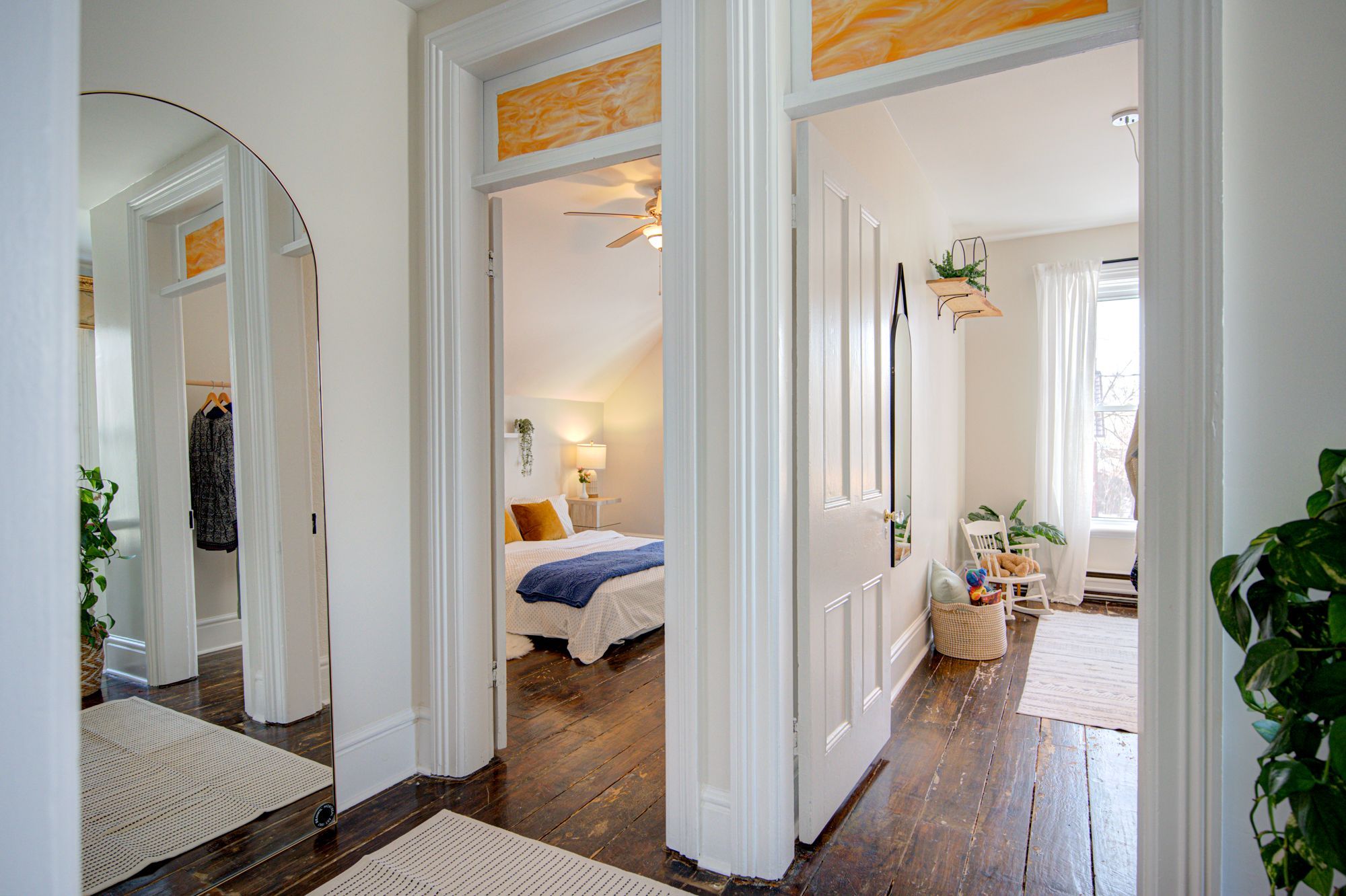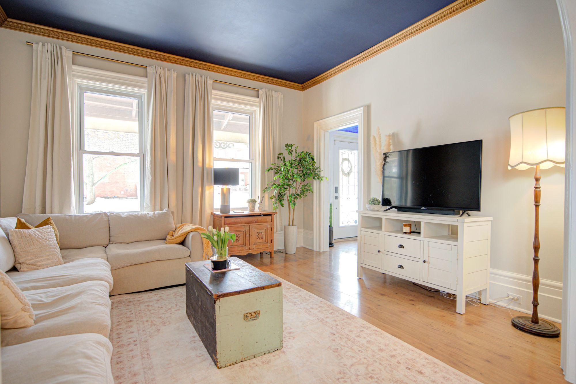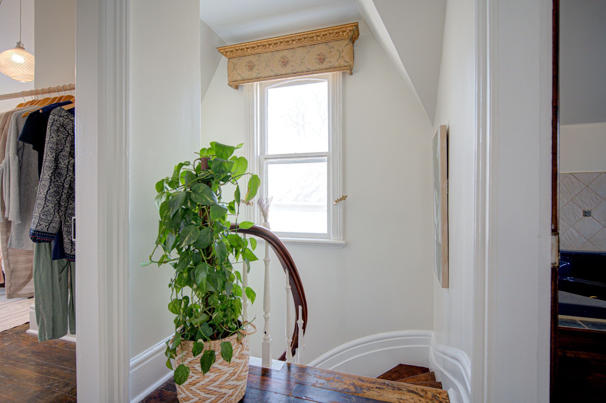 • Spacious foyer with original stair rails and elegant craftsmanship.
