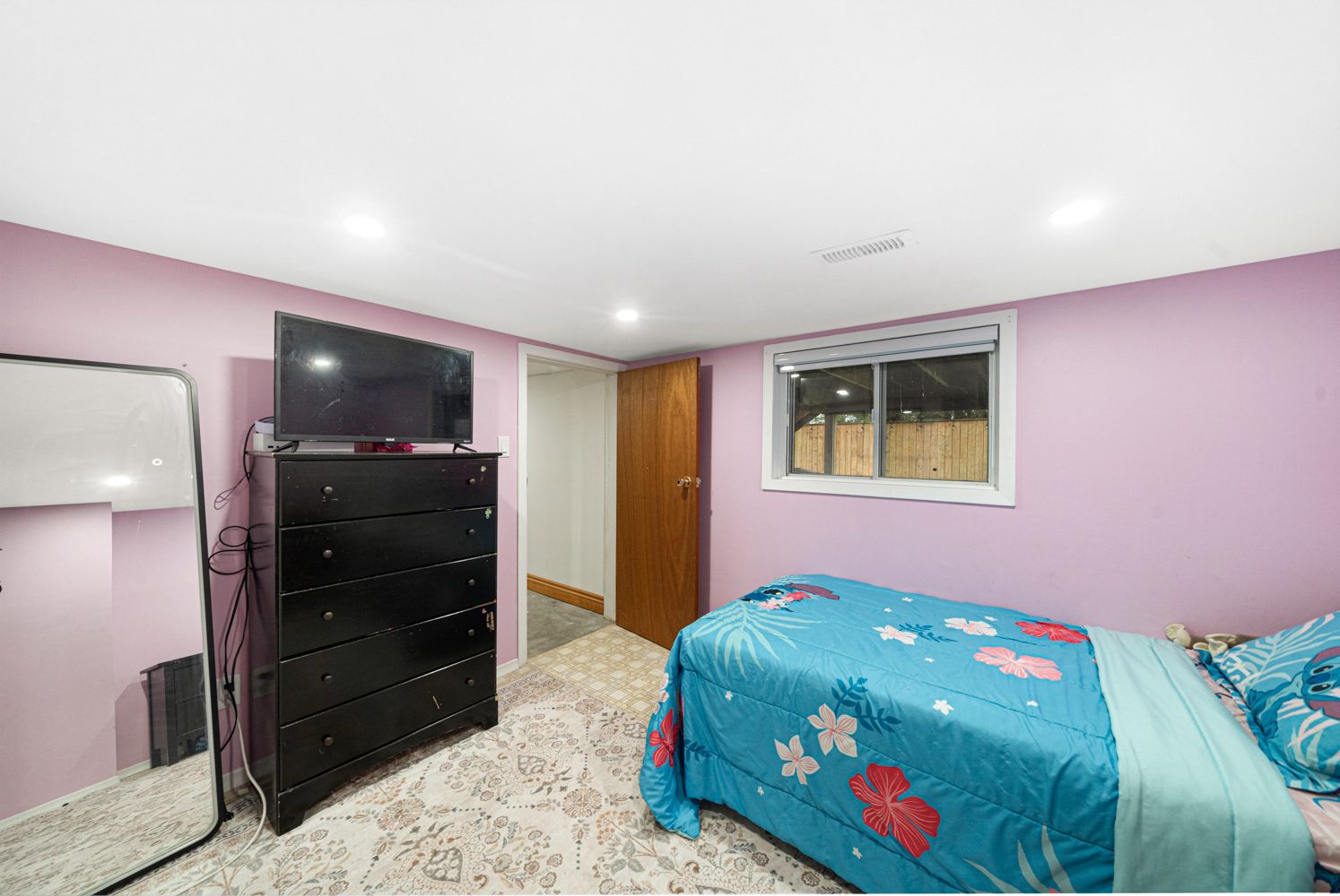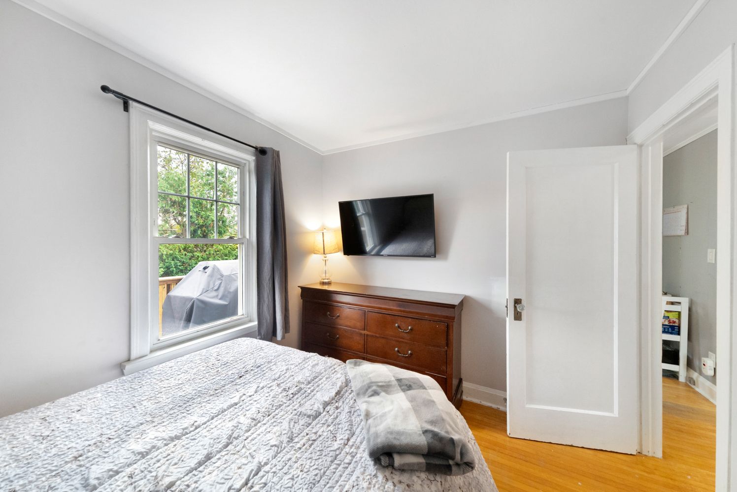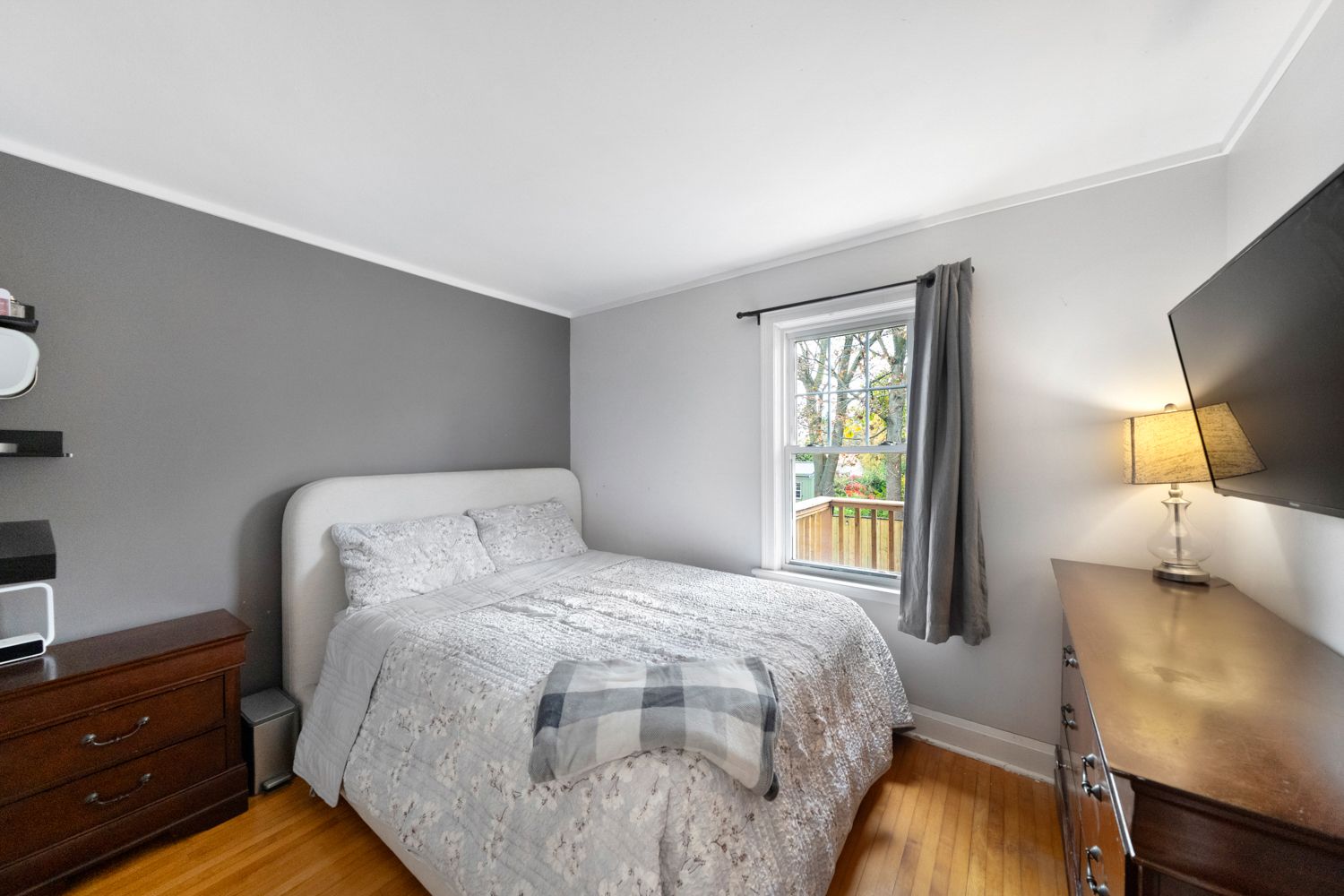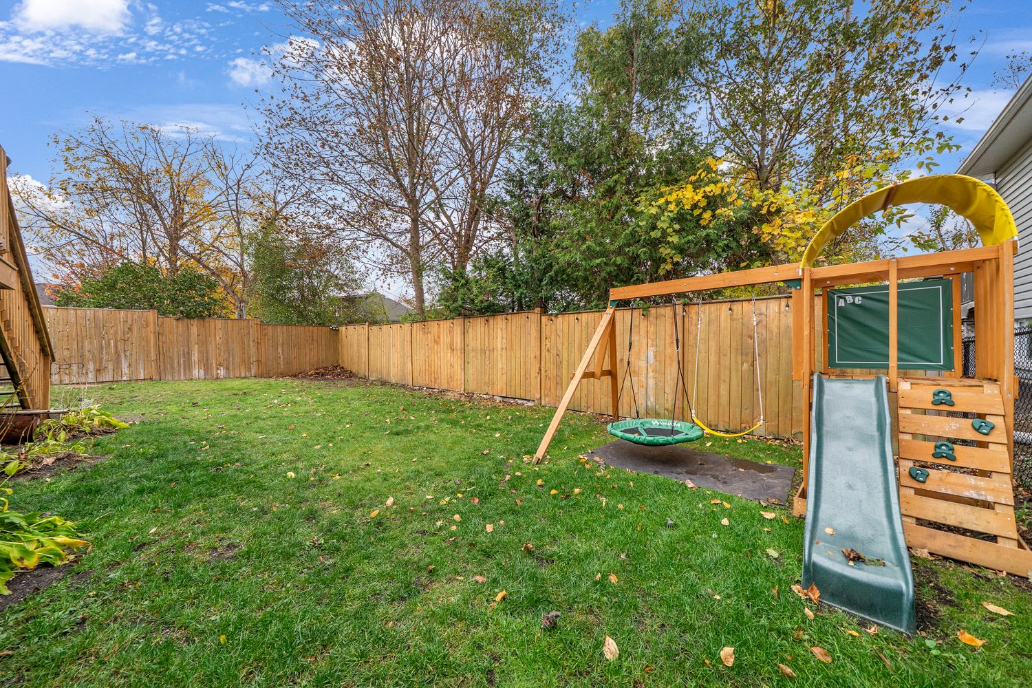 • Fenced backyard with mature trees, deck, and cozy sunroom.