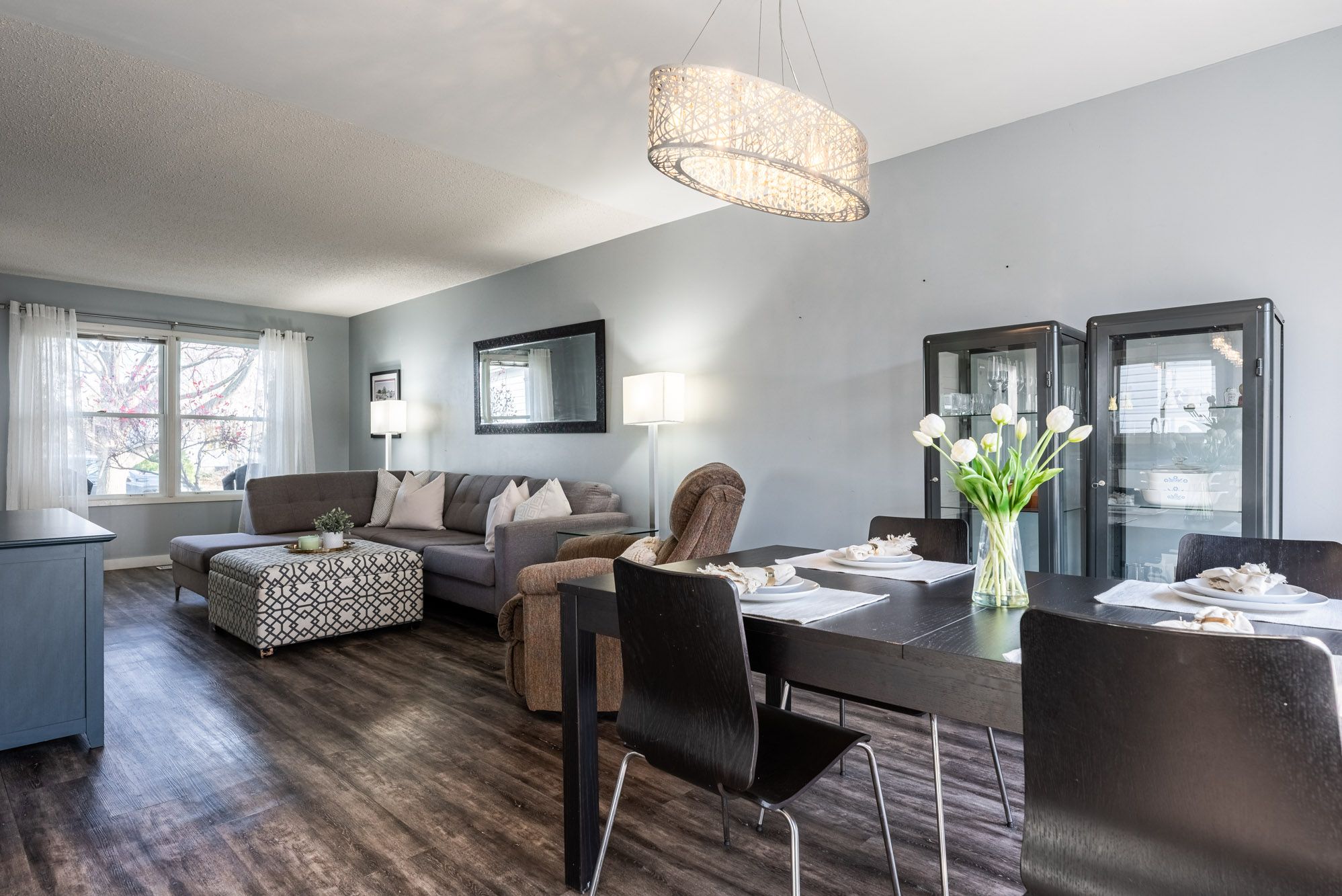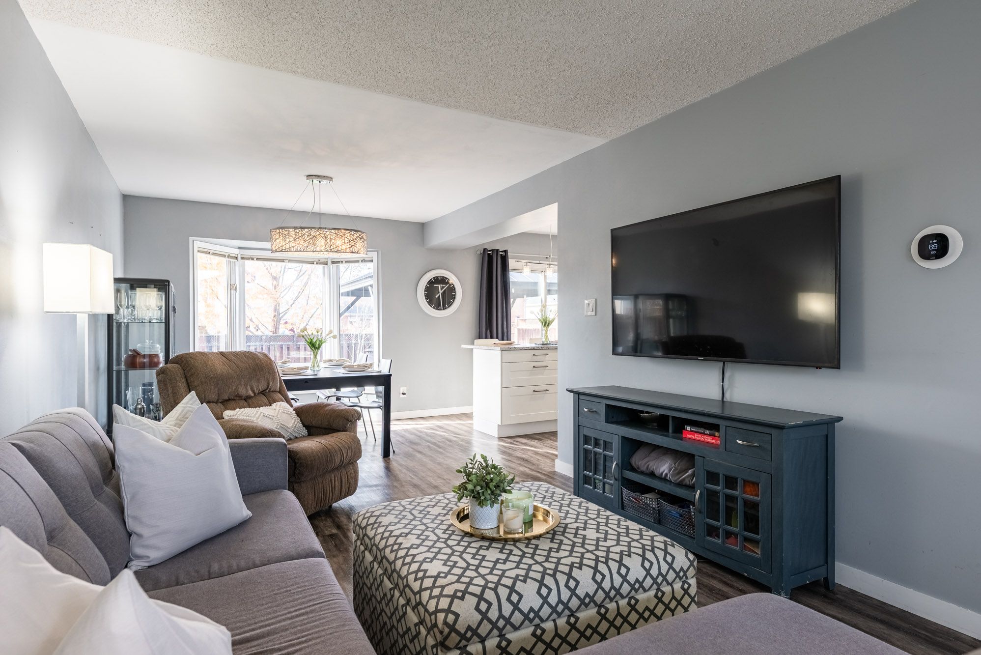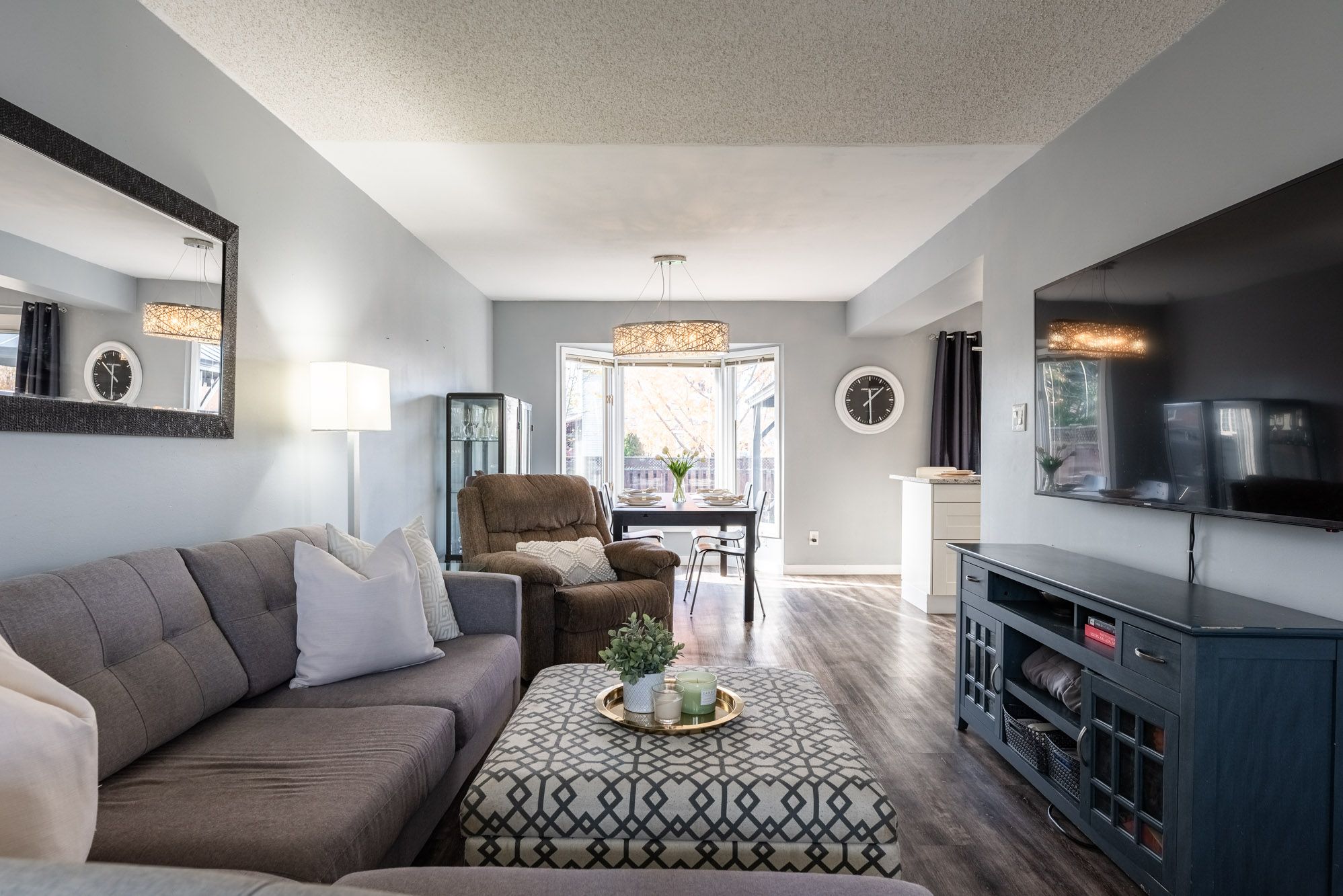 • Spacious open-concept living and dining area filled with natural light.