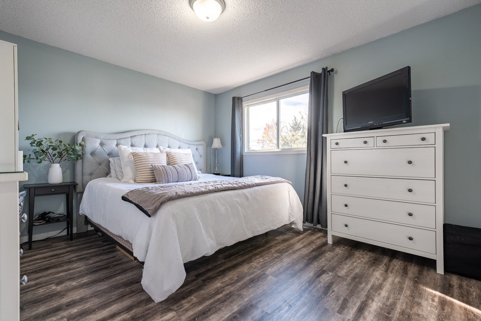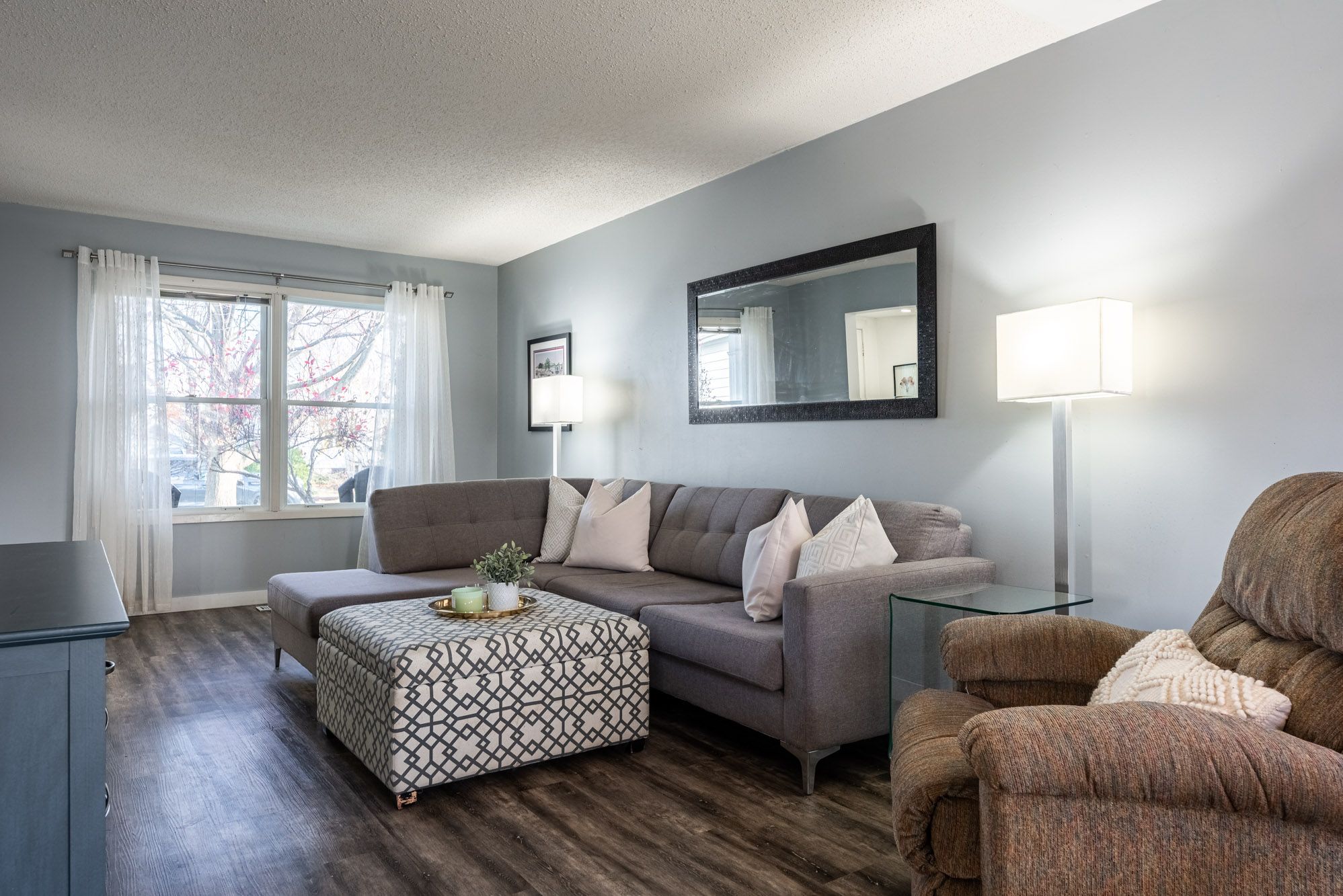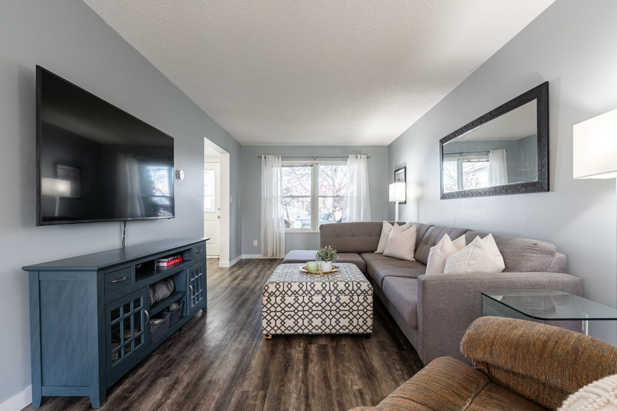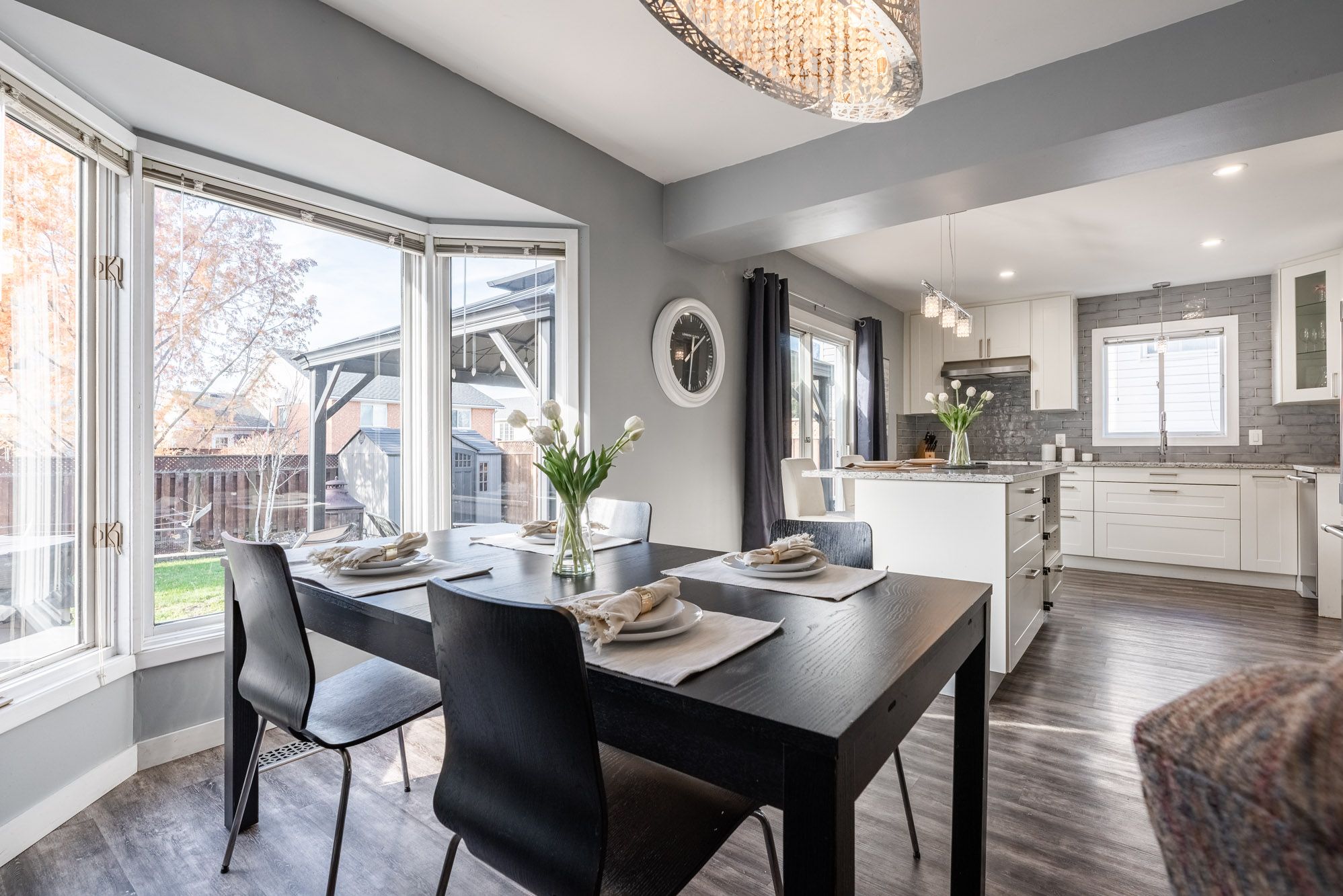 • Spacious open-concept living and dining area filled with natural light.