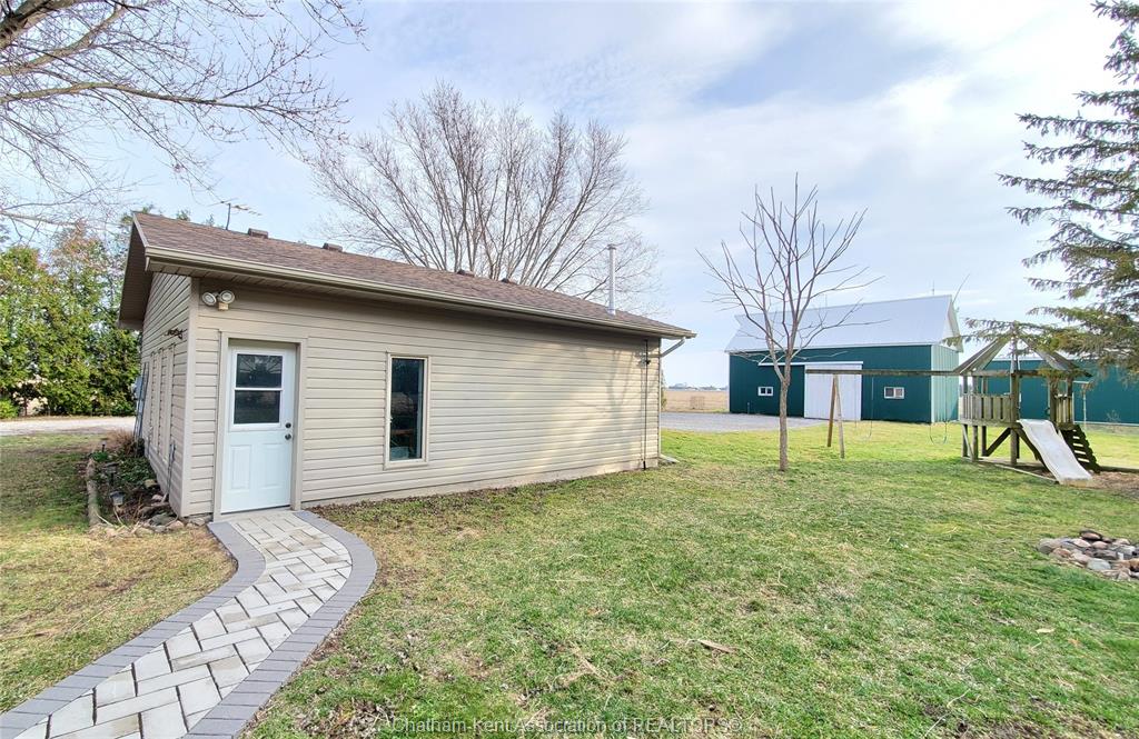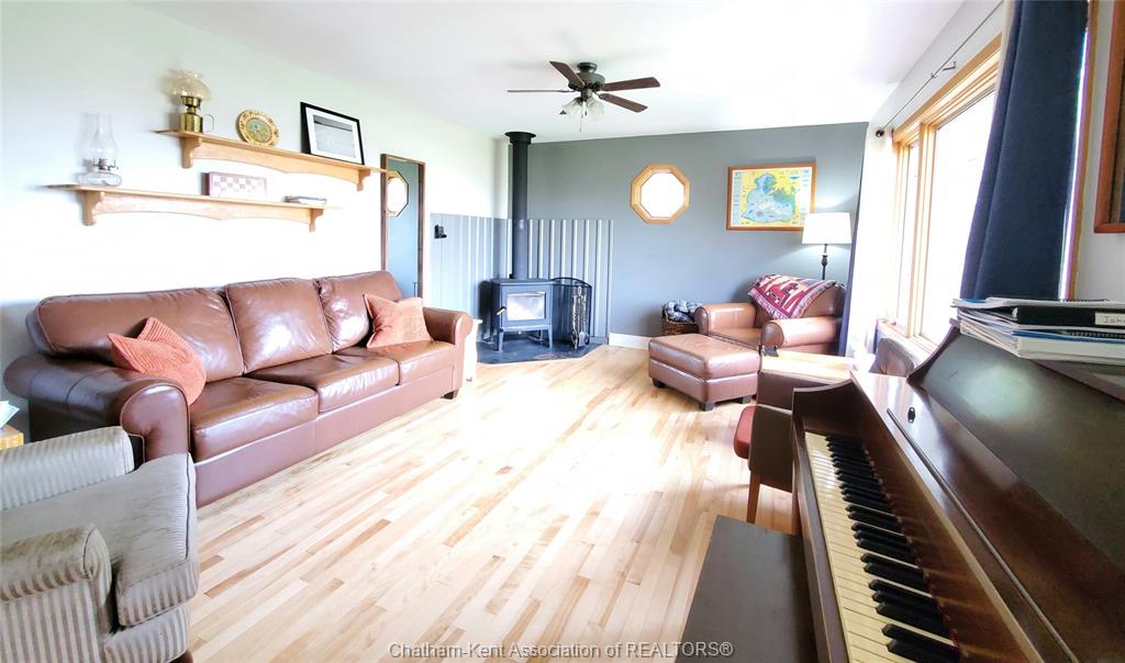 Looking for space to live, grow, and unwind? This nearly one-acre hobby farm offers the peace, privacy, and a more self-sufficient lifestyle buyers are searching for—just minutes from chatham and wallaceburg. Step inside to a bright, open-concept kitchen and living area, featuring beautiful hardwood floors and an abundance of built-in cabinetry for both style and function. The main level offers 3 spacious bedrooms, while the finished lower level adds 2 additional bedrooms and a generous family room, 3pc bath—perfect for growing families or multi-generational living. Step outside to a large covered deck—perfect for outdoor living, relaxing, or entertaining guests rain or shine. Beyond, you’ll find a detached heated 2-car garage/workshop, ideal for projects, storage, or year-round use. The property is flanked by mature trees, offering privacy and a serene setting to unwind. With plenty of space to grow your own vegetables, raise chickens, and enjoy a slower pace of life, this property delivers the kind of freedom and flexibility that’s hard to find—without giving up the convenience of being just 10 minutes to amenities. This home is move-in ready. Don't delay, book your showing today!