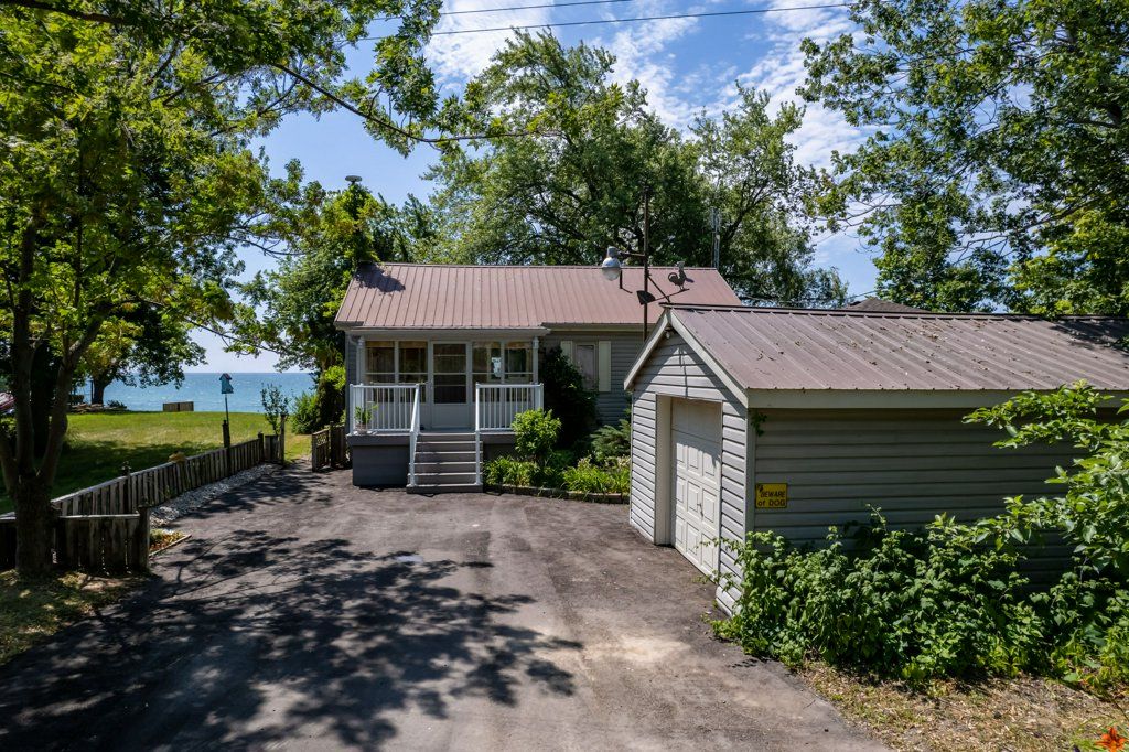 Welcome to the lake! This spacious year round home is nestled on a deep lot and features sandy beach waterfront - perfect for making summer memories. Relax on the concrete patio at the break wall, with metal stairs leading to the soft sand and sparkling water - the gentle slope into the water and sandy beach / bottom make this an ideal location for swimming or launching your paddle board or kayak. Inside the open concept living area is perfect for entertaining friends and family. The kitchen features stainless steel appliances, loads of storage and counter area, and a bright dinette and sunroom spaces to soak in the lake views. The large basement recroom is complete with a cozy fireplace and an additional den or bedroom, an ideal retreat for movie nights or game days. This home boasts thoughtful upgrades including an "omni" basement system for peace of mind, a durable metal roof, and 1. 5 car garage. The paved driveway easily accommodates up to four cars. Step out onto the upper-level deck for your morning coffee, enjoy alfresco dinners on the lower patio, and find serenity at the patio overlooking the lake. Here, every day is a vacation-summer fun, relaxation, and cherished moments await you at the lake! Laundry to be hooked up prior to closing.