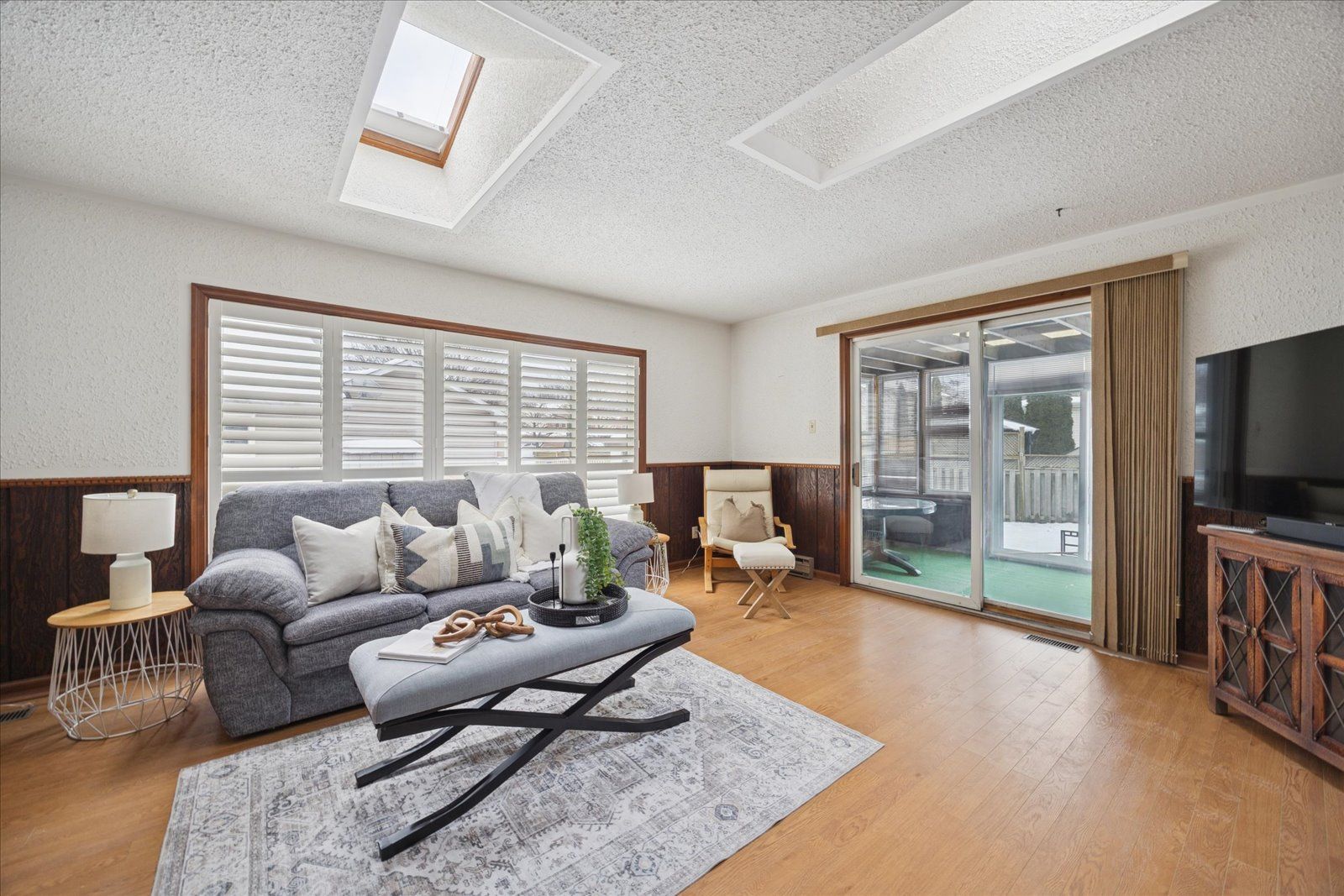 Welcome to this well maintained bungalow offering generous, light filled living and dining areas ideal for both everyday comfort and entertaining. This home features two well sized bedrooms and a thoughtfully designed layout that flows effortlessly throughout. A standout feature is the impressive living room addition, highlighted by skylights that flood the space with natural light and a walk-out to a spacious sun room that is perfect for relaxing year round. A separate side entrance adds functionality and flexibility for families, guests, or future potential. Situated on a good sized lot with plenty of room to entertain, garden, or unwind outdoors, this property also boasts a convenient circular driveway providing ample parking and easy access. A wonderful opportunity to enjoy bungalow living with exceptional indoor and outdoor space.