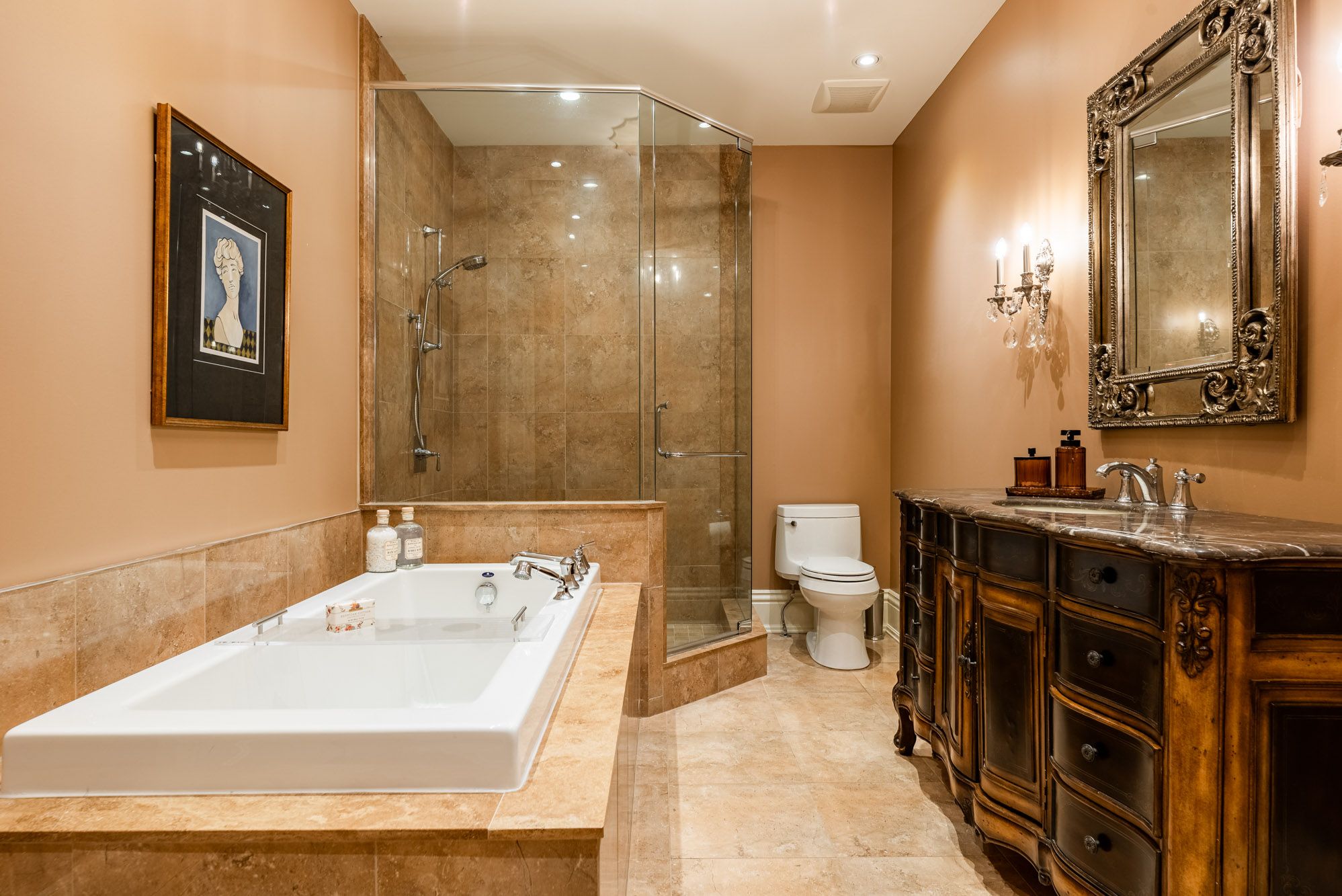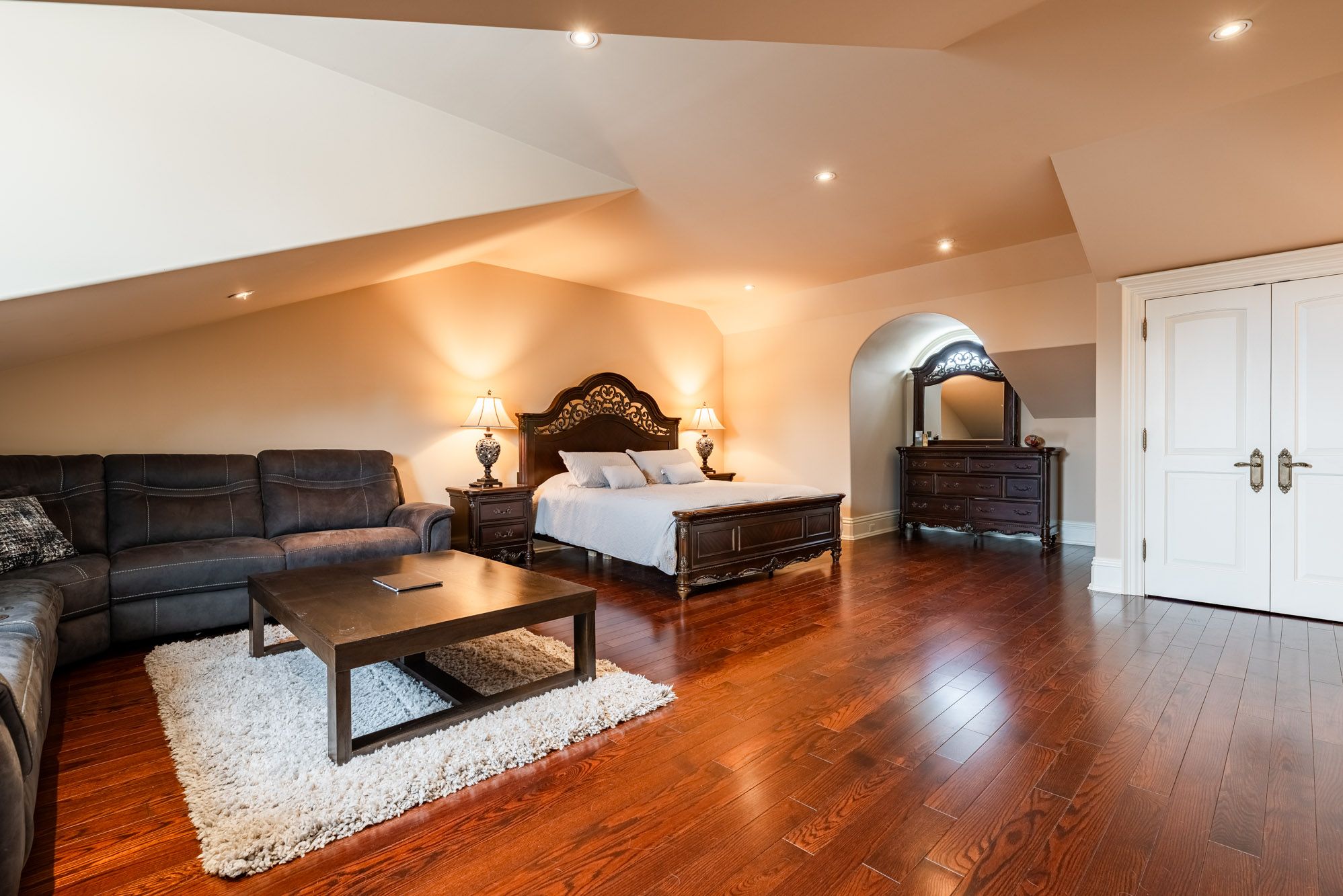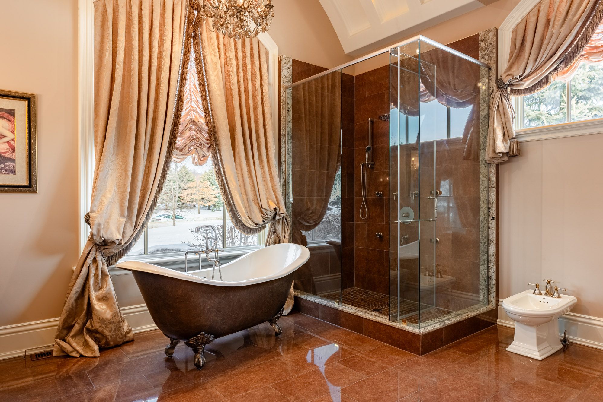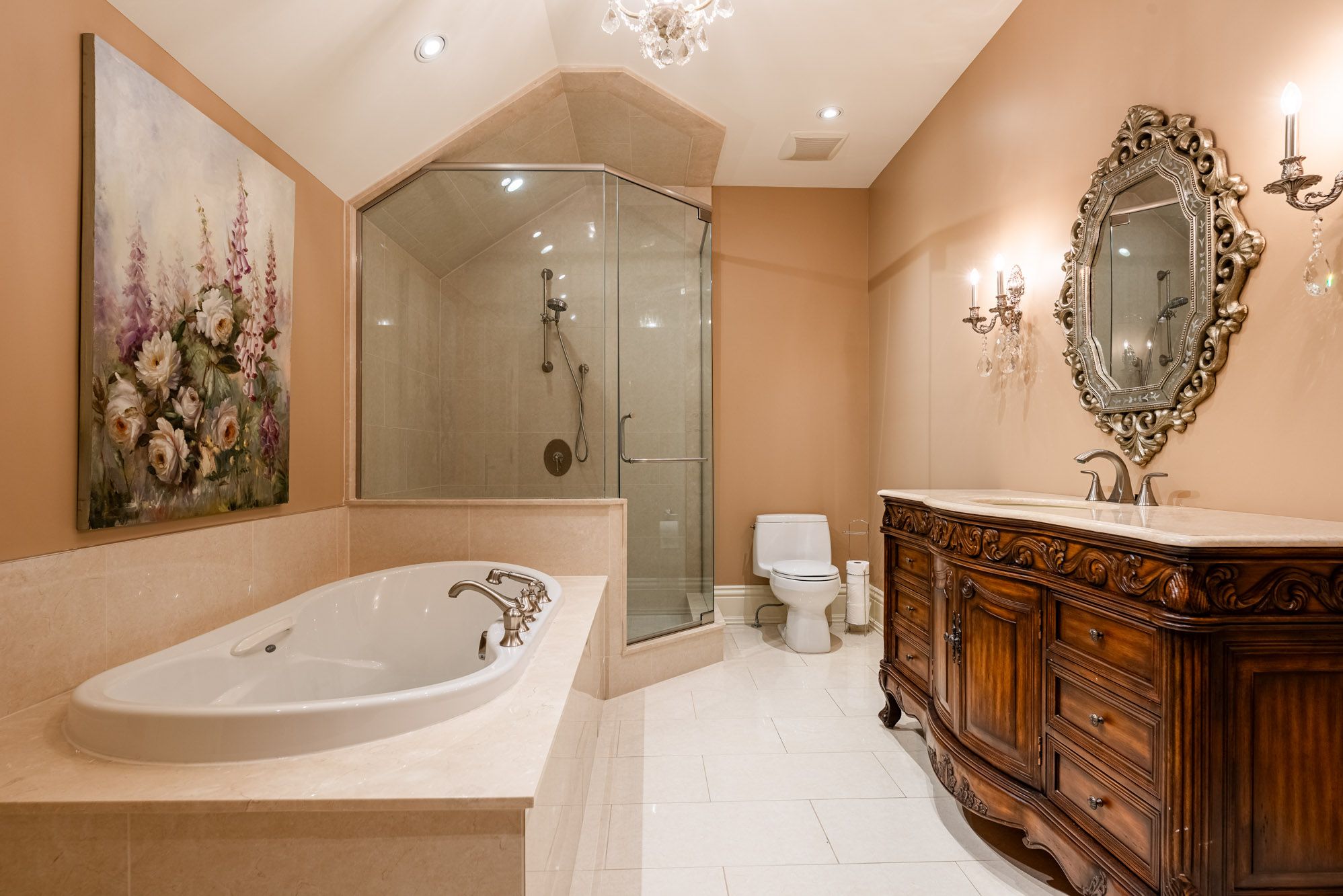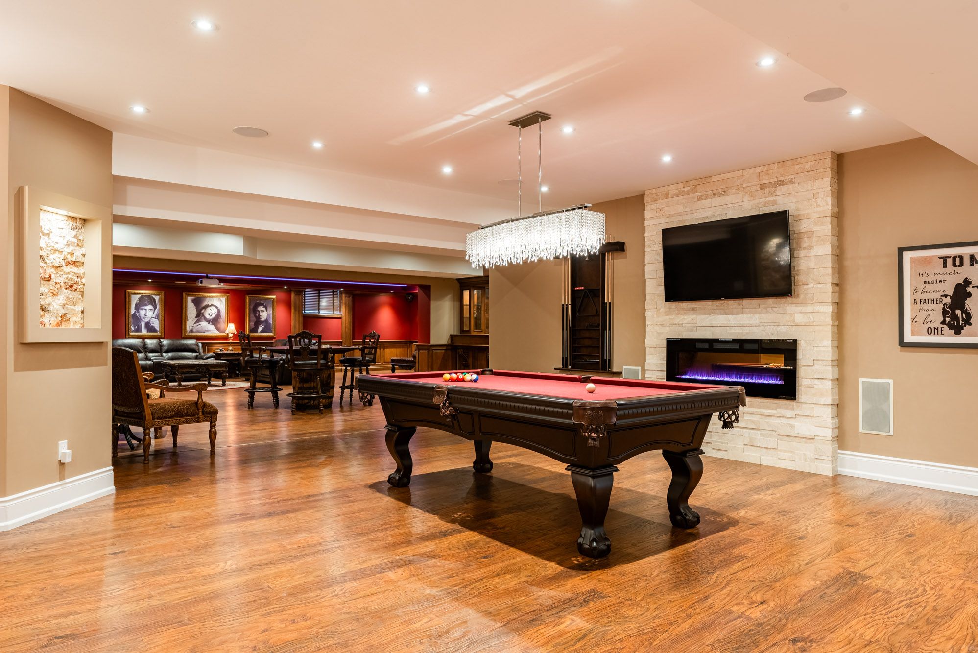Impeccably nestled in the bluffs, this extraordinary estate spans over 11,000 sqft. Of luxurious living space on approx two acres of treed property. Blending modern sophistication with traditional elegance, this home offers an unparalleled lifestyle in a breathtaking setting. From the moment you step into the grand foyer, the impeccable craftsmanship and seamless flow set the tone for refined living. Architectural excellence is showcased through soaring coffered ceilings, expansive windows, & an intricate wrought-iron staircase. The chefs kitchen is a culinary masterpiece, boasting a walk-in pantry, top-tier custom cabinetry, & premium appliances. A spacious breakfast room opens to the beautifully landscaped backyard, where a heated covered lanai provides the perfect setting for outdoor relaxation. The main-floor primary suite is a private retreat, featuring a cozy f/p, his and her walk-in closets, & a lavish 6pc spa-inspired ensuite. Adding to its allure, an adjoining sunroom offers direct access to the backyard, creating a seamless indoor-outdoor experience. A richly appointed home office, complete with wood paneling & built-in cabinetry, provides an ideal workspace. The second level hosts 3 additional bedrooms, while the lower level is designed for ultimate comfort, entertainment, & hosting unforgettable events. Here, youll find a full bar, oversized wine cellar, & a dance floor, along with a state-of-the-art home theatre, a gym, a gentlemans cigar room, & a spa-inspired bath with a stone steam sauna, walk-in shower, & radiant floor heating. A 5th bedroom completes this level, offering flexibility for guests or extended family. For car enthusiasts, the impressive heated 3-car garage is outfitted with 2 lifts, allowing for up to 6 vehicles to be stored with ease. Built-in speakers throughout the home further enhance the ambiance, providing a seamless audio experience indoors & out. Minutes from major highways & burlingtons finest amenities. Luxury certified