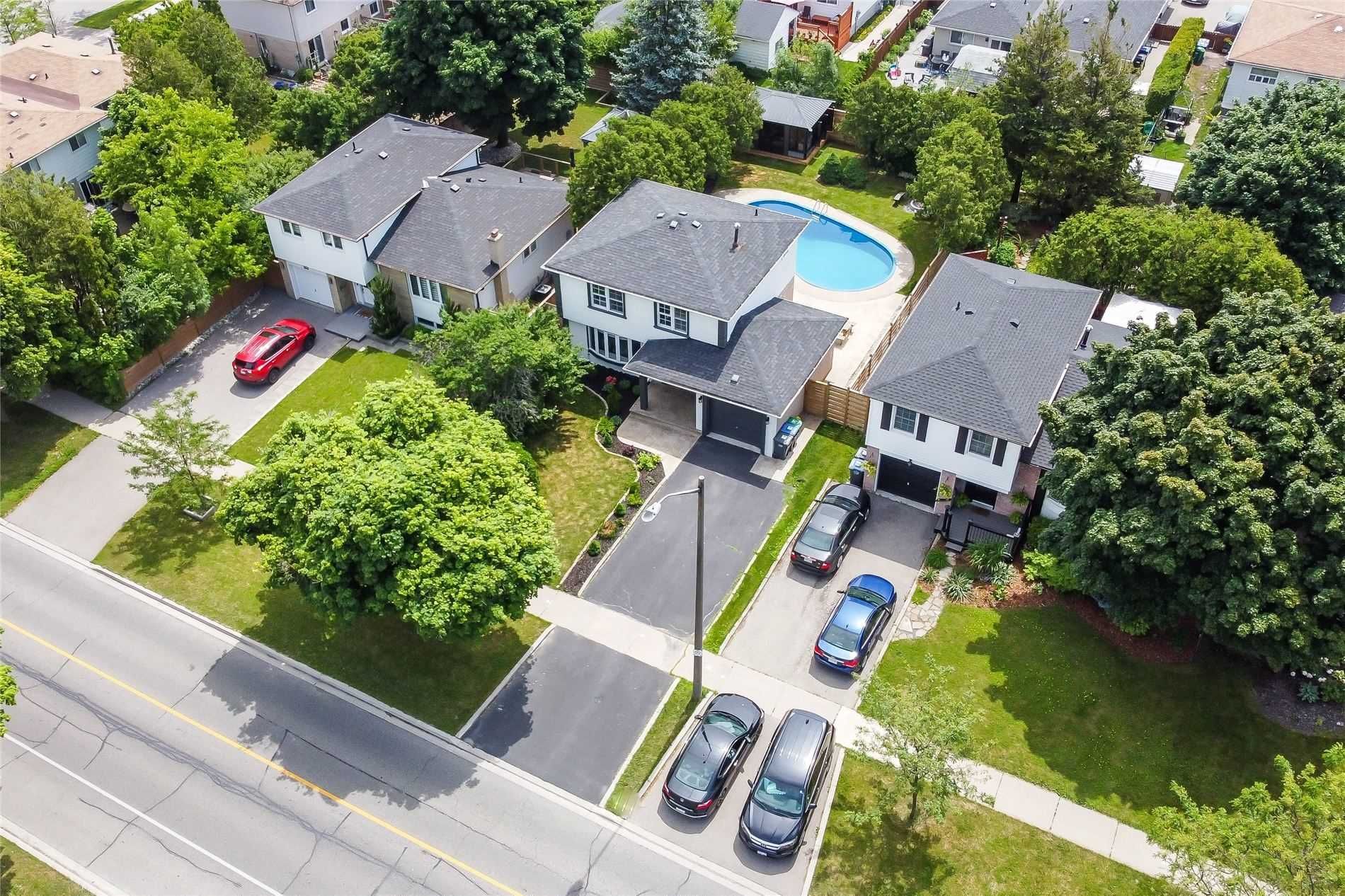 Welcome to this discreet gem located in the desirable clarkson community that offers a beautifully reimagined interior ft 3 bdrms,4 baths,lg principal rms & a finished bsmt. As you step through the front entrance you are greeted w/ a bright o/c living area that combines the primary living spaces to the resort-like backyard for seamless indoor/outdoor entertainment. The immaculate chef's kitchn is upgraded w/ s/s appls & undermount lighting plus a sophisticated mosaic backsplash that is softened by quartz c/t & porcelain flrs. 2nd lvl hosts the primary bdrm w/ a 3pc ensuite & his/her w/i closets w/ cedar interiors. 2 more bdrms w/ cedar closets & a shared 4pc bath on this lvl! The charming interior fts the perfect balance between cool & warm tones w/ the bsmt ft beautiful brick exposed archways,a lg rec rm w/ tv/media space & a play area w/ a 4pc bath. The entertainer's dream backyard completes this property w/ beautiful mature trees surrounding the perimeter,a lg pool w/ stone patio & private enclosed cabana.