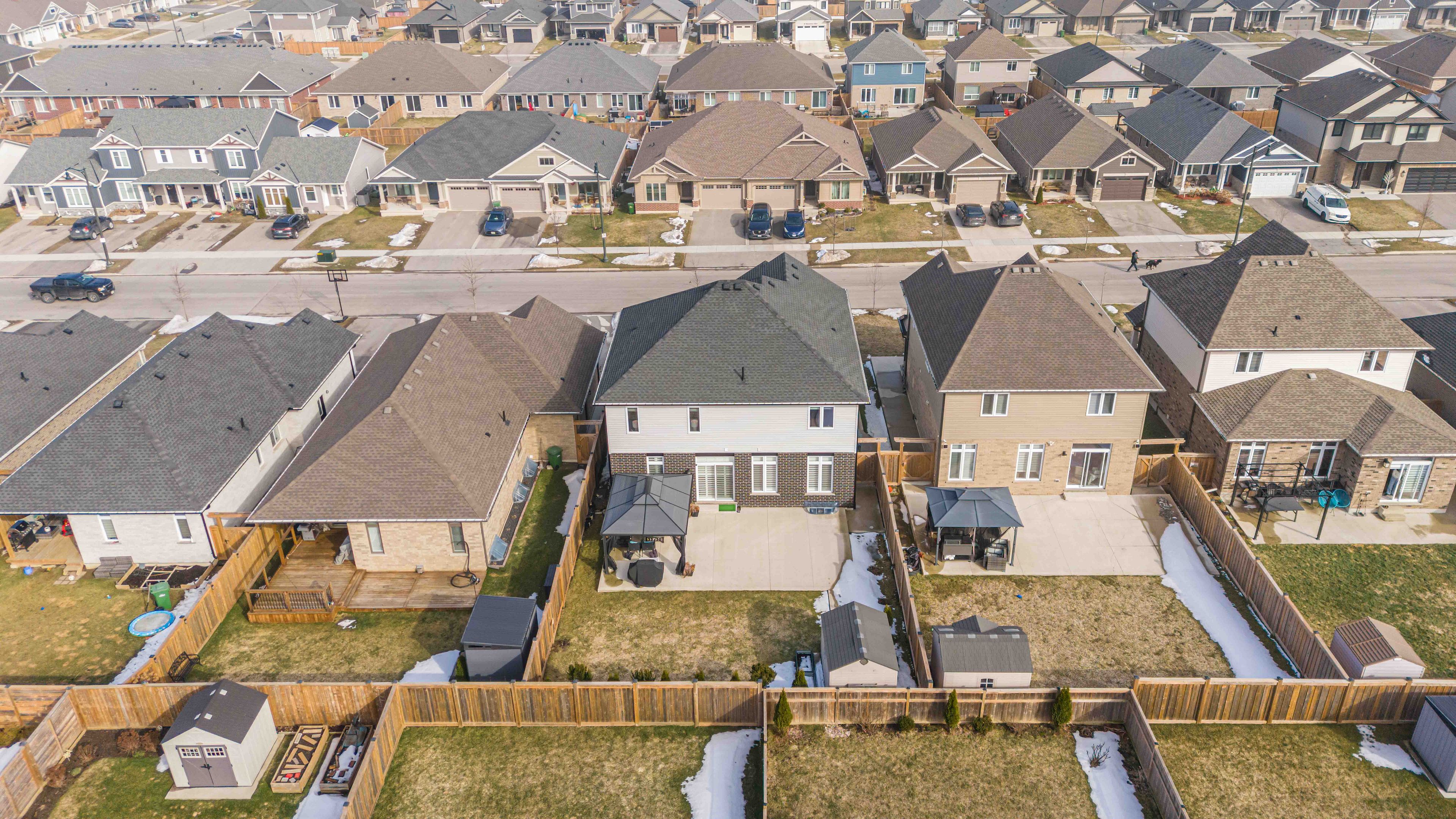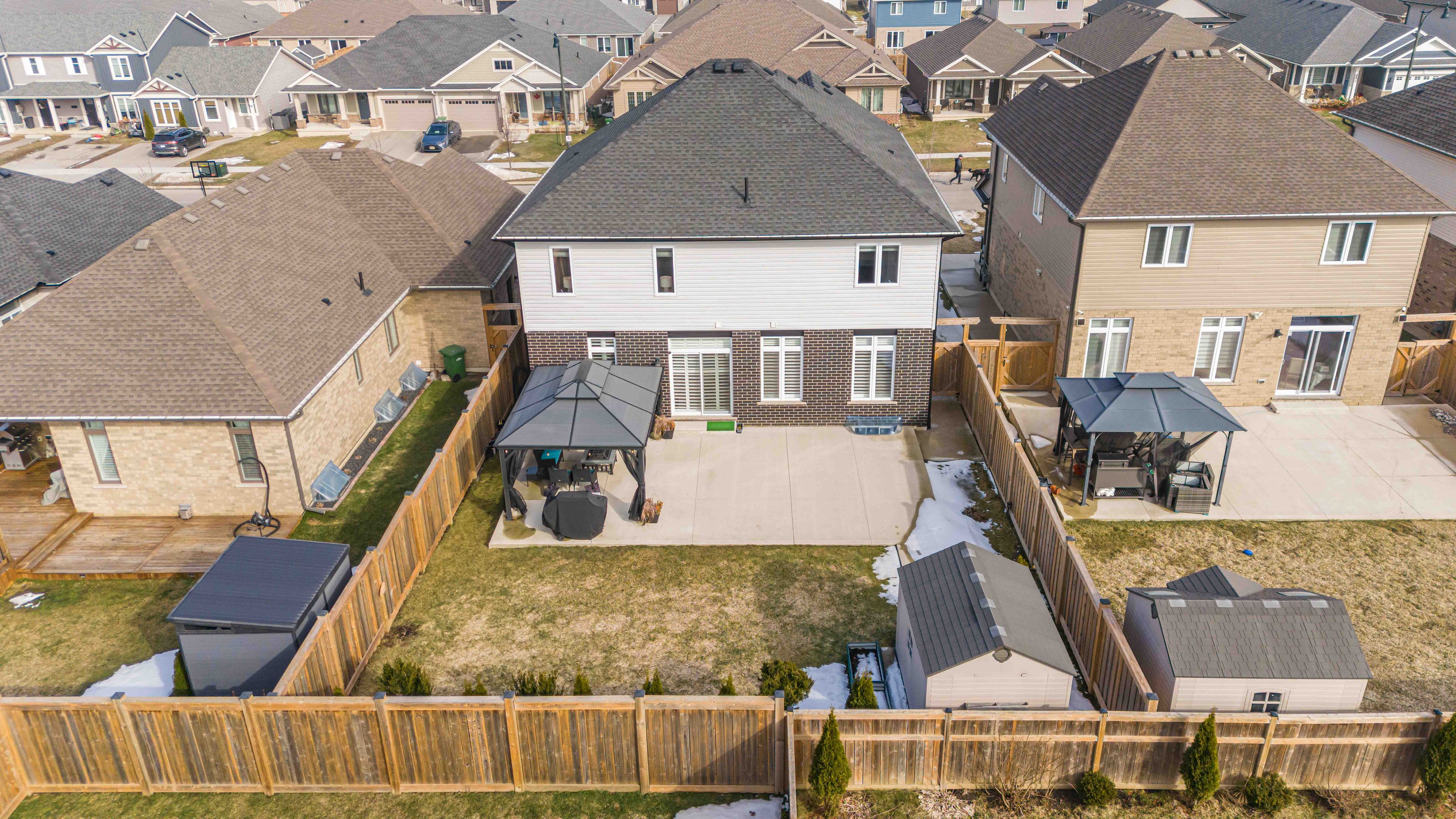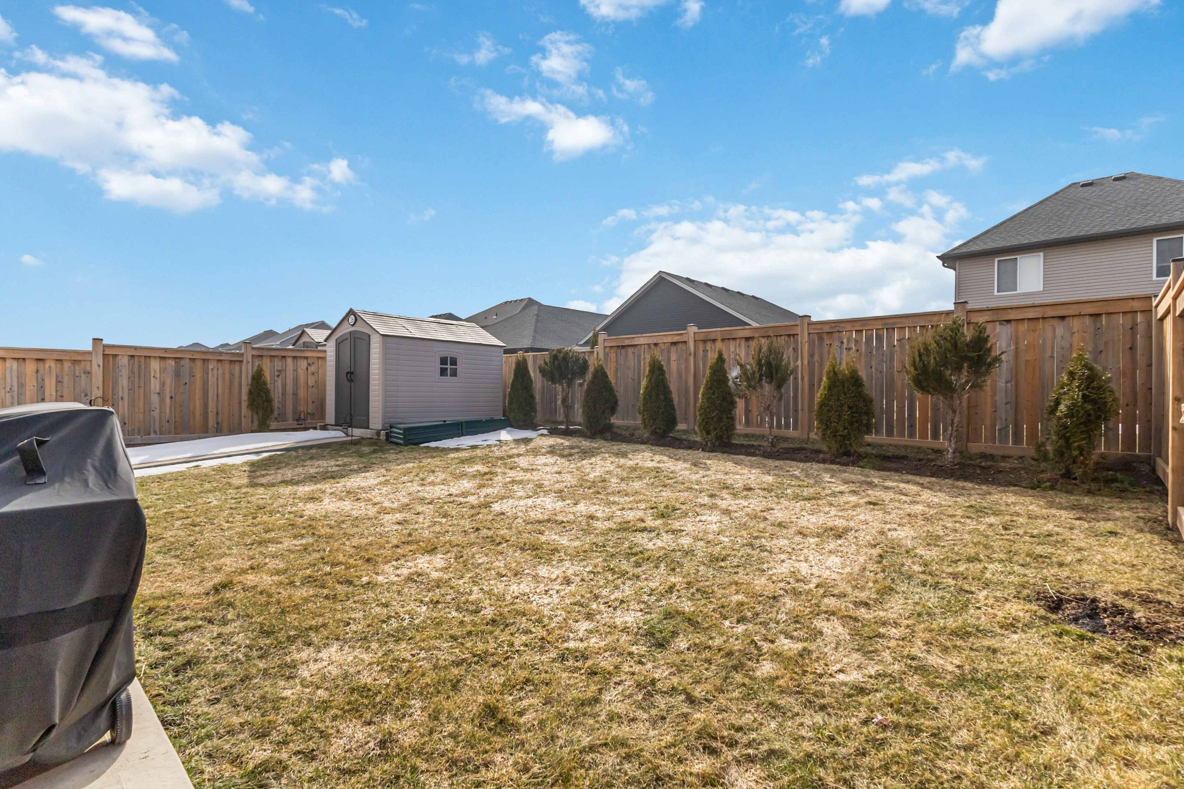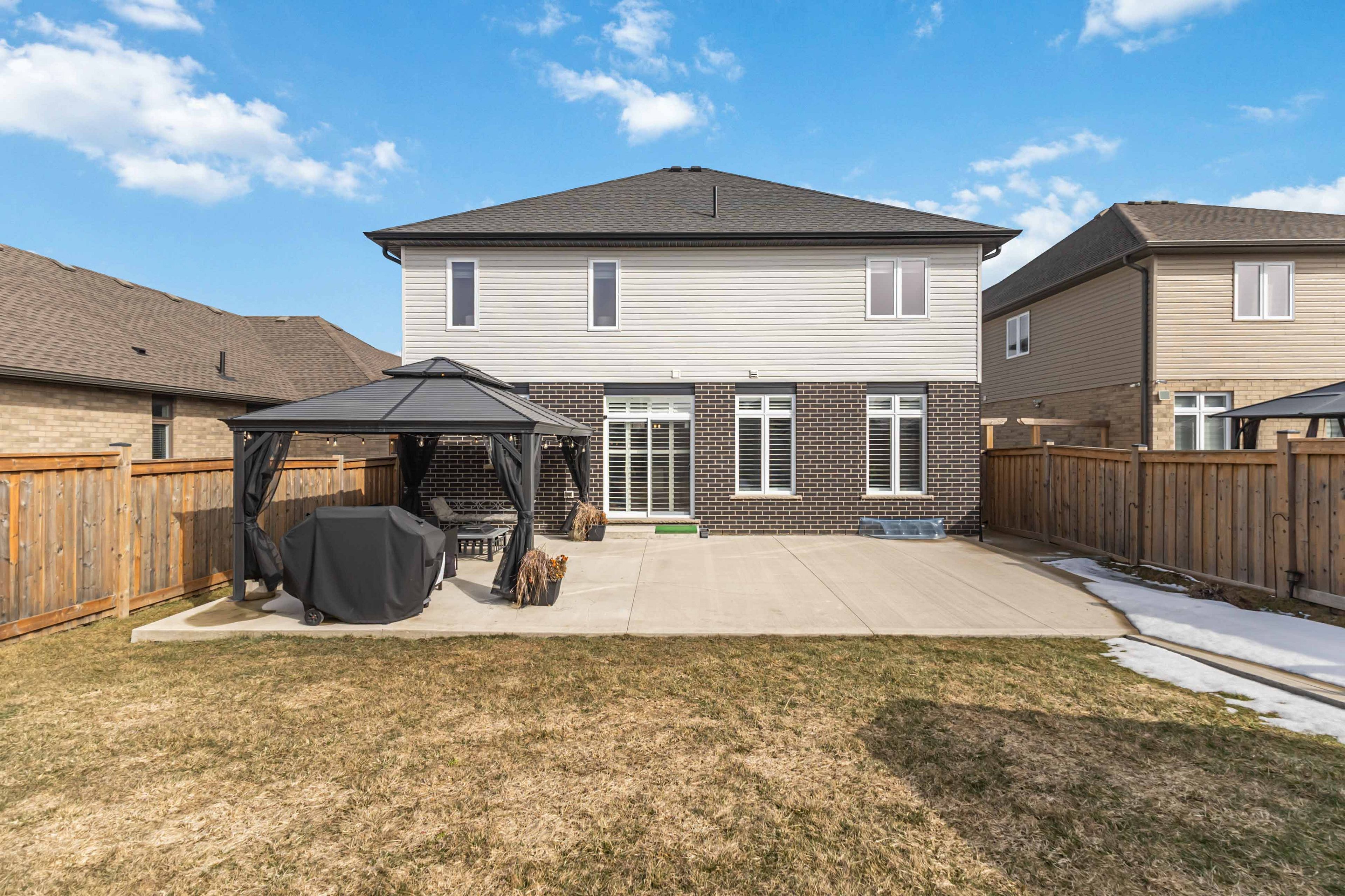 Welcome to 26 ambrosia path in st. Thomas, a beautifully upgraded 2021-built home by collier homes offering over 2,500 sq. Ft. Of above-grade living space designed for modern family living. From the moment you step inside, you're greeted by soaring ceilings, abundant natural light, and a thoughtfully designed layout that perfectly balances style and functionality. The main floor features a dedicated office ideal for working from home and a stunning open-concept kitchen, dining, and living area that feels both spacious and inviting-perfect for everyday living and entertaining. The large kitchen offers ample counter space, upgraded high-end appliances with features such as a built-in air fryer, and a convenient walk-in pantry for excellent storage, while elegant california shutters throughout the main floor add a refined touch of style and privacy. Upstairs you'll find four generously sized bedrooms, including a spacious primary retreat complete with a luxurious 5-piece ensuite and two walk-in closets. Two of the remaining three bedrooms also feature walk-in closets, offering exceptional storage, while second-floor laundry provides everyday convenience right where you need it. Step outside to the beautifully landscaped backyard featuring a large concrete patio ideal for summer gatherings, a charming gazebo for relaxing evenings, and a storage shed for added functionality. The exterior upgrades continue with custom lighting, a 4-car concrete driveway, and a concrete walkway leading to the backyard. The basement is already framed and includes high ceilings and oversized windows that allow plenty of natural light, creating the perfect blank canvas to easily finish to suit your needs. With quality construction, thoughtful upgrades, and incredible space inside and out, this move-in ready home offers an exceptional opportunity to enjoy comfortable modern living in one of st. Thomas' most sought-after and growing family-friendly communities.
