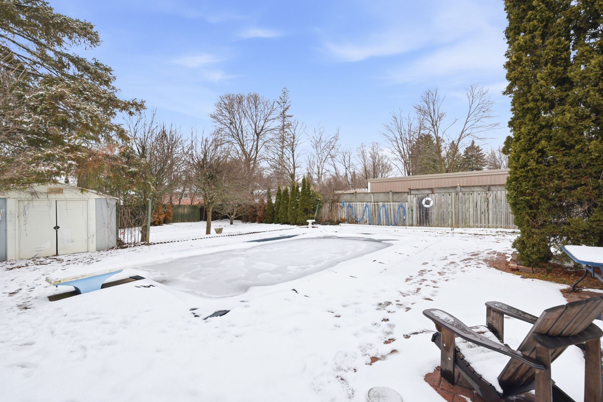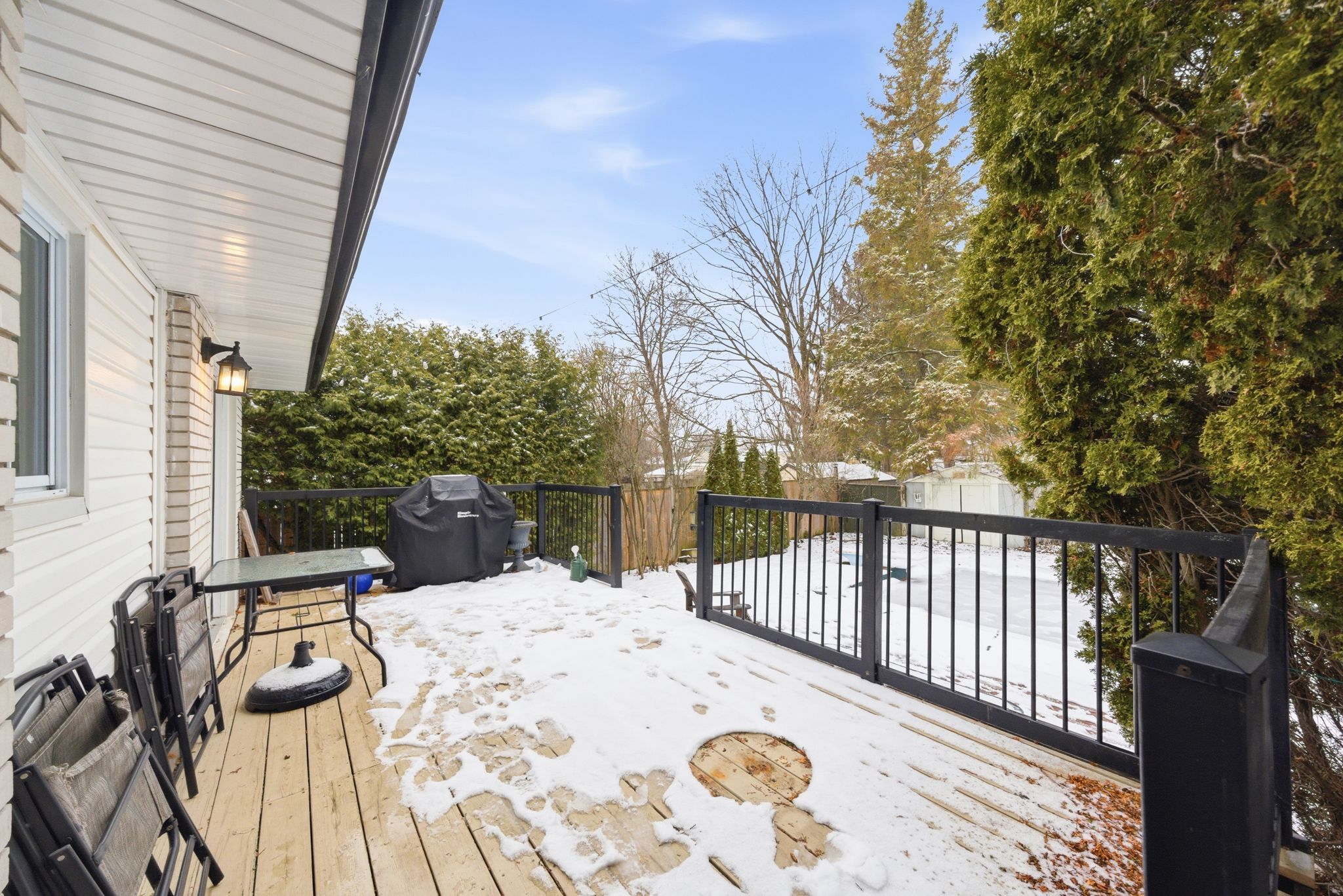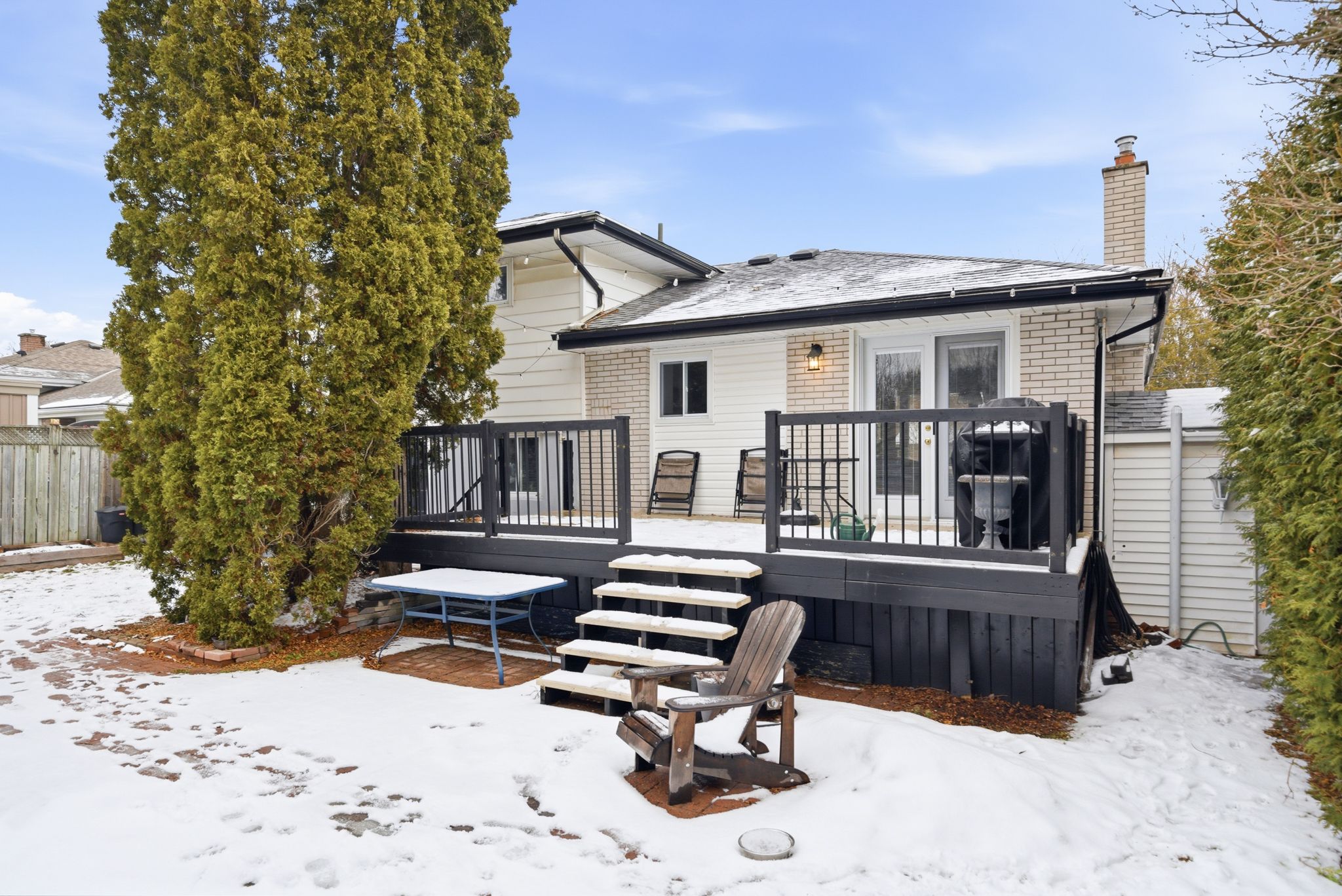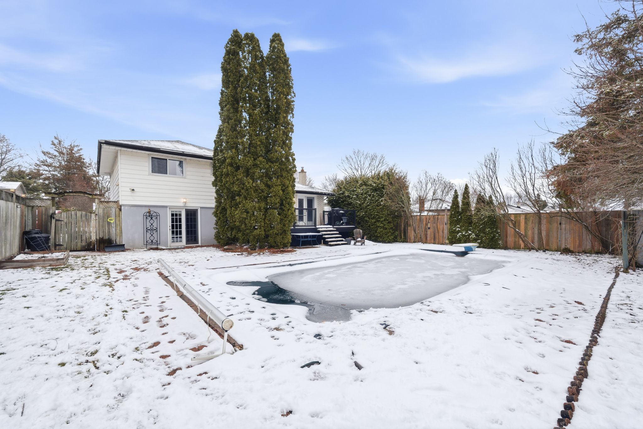 Tucked away on a quiet cul-de-sac, 26 applewood drive offers the kind of lifestyle that feels like a retreat-without ever leaving town. This beautifully updated home sits on an impressively deep 140 ft lot, offering exceptional privacy and space. The fully fenced backyard is a true retreat, featuring an inground pool (16 x32 ), expansive yard, patio, and a newer deck-perfect for entertaining or relaxing all summer long. Inside, you'll find a bright and inviting layout with 3 bedrooms and 2 full bathrooms. The open-concept farmhouse-style kitchen is the heart of the home, with island + patio doors leading from the dining room directly to the deck and backyard. The spacious living area is filled with natural light. Upstairs offers three generously sized bedrooms and an updated full bathroom. From the front entrance, step into a large foyer that leads to a ground-level family room with a cozy fireplace. This level also features a versatile nook-ideal for a home office or play space-with patio doors providing easy access to the backyard. A convenient 3-piece bathroom and laundry room complete this level. The basement adds even more flexible space along with plenty of storage. A rare combination of privacy, space, and thoughtful updates. This is where convenience meets calm-where you can truly have that in-town living with a peaceful, vacation-like feel.