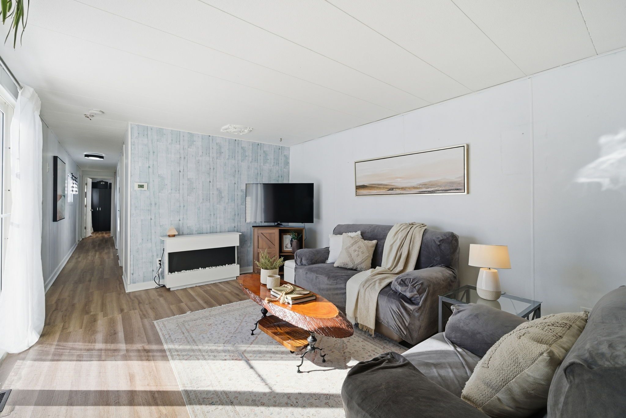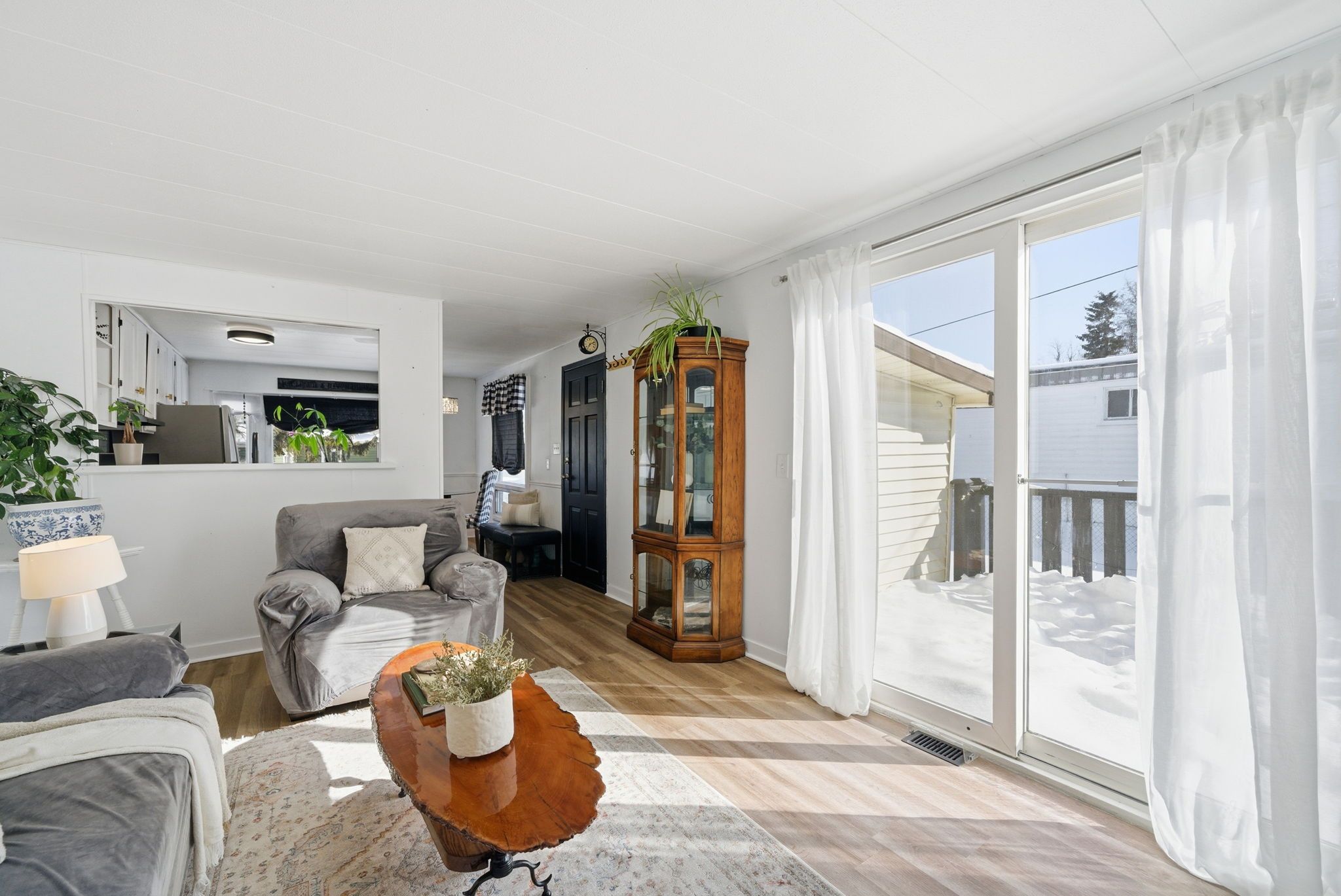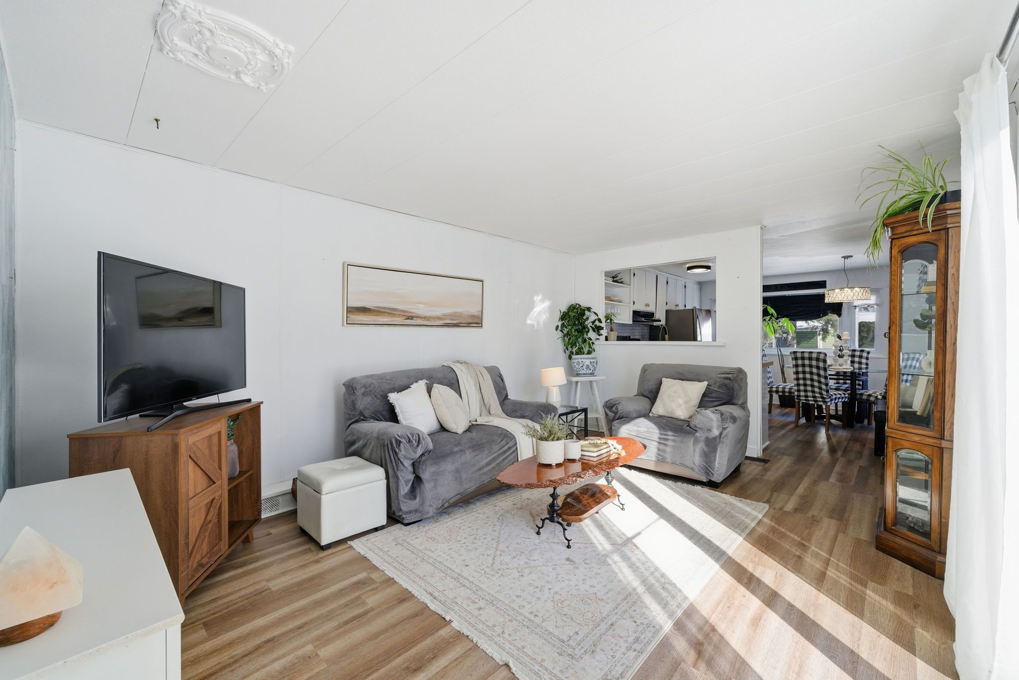 Welcome to 26 basher drive, a well-maintained bungalow-style mobile home located in a quiet, friendly neighbourhood just minutes from all the amenities cobourg has to offer. This bright and functional home features an open-concept living area filled with natural light, creating a warm and inviting atmosphere for everyday living. The eat-in kitchen has been tastefully updated with modern tile finishes and flows seamlessly into the living space. Offering two comfortable bedrooms and a full bathroom with convenient in-bathroom laundry, the layout is designed for both practicality and comfort. A functional mudroom adds extra storage and organization, while direct access from the living room to the side and back deck extends the living space outdoors, perfect for relaxing or entertaining. Recent updates include refreshed kitchen and bathroom tile work, a newly installed storm door at the front entrance, and a furnace and a/c system updated in 2019 for year-round comfort. Ideally situated in a peaceful, welcoming community close to shops, services, and downtown cobourg and port hope, this home offers an affordable and low-maintenance lifestyle in a sought-after location, making it an excellent option for those seeking comfort, convenience, and value.