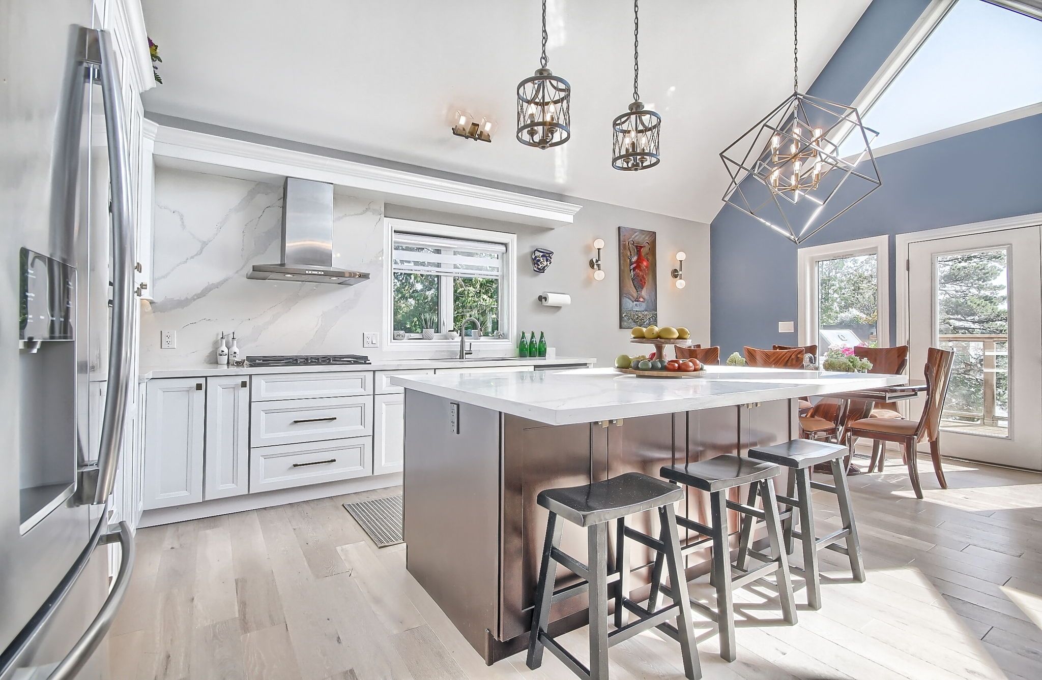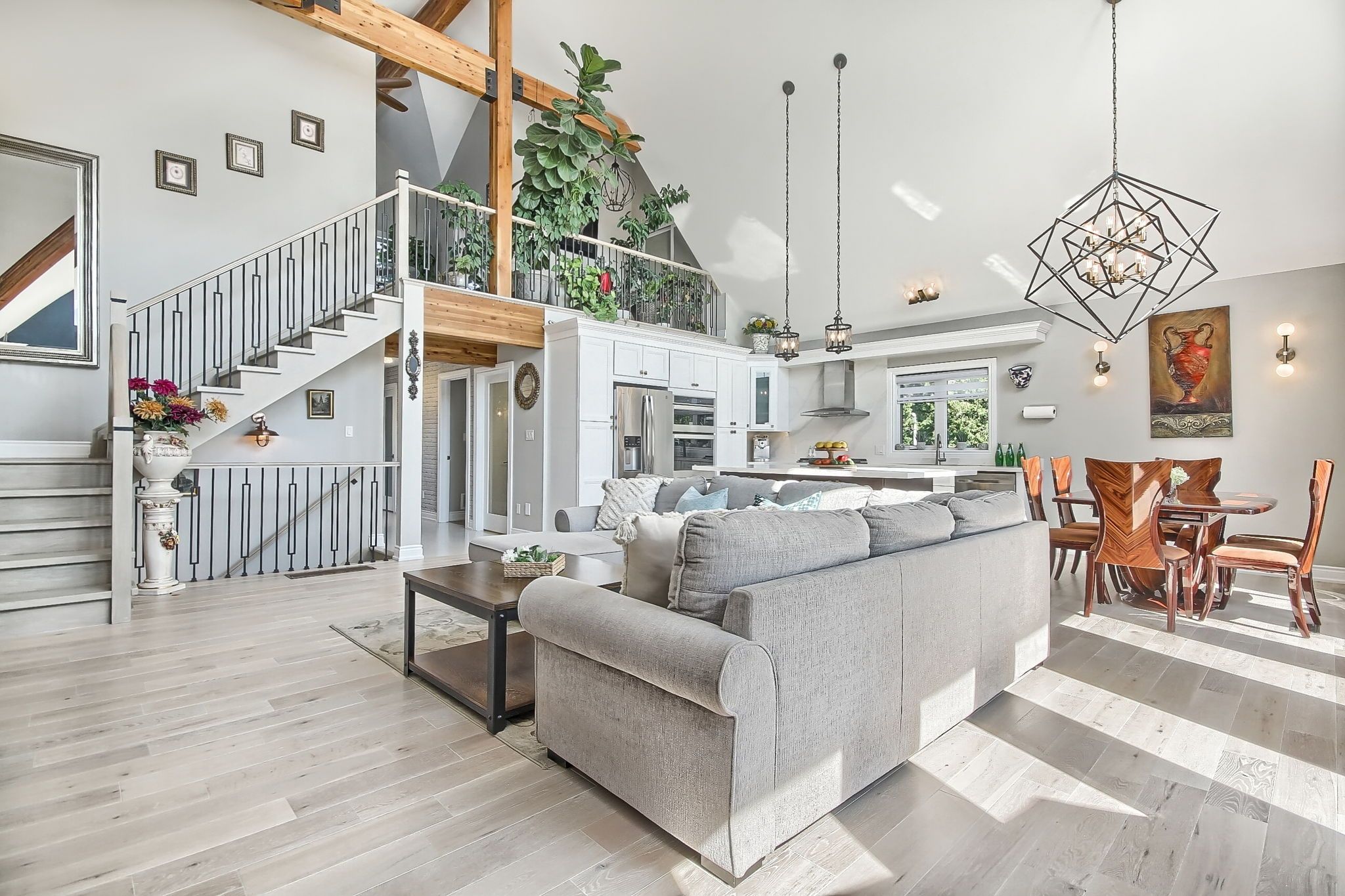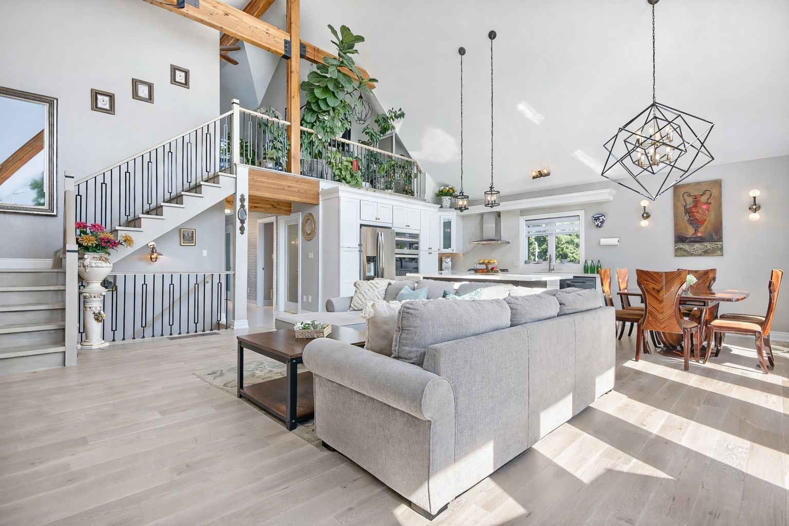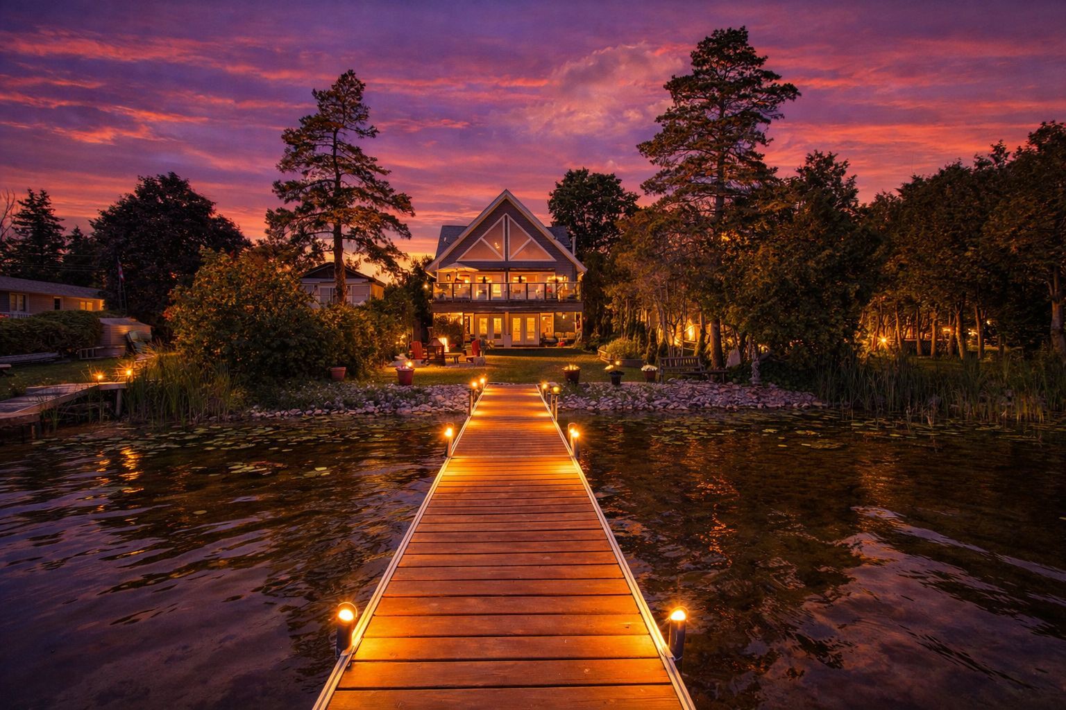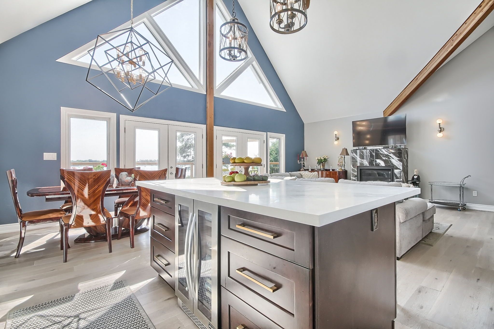 • Bright open-concept design with vaulted ceilings and stunning lake views.