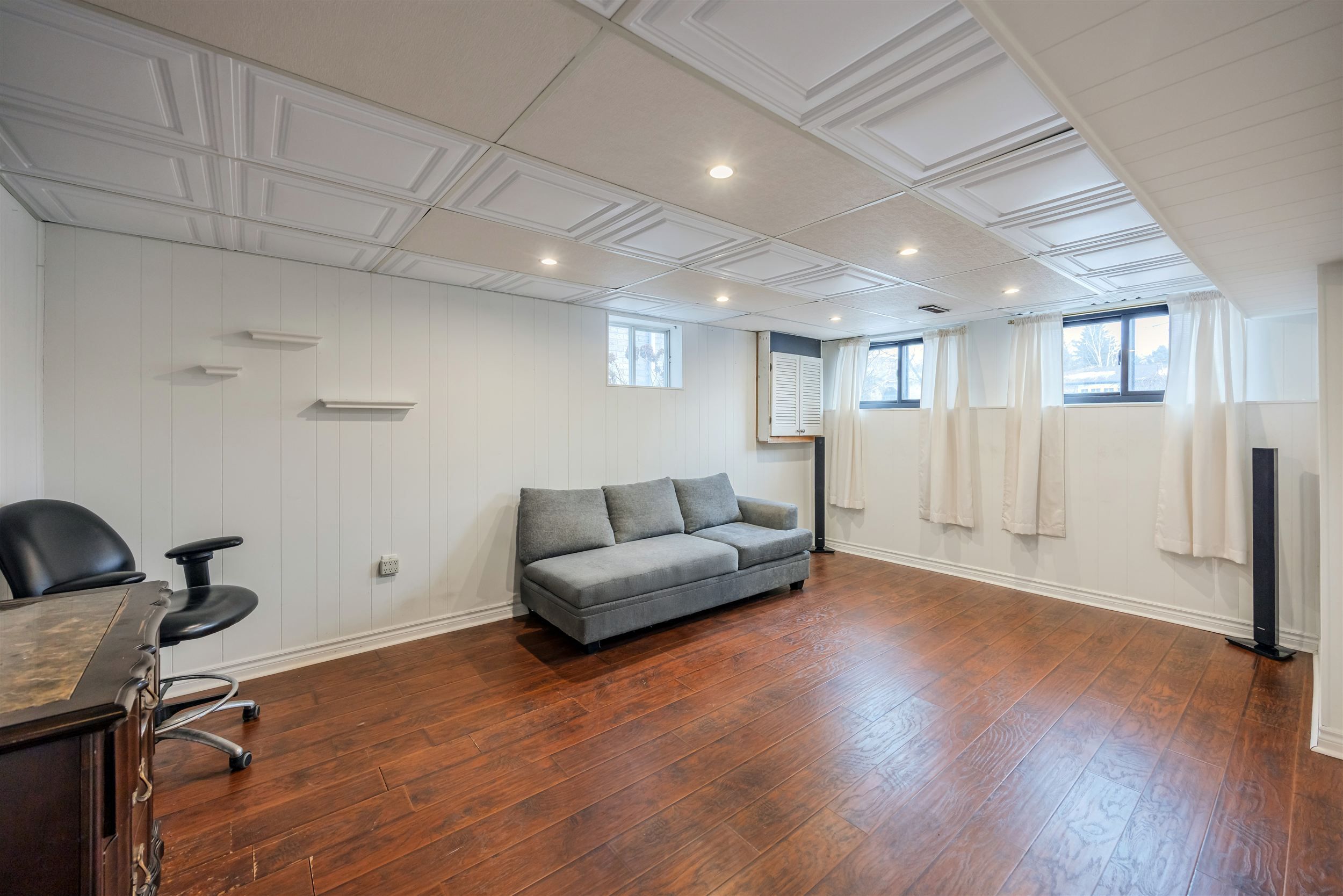 Spacious open concept bungalow on a laroe 50x187 ft. Pie lot with mature trees, hardwood floors (no carpet). Recent improvements includes new 200 am electrical panel (2025), 3 bedrooms painted (2025), roughed in kitchen in bsmt. Great potential for inlaw suite. Minutes to highways, e. G go train, hiking trails, splash pad, tennis courts & park.