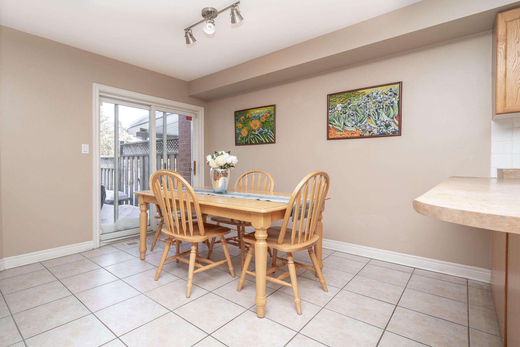 • Bright kitchen with a sunny breakfast area and backyard access.