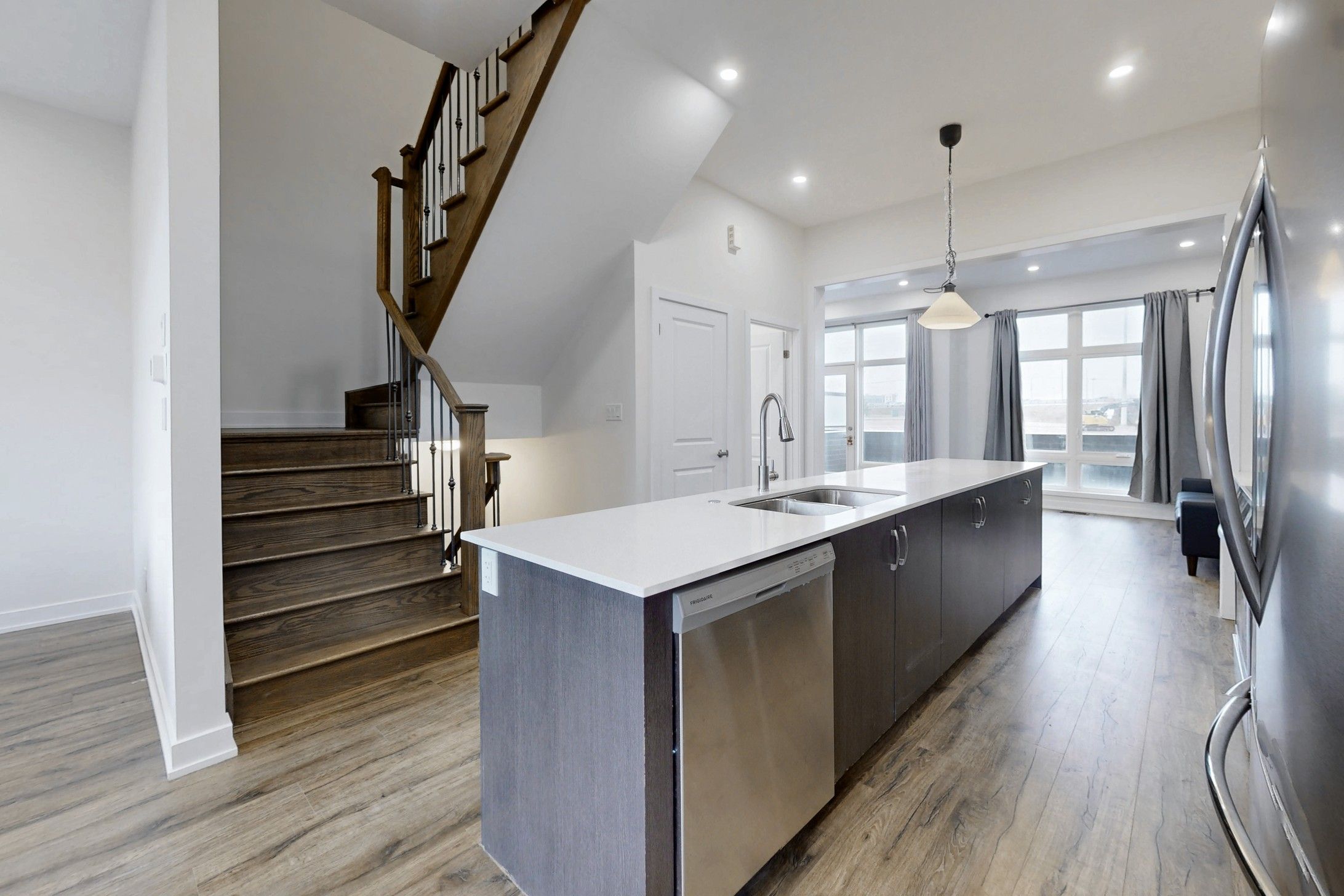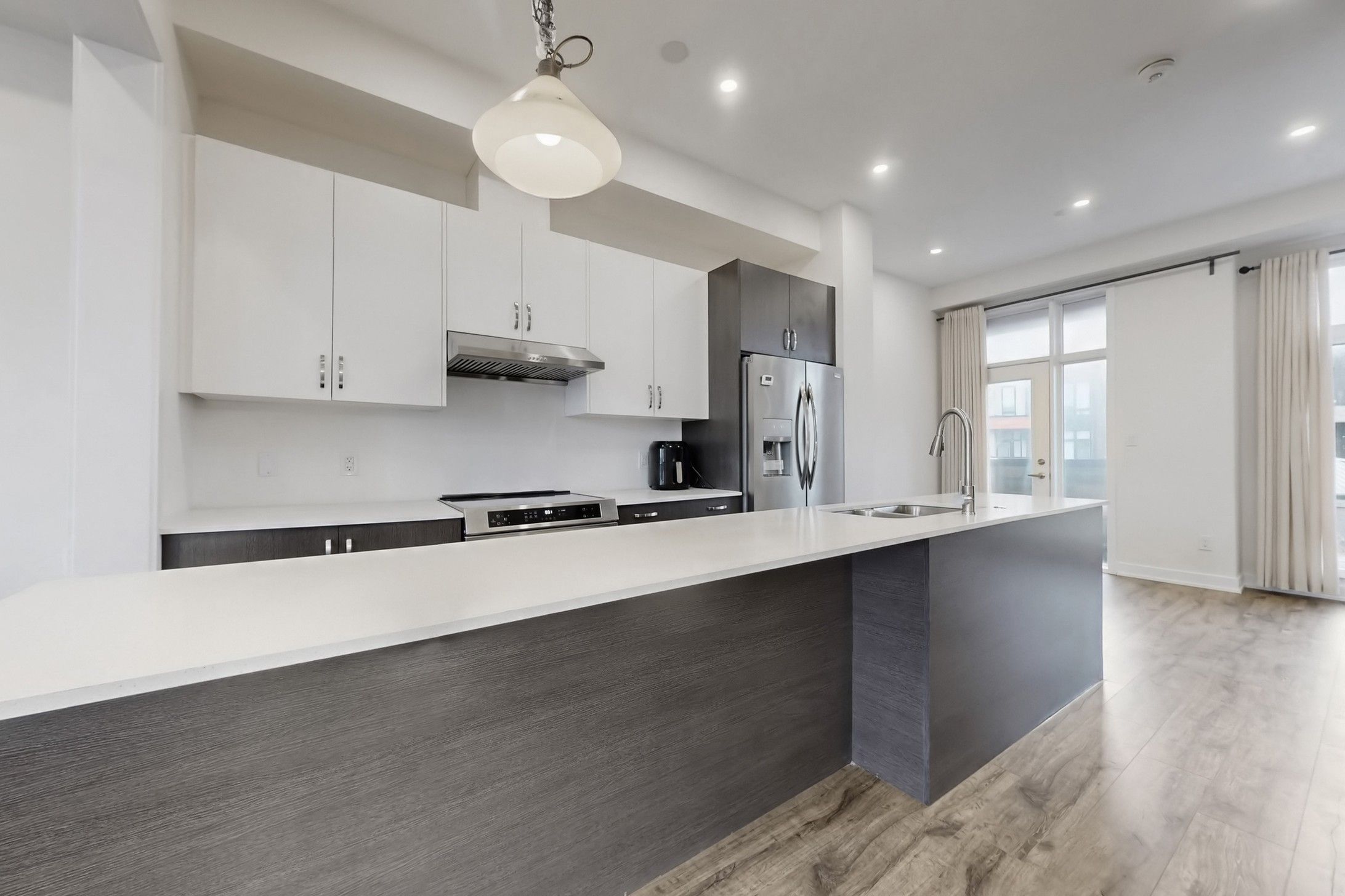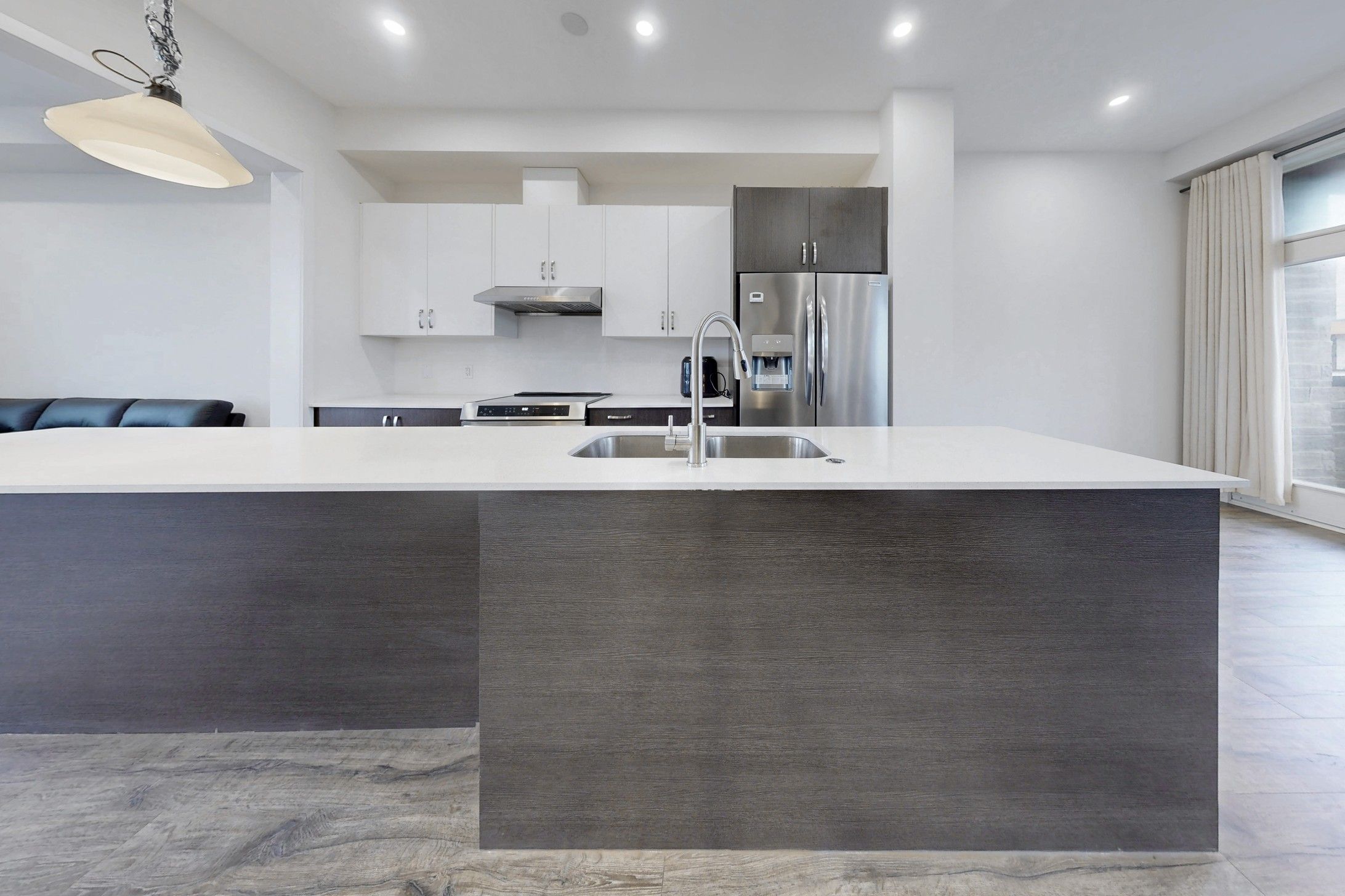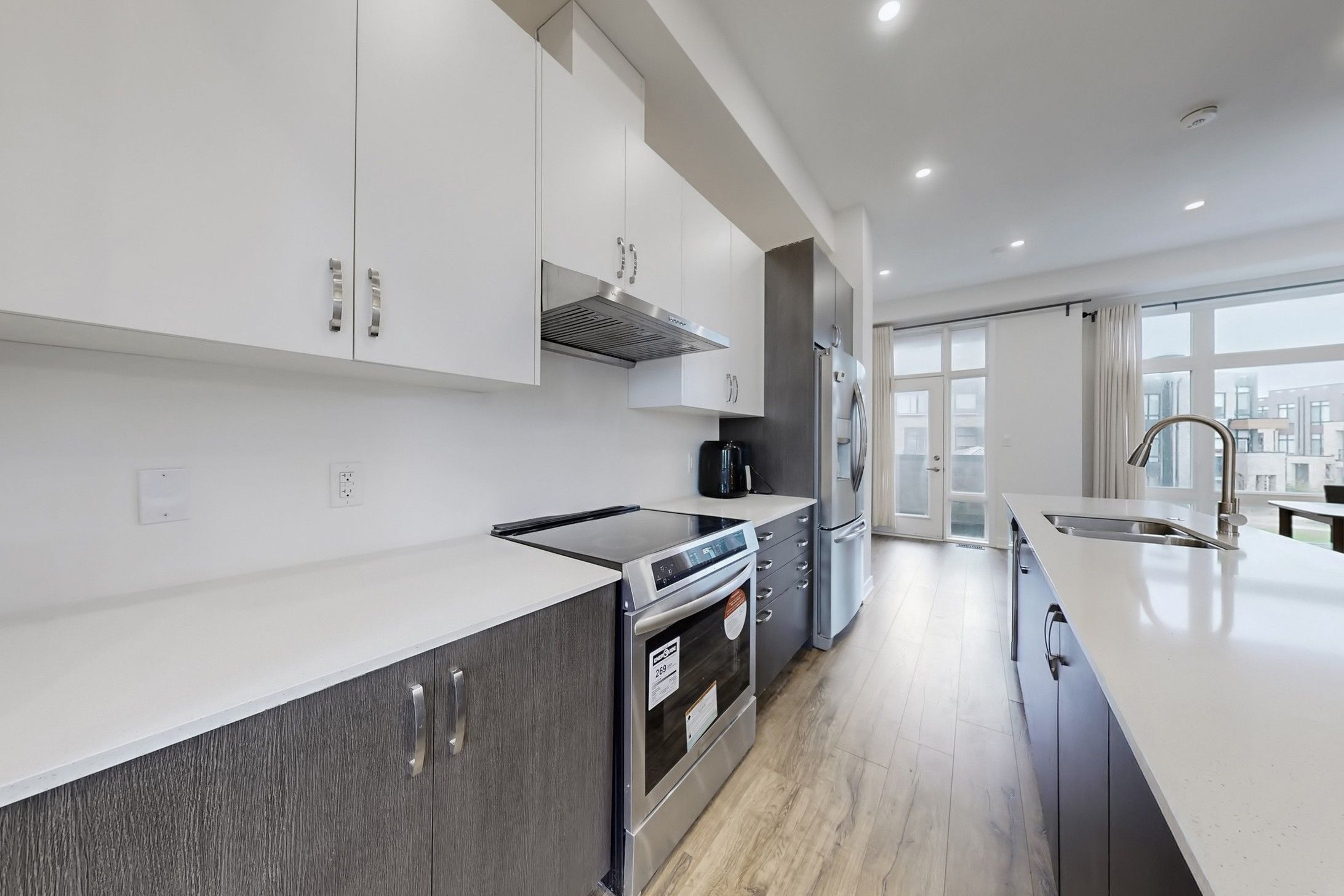 • Modern kitchen includes quartz countertops and stainless steel appliances.