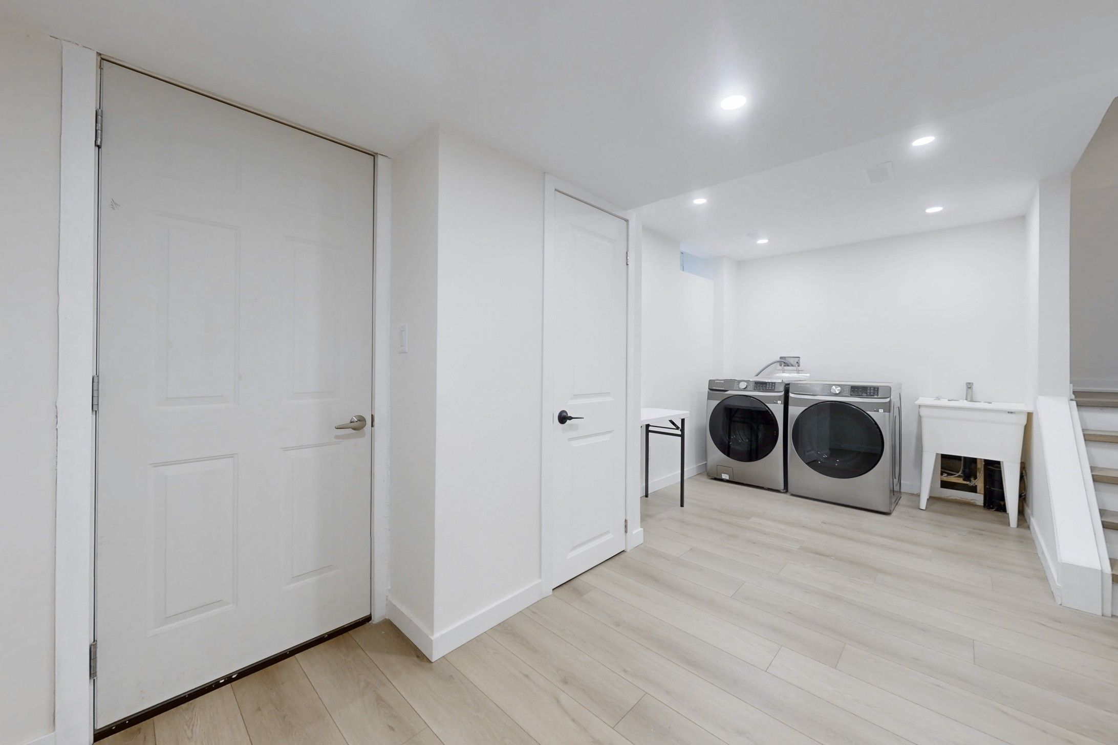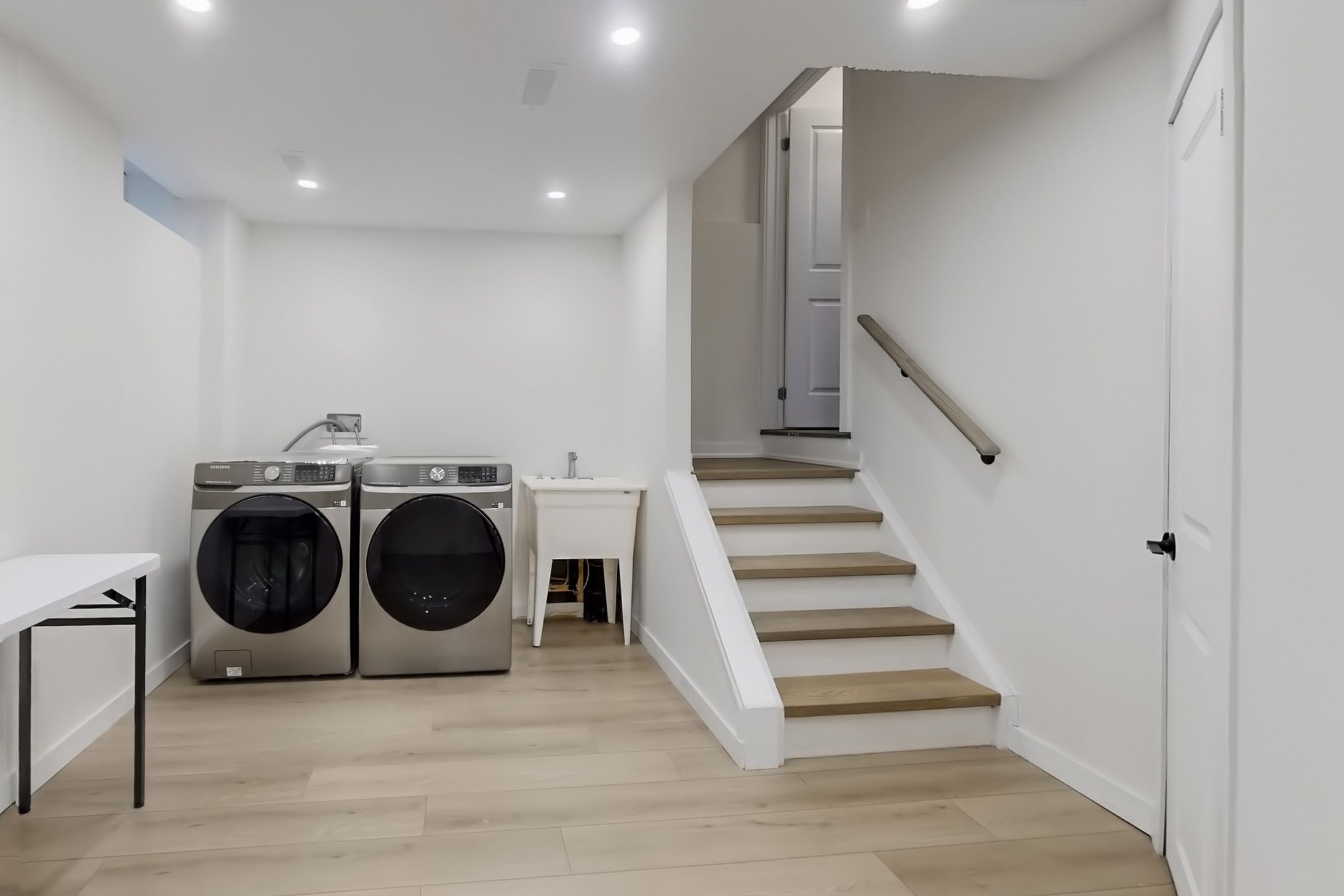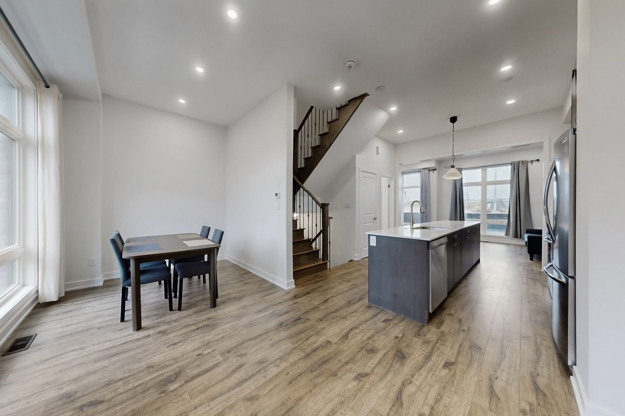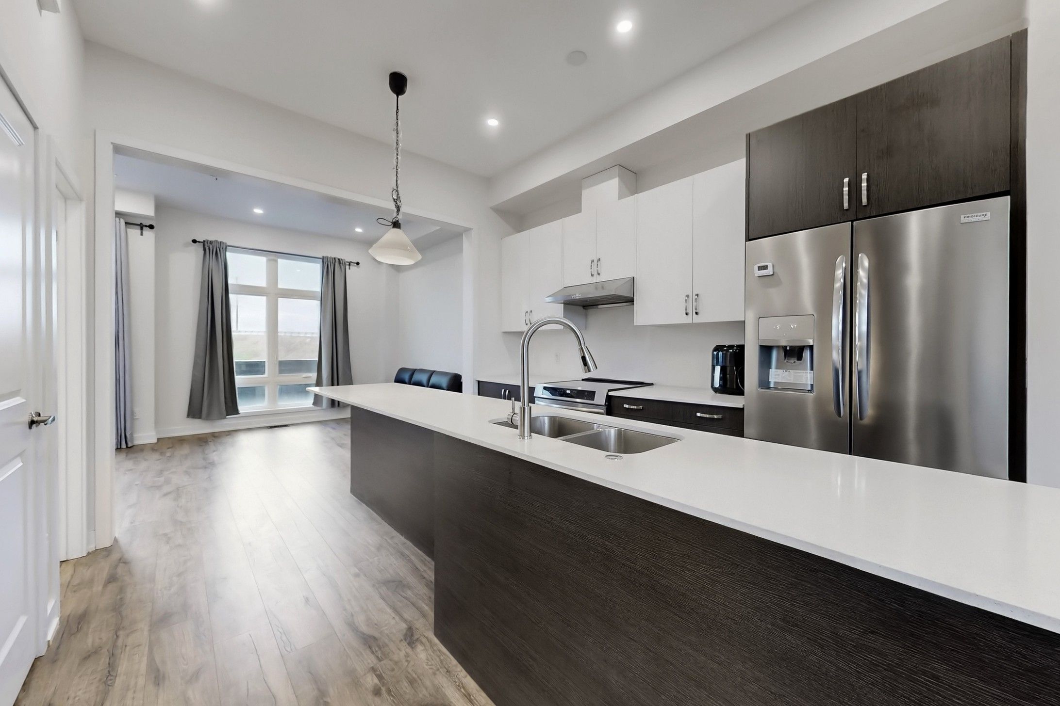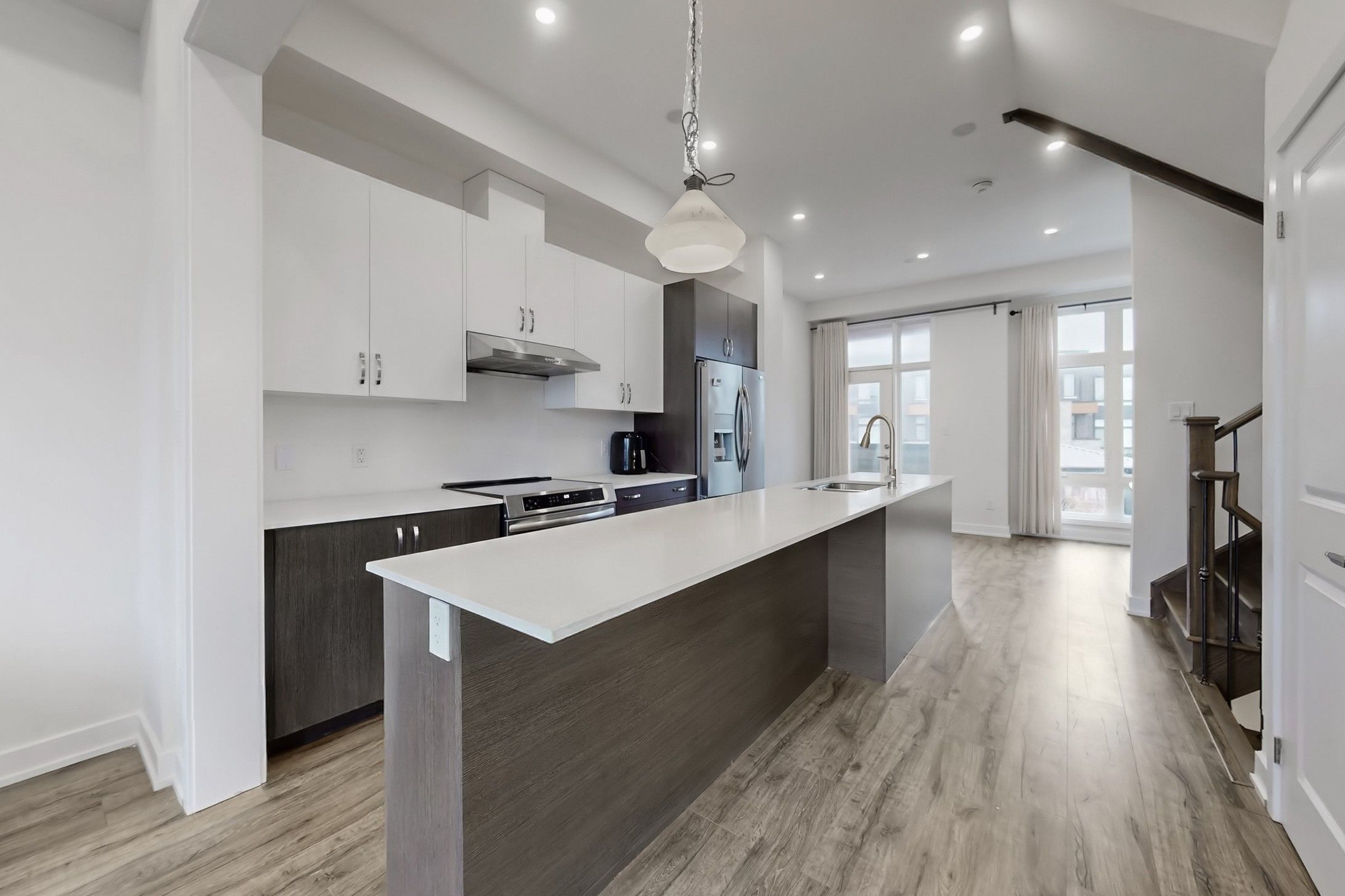 • Modern kitchen includes quartz countertops and stainless steel appliances.