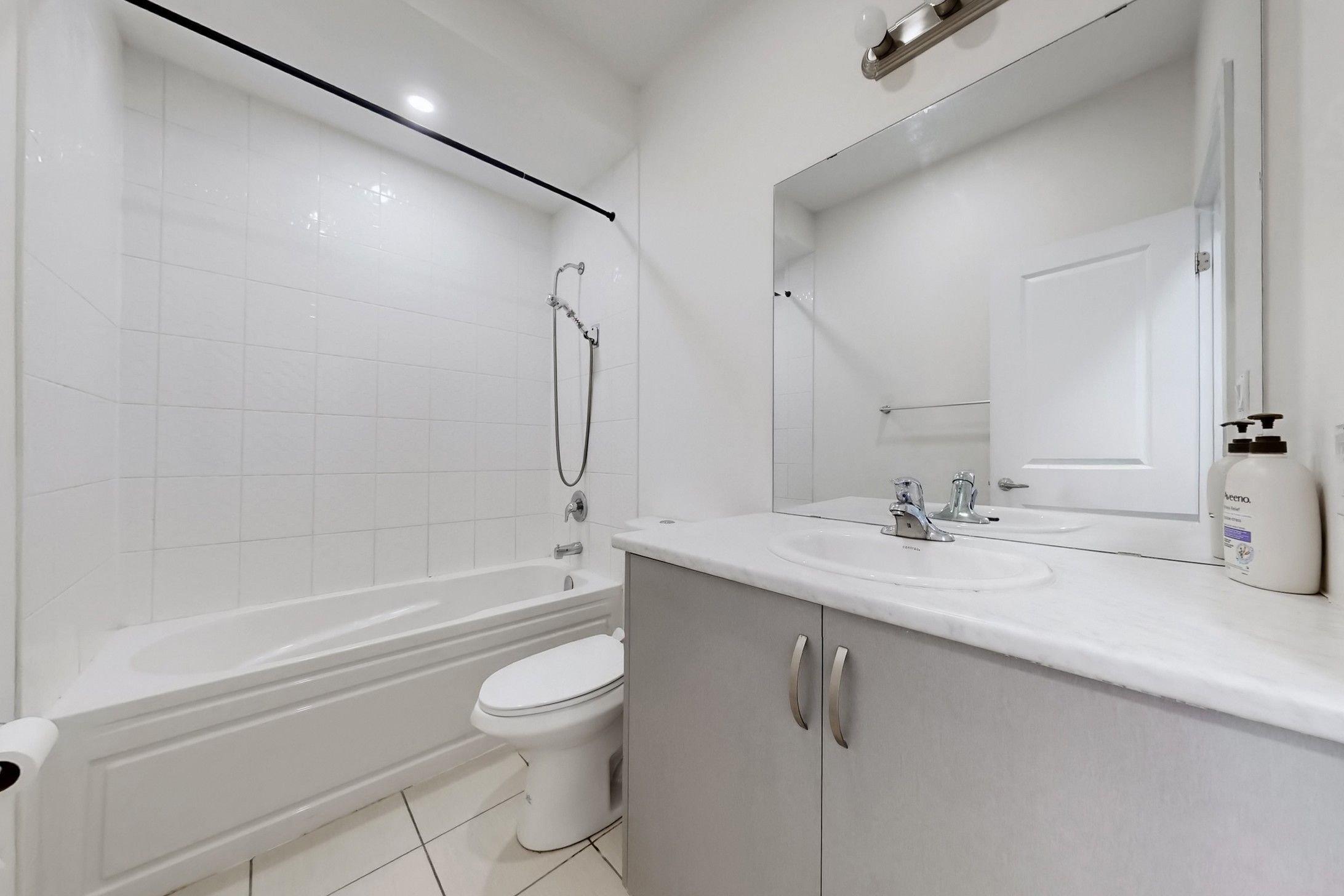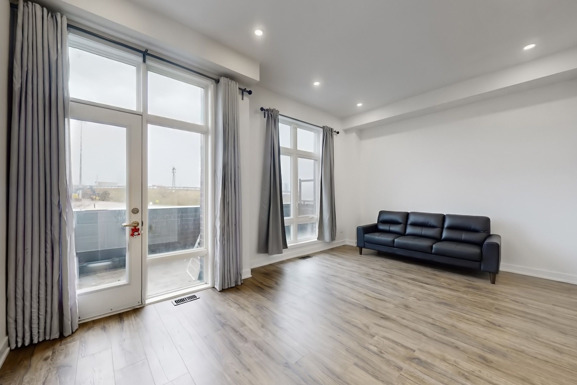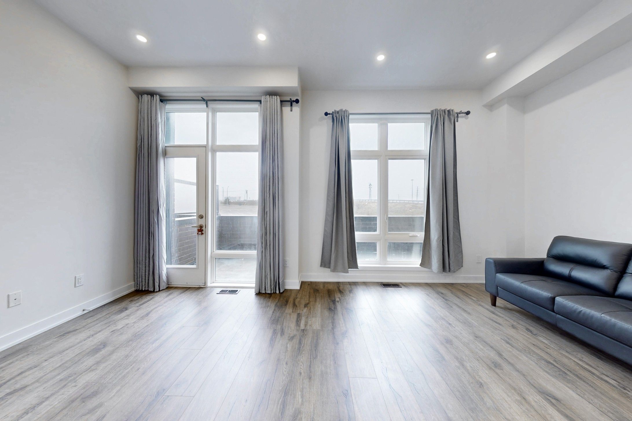 Luxurious double car garage townhouse located in high demand area, 10' ceiling high on main floor, open concept with excellent layout, modern kitchen with quartz counter-top and s/s appliances, large windows, laminate floor through-out, pot lights, frameless glass shower in master ensuite, oak staircase with iron rod railing, close to go station, school, park, plaza, canada's wonderland, vaughan mills mall and hwy 400
