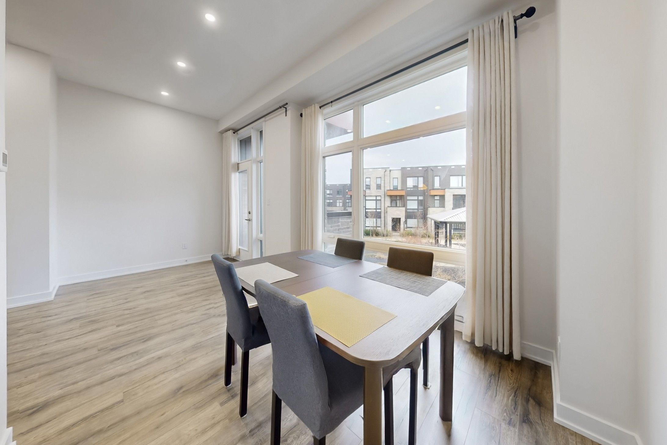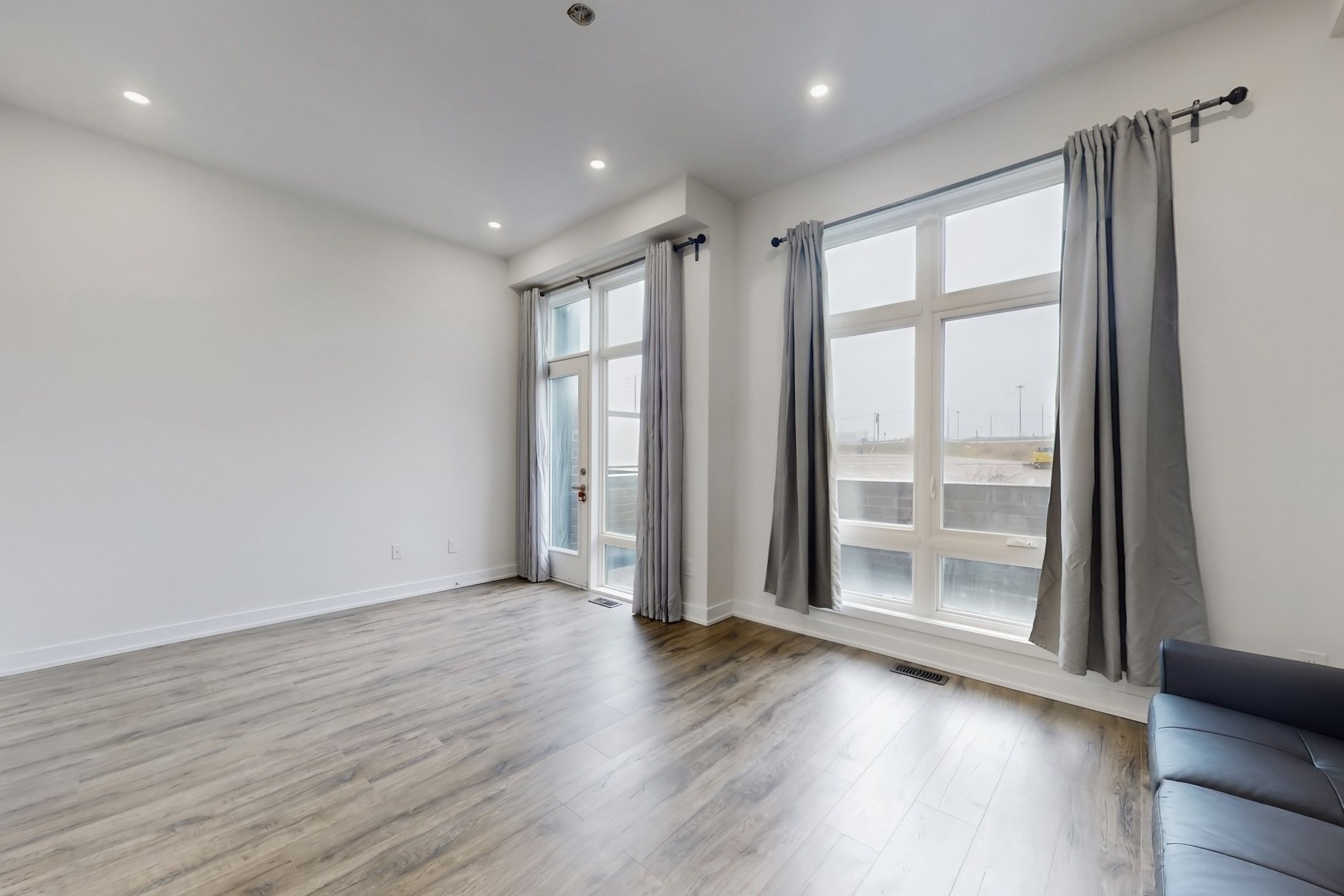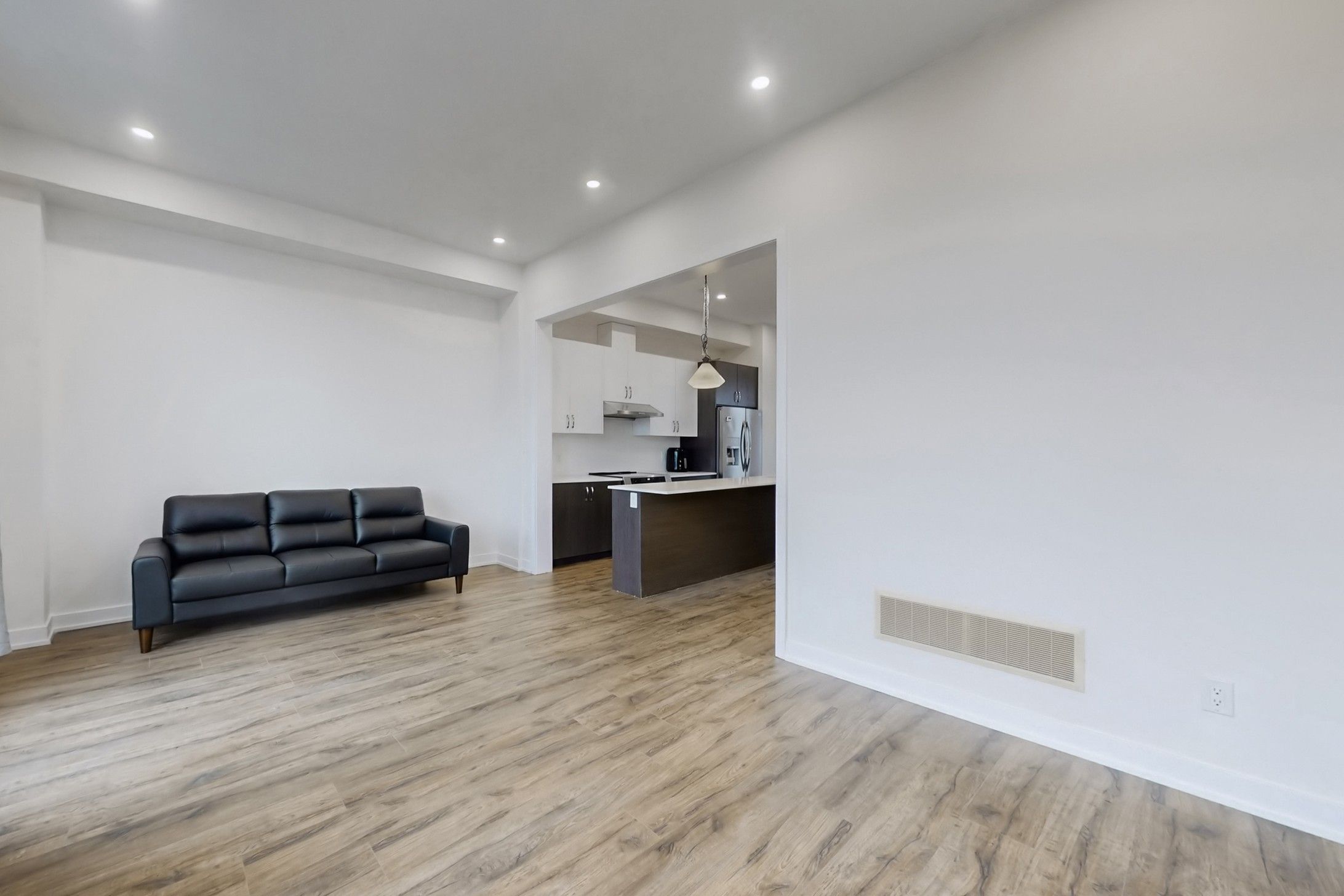 Luxurious double car garage townhouse located in high demand area, 10' ceiling high on main floor, open concept with excellent layout, modern kitchen with quartz counter-top and s/s appliances, large windows, laminate floor through-out, pot lights, frameless glass shower in master ensuite, oak staircase with iron rod railing, close to go station, school, park, plaza, canada's wonderland, vaughan mills mall and hwy 400
