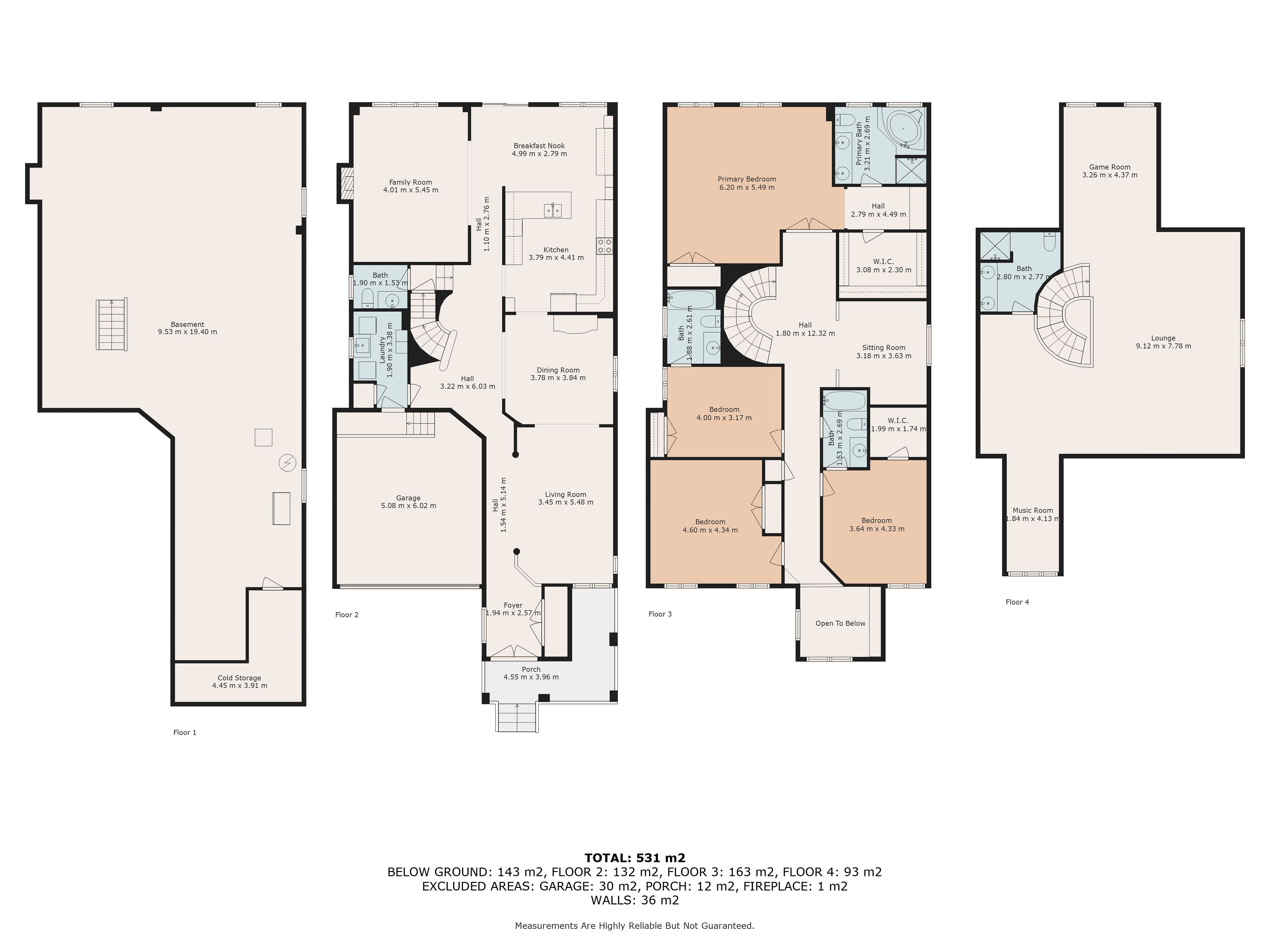 • Third floor offers flexibility with a large fifth bedroom and media room.