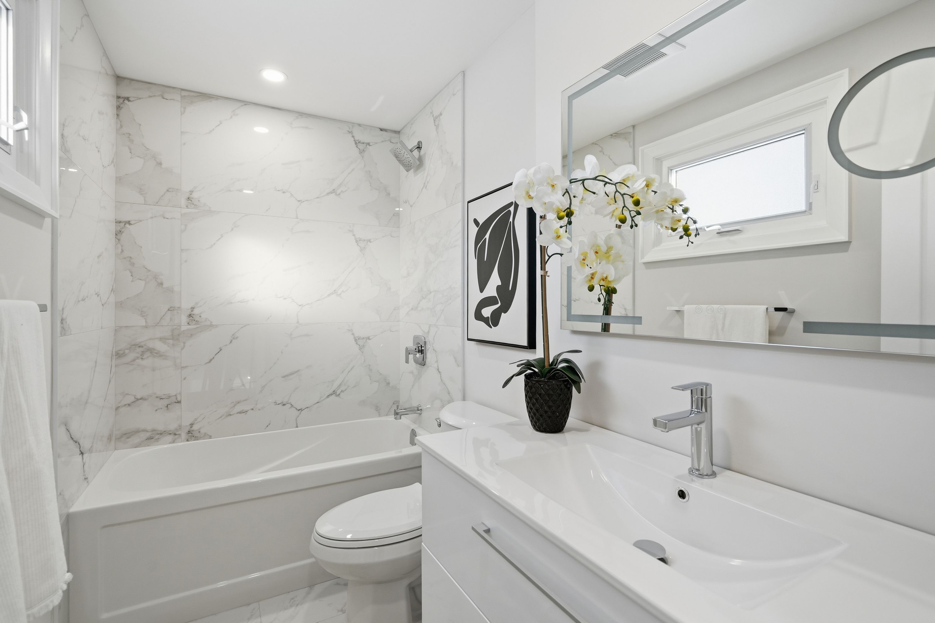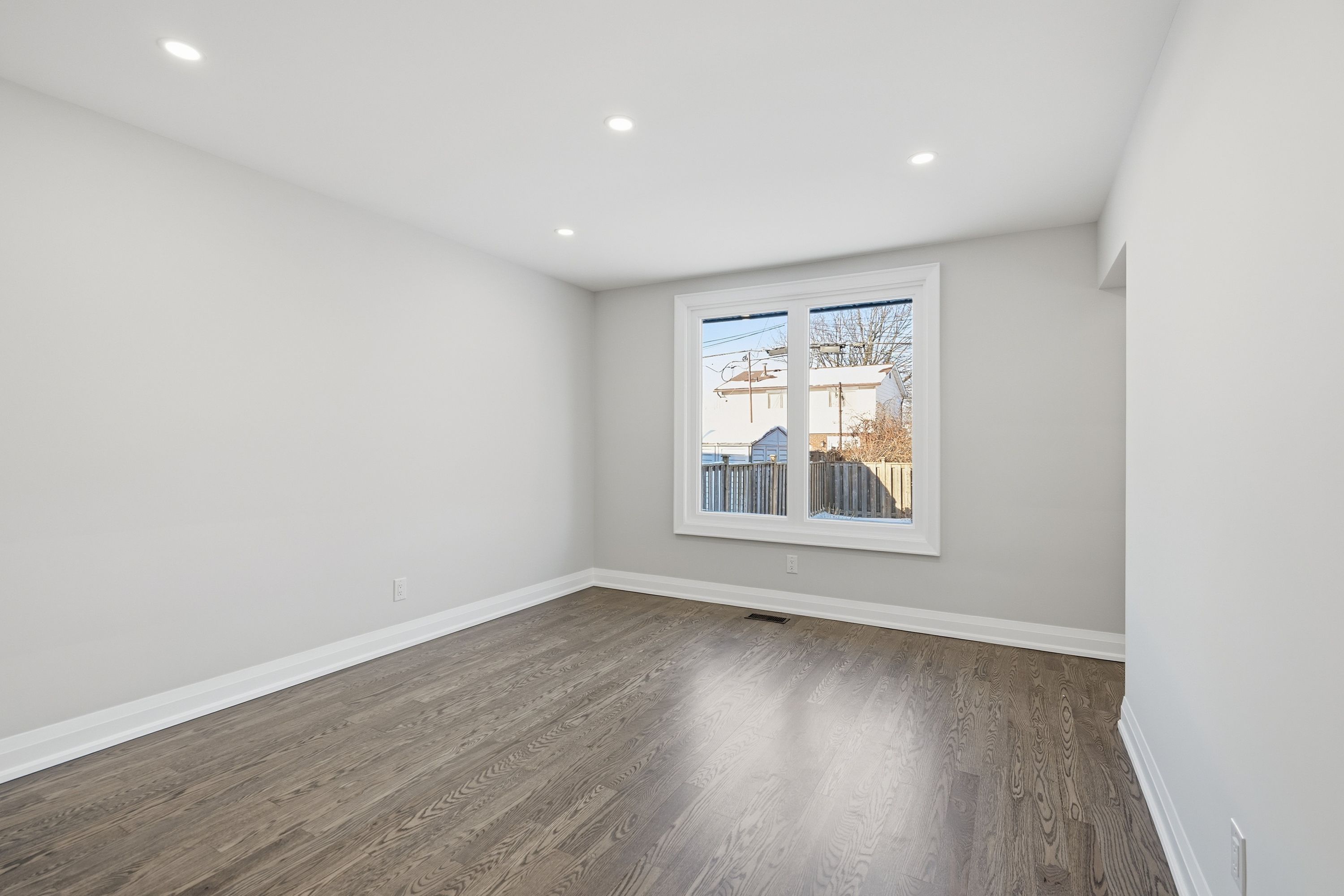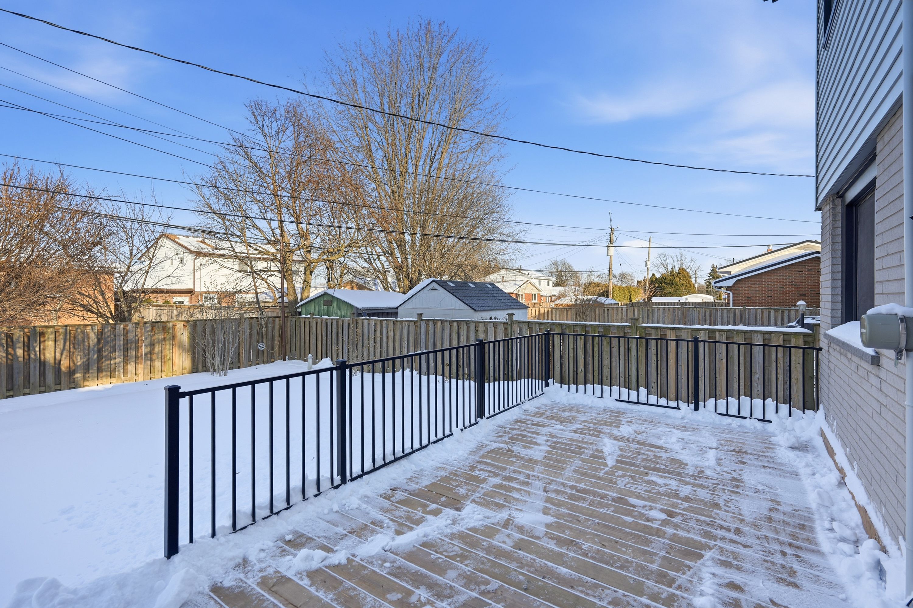 This stunning 2 storey home offers exceptional curb appeal and has been professionally renovated from top to bottom. This elegant and timeless home defines turn-key living, offering 5 well sized bedrooms, 4 new bathrooms and over 2500 square feet of finished living space. Showcasing a refreshed exterior highlighted by brand-new garage doors, exterior doors, & exterior pot lights. As you step inside, the expansive living room is flooded with natural light from large windows and features sanded and stained hardwood floors through-out, new trim, modern light fixtures, pot lights, and a seamless open-concept dining area. The brand-new kitchen offers quartz countertops, custom soft-close cabinetry, all-new high-end appliances, and a beautifully designed open layout perfect for both daily living and entertaining. Attention to detail is evident throughout this home, featuring new carpet runners, four well sized bedrooms and two fully renovated bathrooms. The finished basement adds refined living space ideal for recreation, guest accommodation, or a home office, featuring a brand new bathroom and a generous utility room with a brand-new high-end washer and dryer and workbench. The large backyard offers plenty of space for outdoor living, complete with a brand-new deck and railings. Beyond the visible upgrades, the home offers complete peace of mind with updated plumbing, updated electrical with esa approval, new attic insulation, a new high-efficiency furnace, and a high-efficiency hot water heater, completing this extensively upgraded home. Set within a sought-after neighbourhood close to amenities, grocery stores, top-rated schools, and public transit, this extensively upgraded 2025 residence offers move-in-ready living with exceptional quality, comfort, and modern appeal.