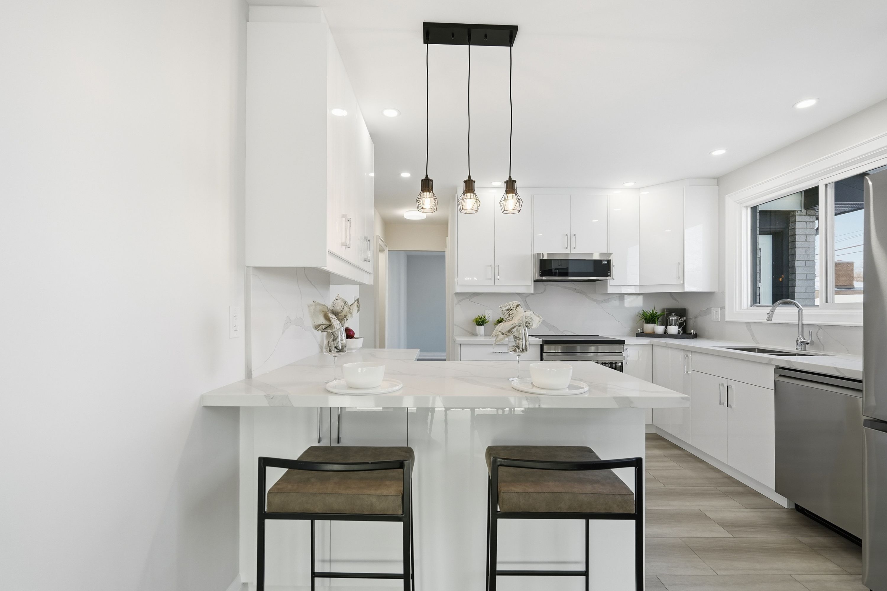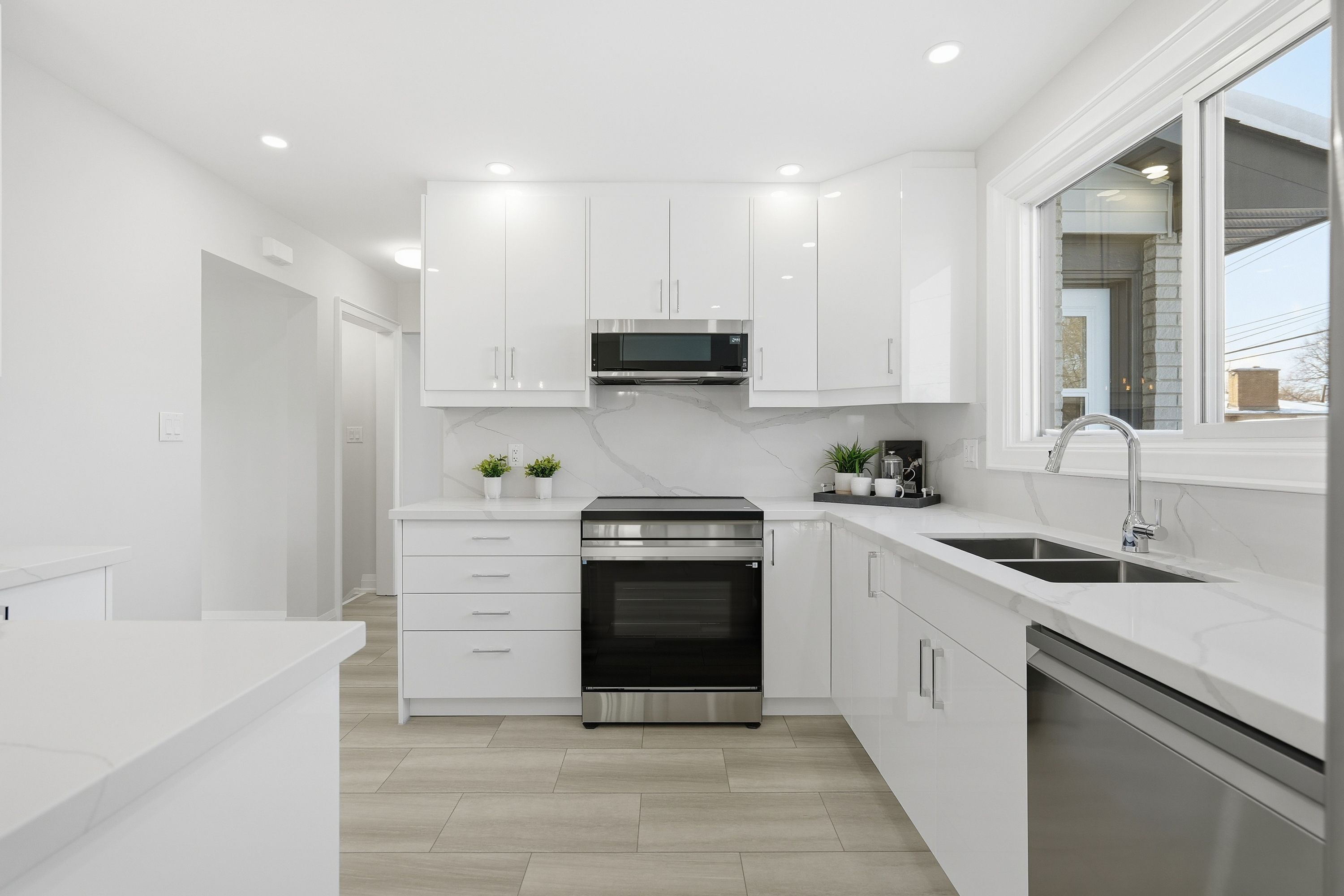 • New kitchen featuring quartz countertops and high-end appliances.