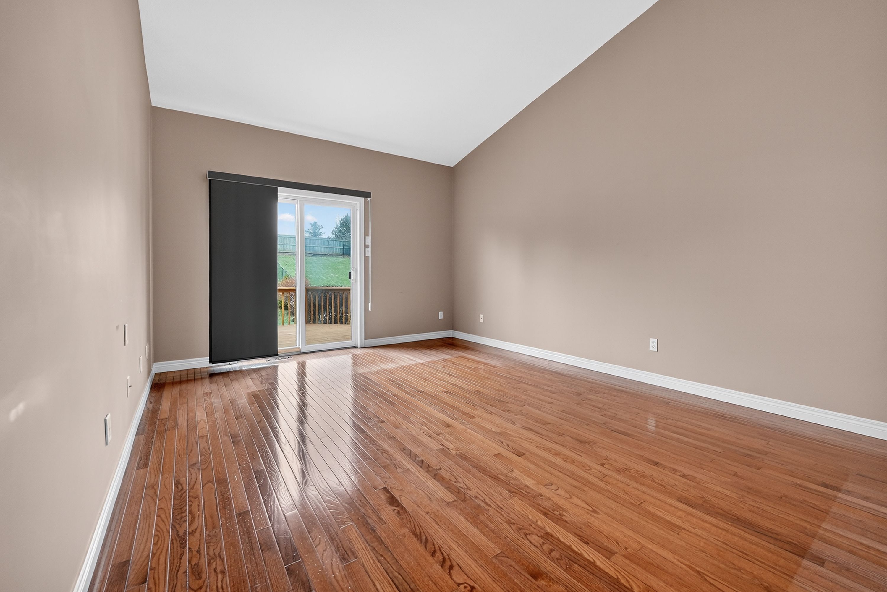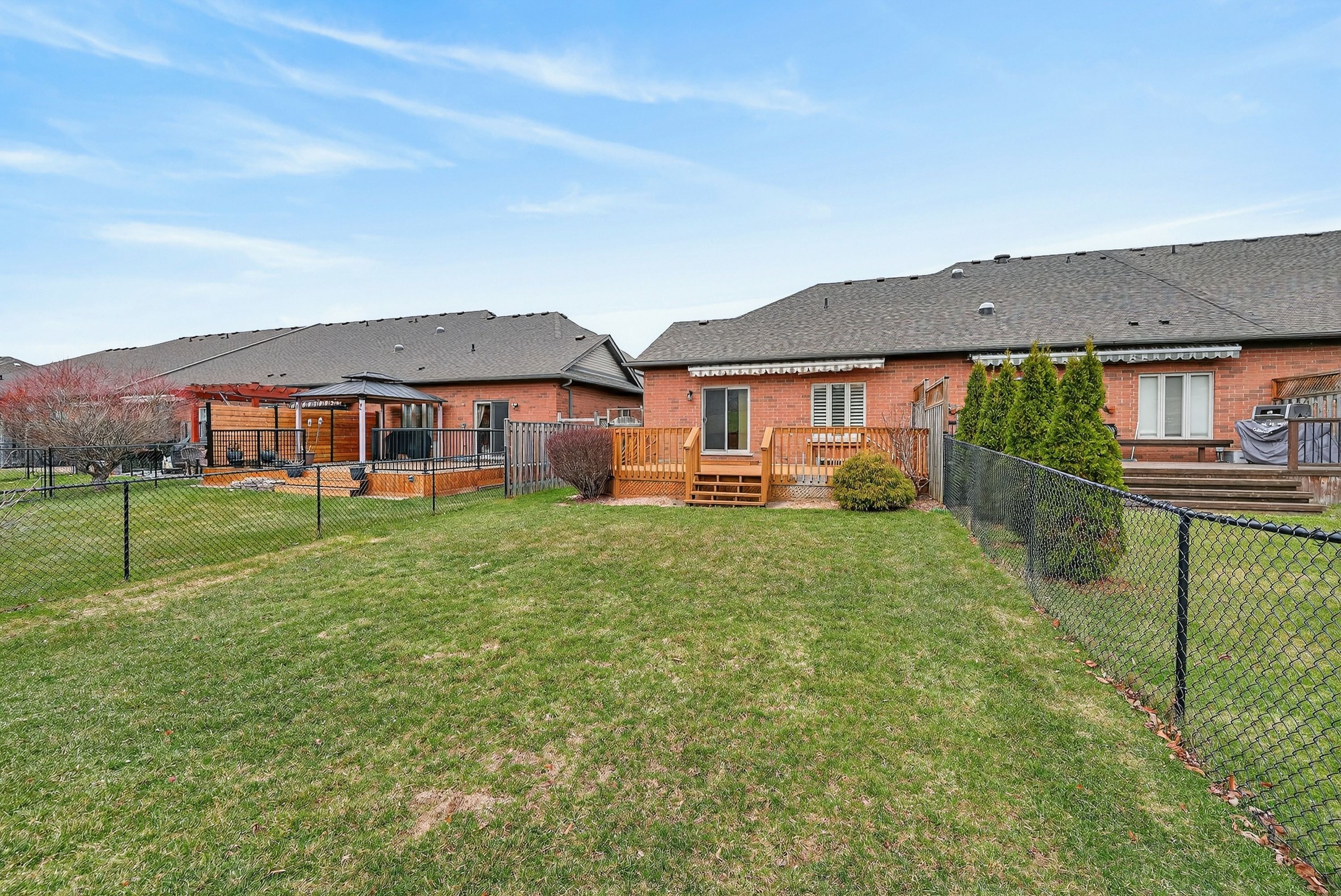 • Oversized deck with retractable awning overlooking a fully fenced yard.