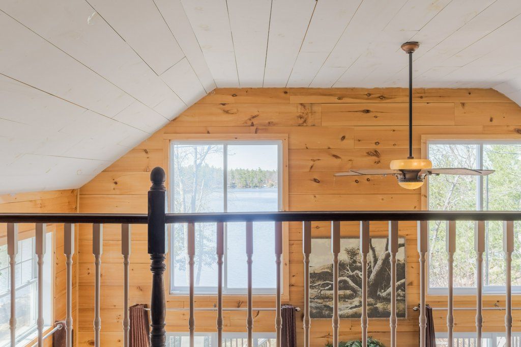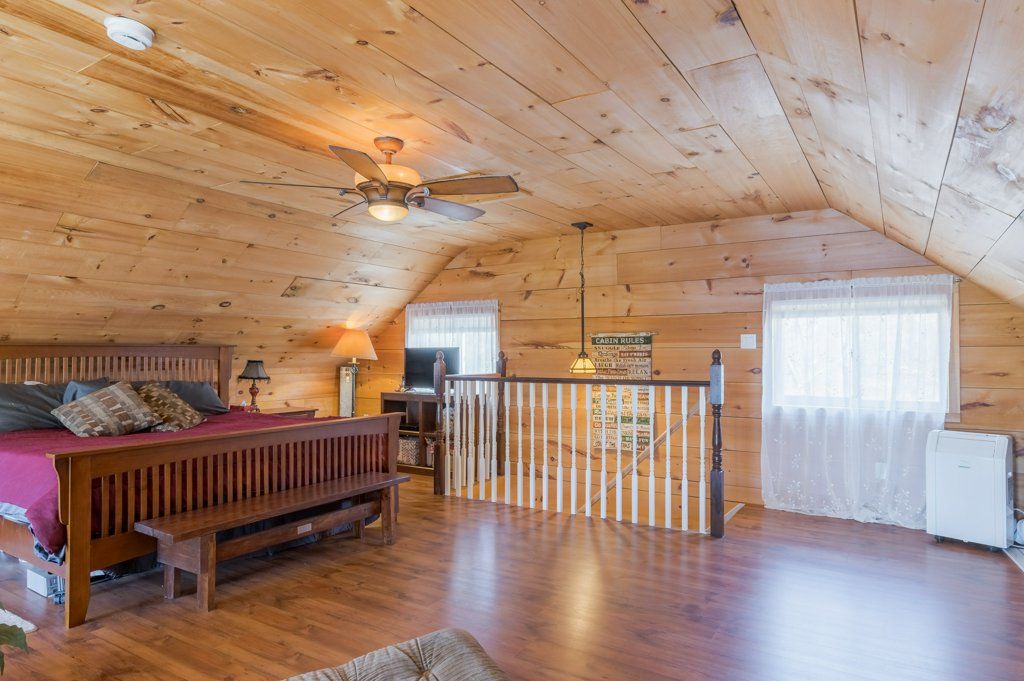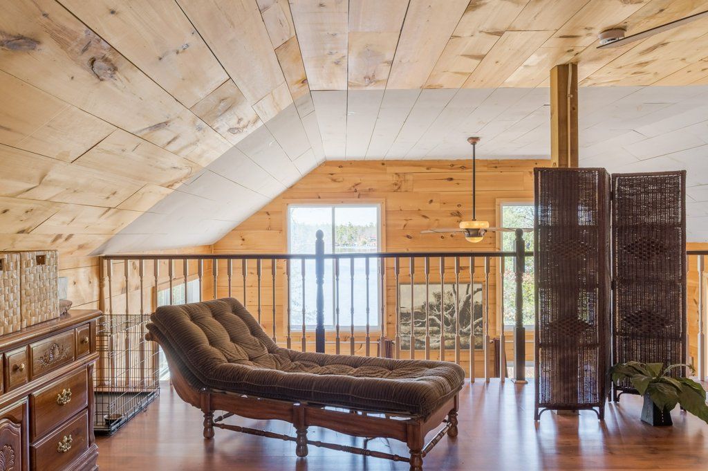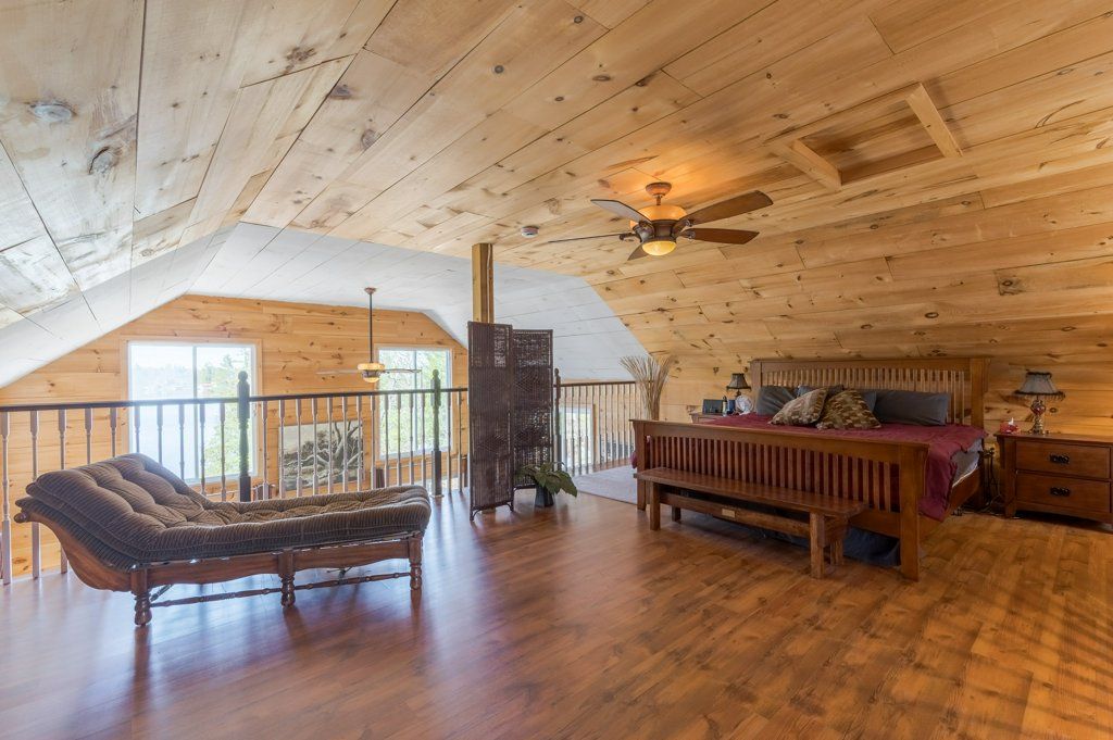 • Spacious primary bedroom loft with lake views and cozy living area.