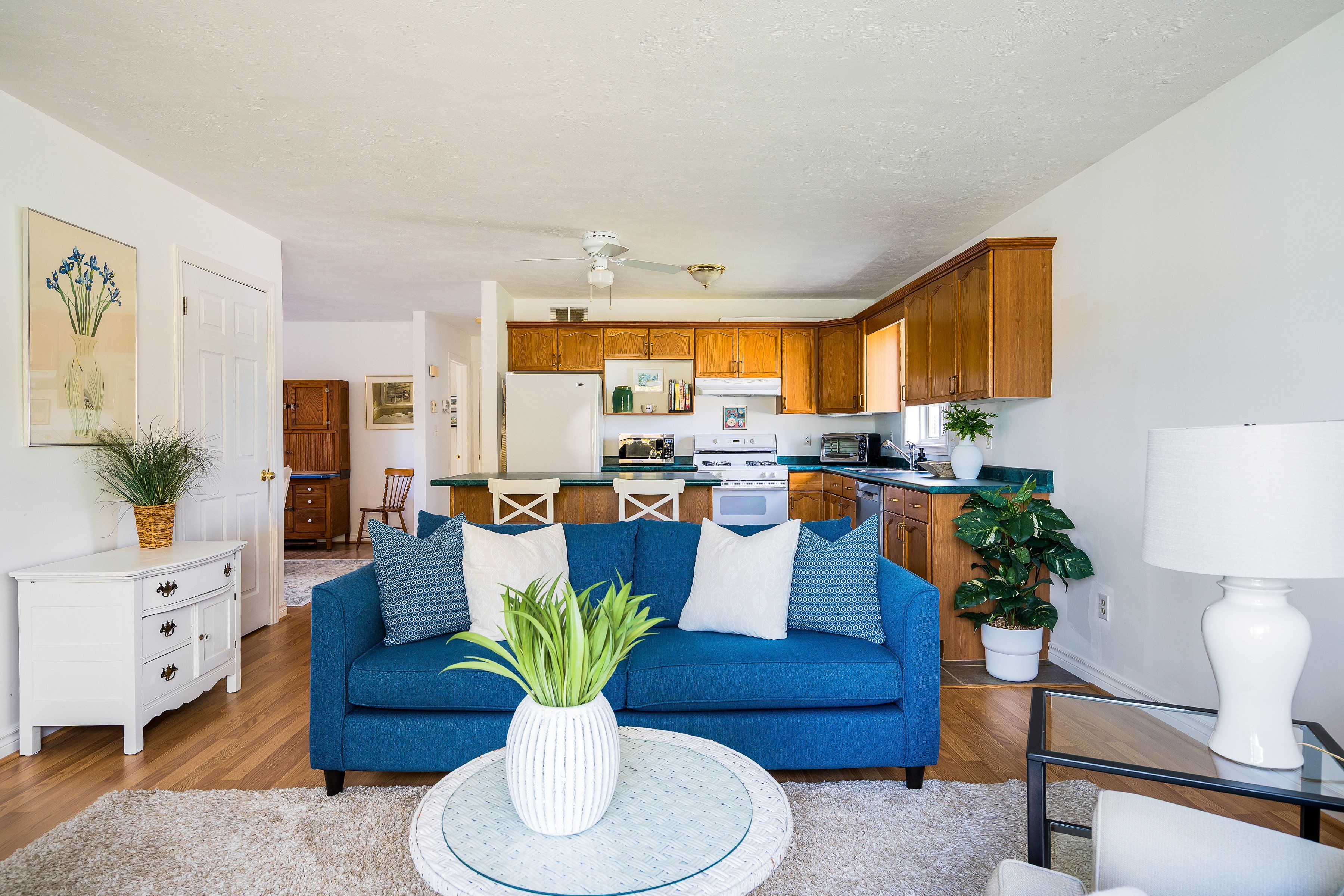 • Spacious open-concept main level with light-filled living and dining areas.