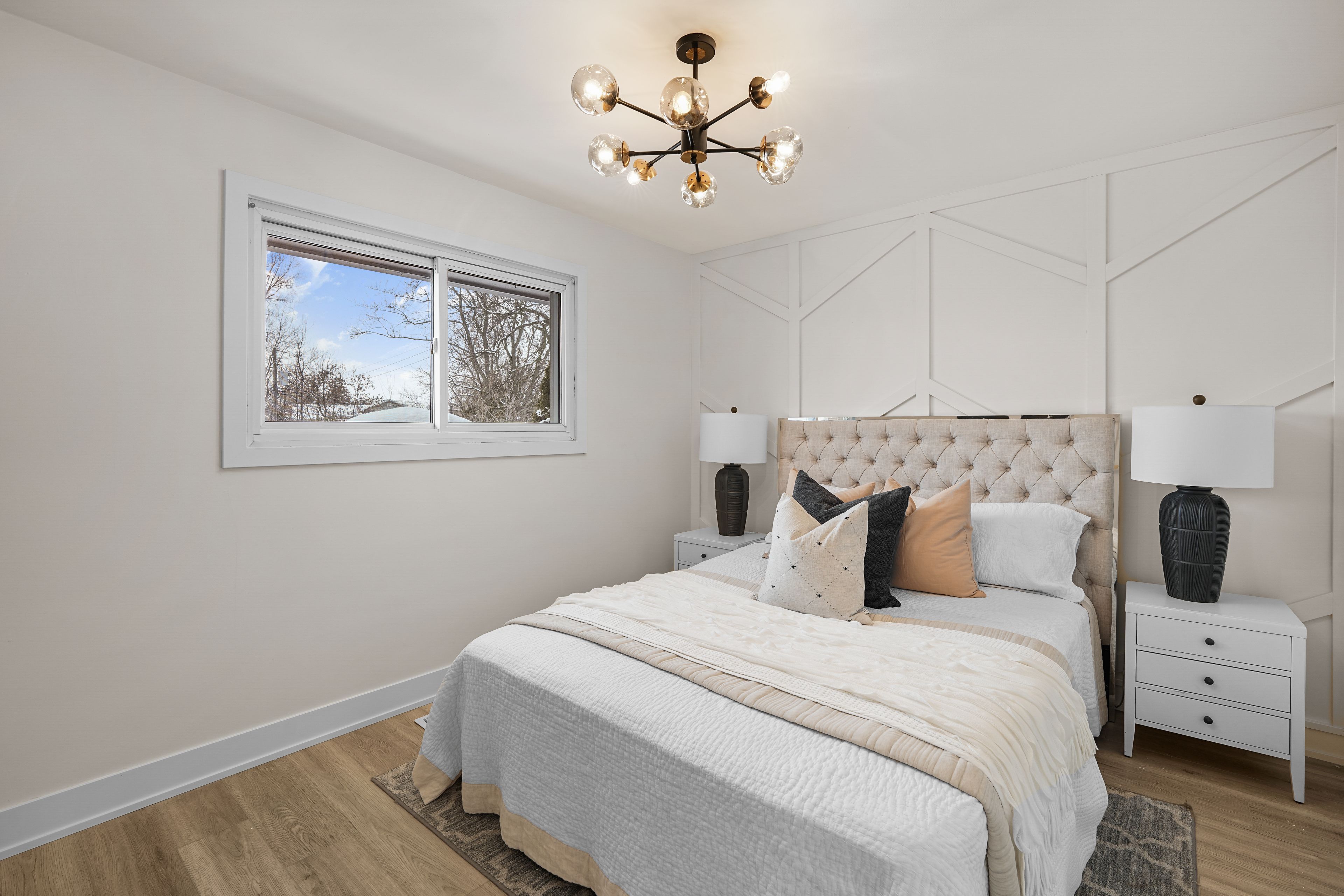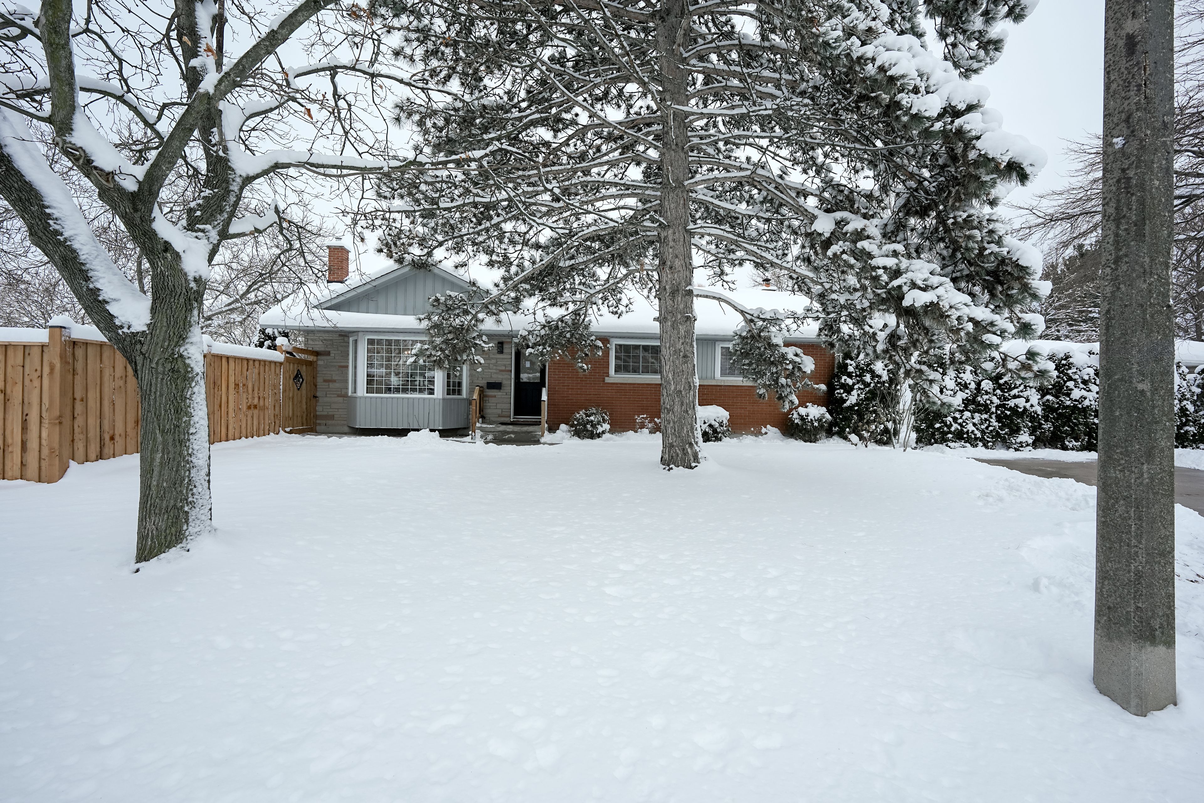 This luxurious boutique bungalow featuring 3+2 bedrooms and 2 bathrooms, with a fully finished basement, has just hit the market in a sought-after neighbourhood of st. Catharines. This gorgeous, fully upgraded home boasts brand-new high-end renovations and sits on a large, spacious corner lot with brand-new fencing. From the moment you step inside, you will fall in love with the upgrades throughout. The main level offers a very spacious open-concept layout, high-end tile flooring in the foyer and kitchen, luxury vinyl flooring, and upgraded chandeliers and light fixtures throughout. The bright and inviting living room features a stunning accent wall with an electric fireplace and is filled with natural light all day long. The heart of the home is the beautiful two-toned kitchen, complete with ample cabinetry, quartz countertops and backsplash, a waterfall island, brand-new stainless steel appliances, and elegant gold accents. The dining room provides direct access to the fully fenced backyard and a small deck. The upper level includes three bedrooms, with the spacious primary bedroom showcasing a stylish accent wall. The luxurious 4-piece bathroom features floor-to-ceiling high-end tile, a brand-new quartz vanity, and a new tub and tiled shower. The fully finished basement, with a separate entrance, offers two spacious bedrooms, a large recreation room, a luxurious 3-piece bathroom, and a beautiful wet bar with a feature wall, adding a premium touch to the space. The basement also has excellent potential to be converted into an in-law suite if desired. Recent upgrades include a new roof (2019), furnace (2019), owned hot water tank, and improved attic insulation. This exceptional location offers tennis courts and a community soccer field directly across the street, with close proximity to the bruce trail and twelve mile creek trails, the pen centre, and brock university.