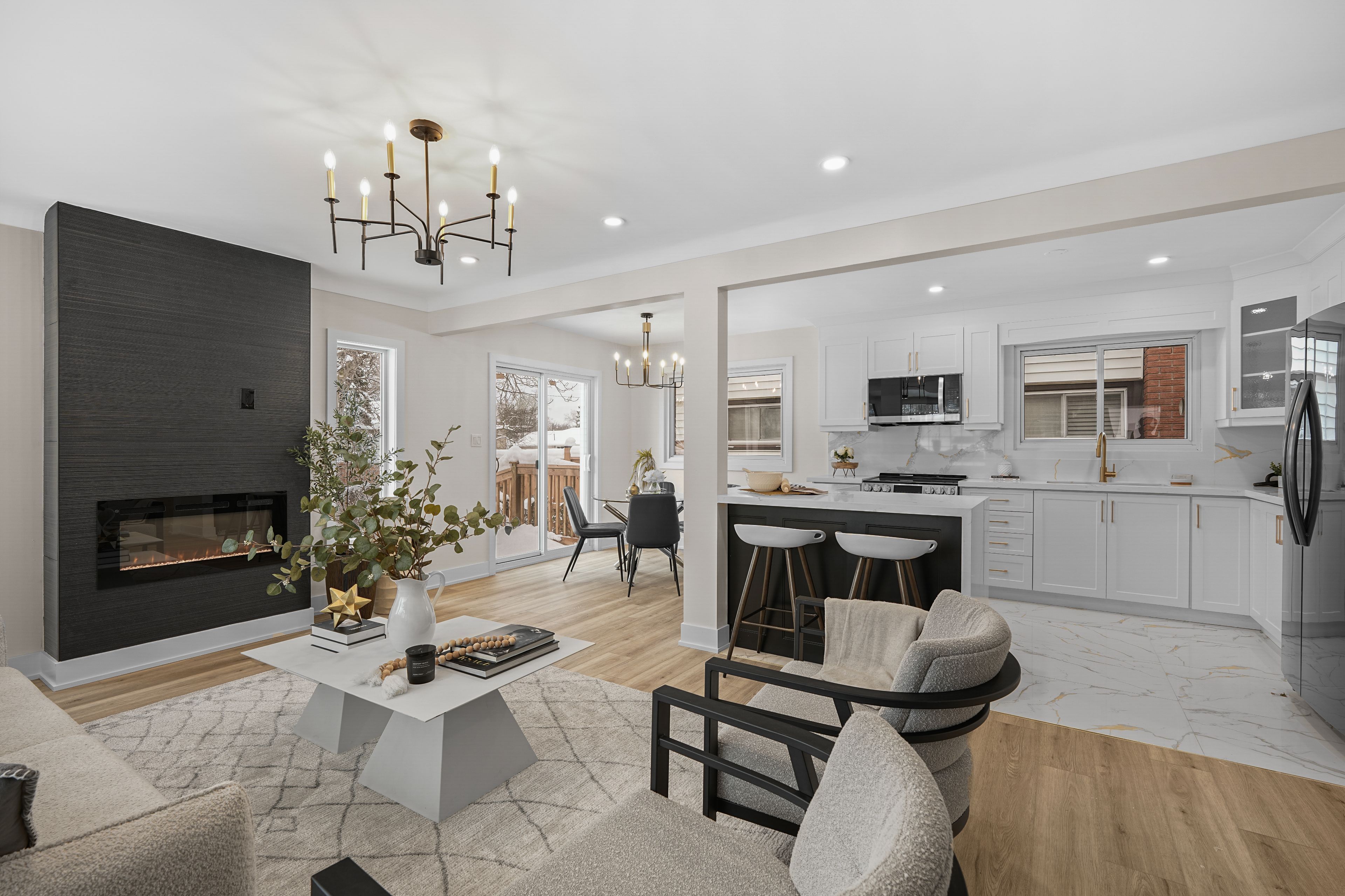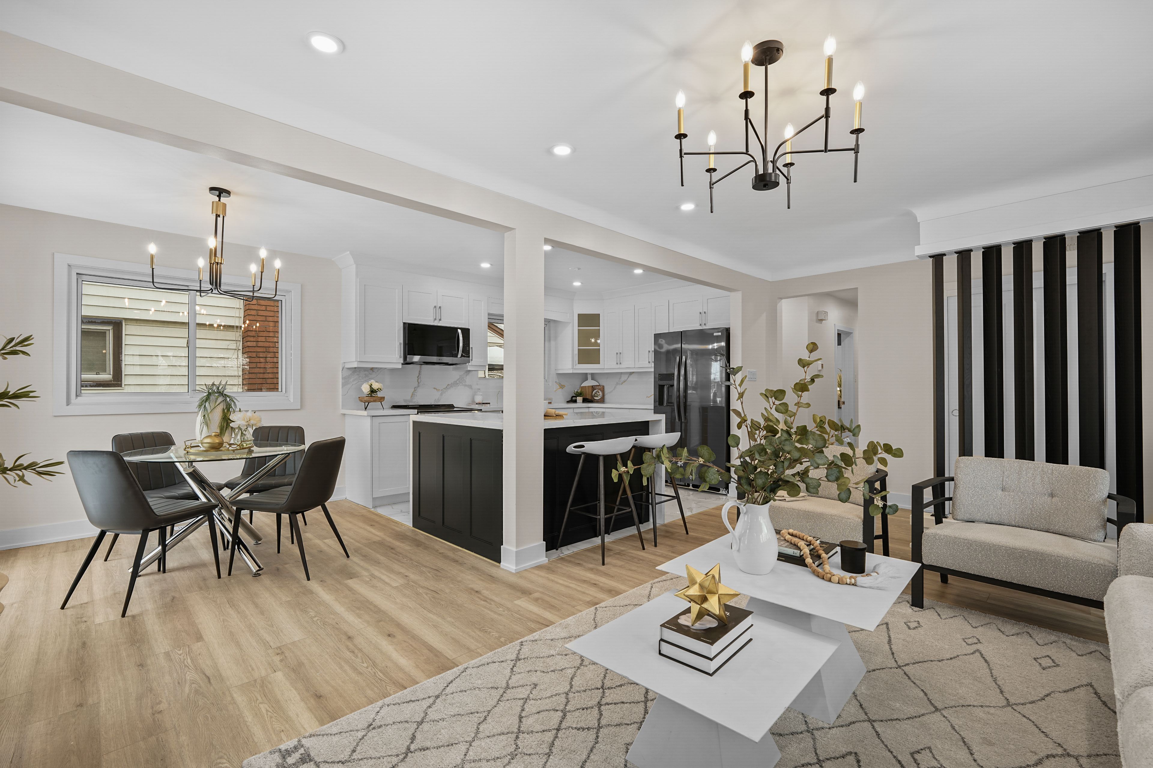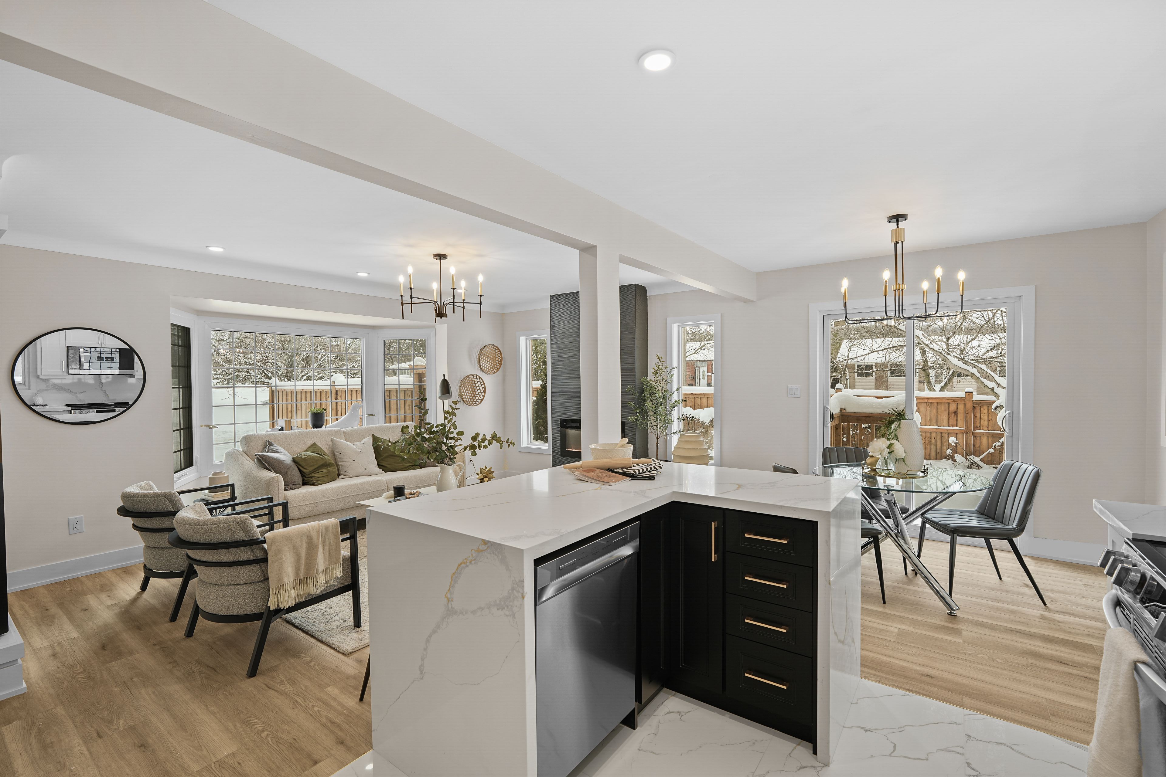 • Spacious open-concept layout with high-end renovations and abundant natural light.