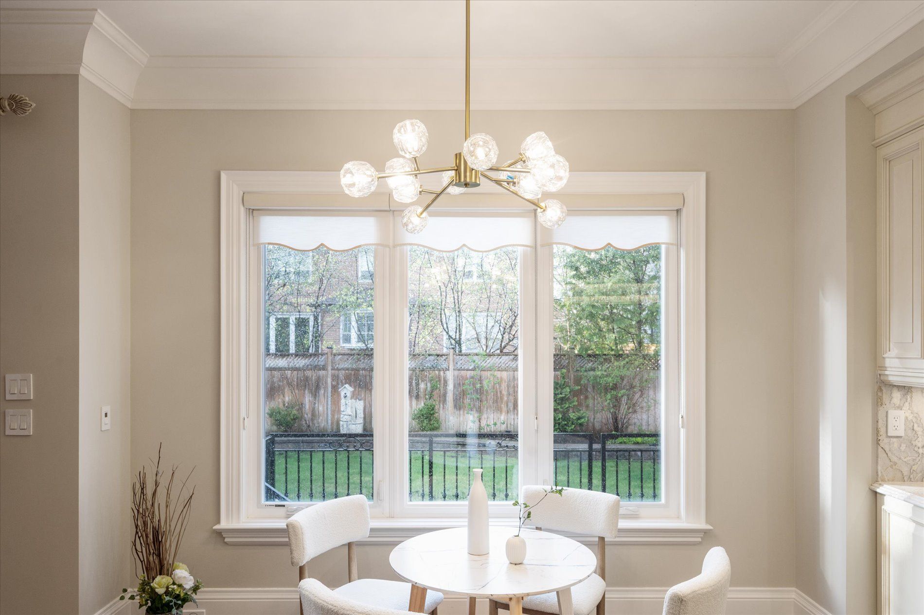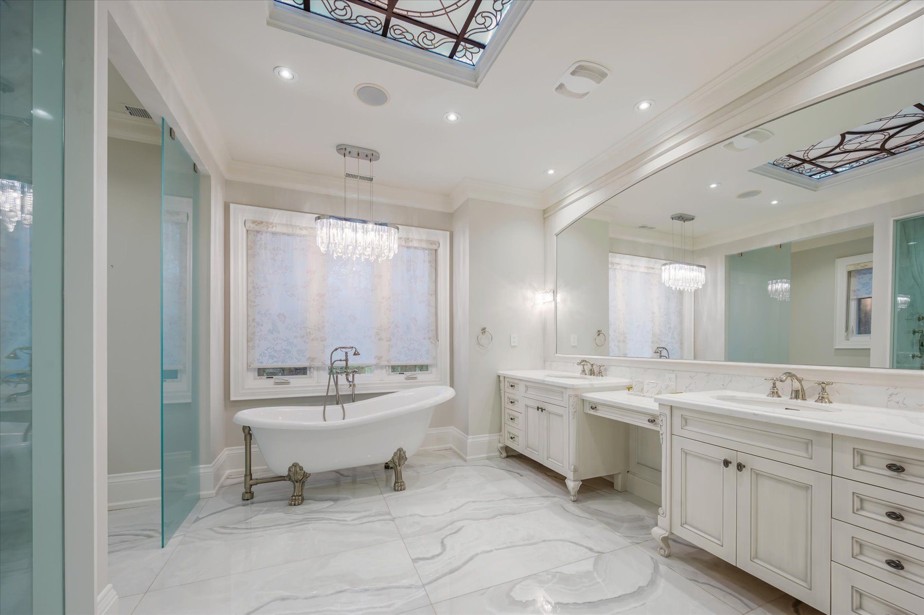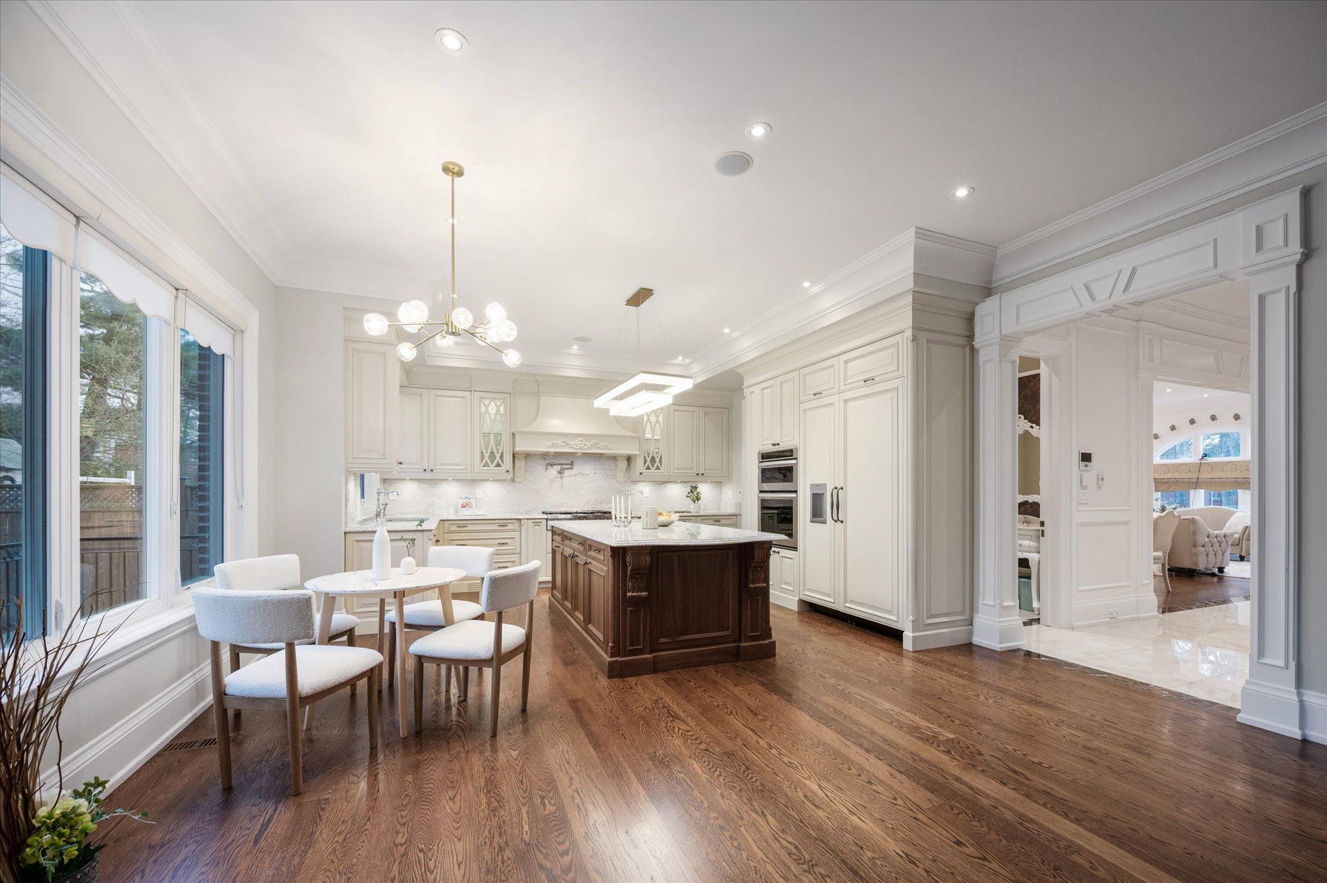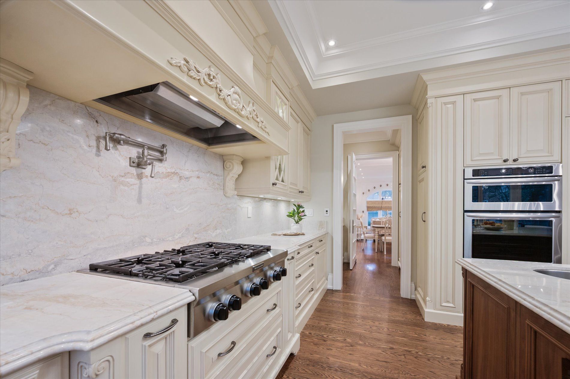 This stunning luxury home offers a meticulously designed multi-level layout, where no detail has been overlooked. Situated on a quiet street near top schools, parks, and shopping, it features a chefs dream kitchen with a butlers pantry, pot-filler faucet, 6-gas stove, paneled fridge, wall oven/microwave, dishwasher, and a spectacular skylit ceiling. The spacious interiors boast 10-ft main-floor ceilings, heated floors (basement & all ensuite washrooms), a combined family/playroom, extensive wood trim, exotic marble finishes, and elegant designer lighting. Additional luxuries include a hotel-style wet bar, built-in bose sound system, cvac, 2 furnaces, a steam humidifier, gas fireplace, washer/dryer, stylish light feature walls, and designer window treatmentstruly a masterpiece of modern living