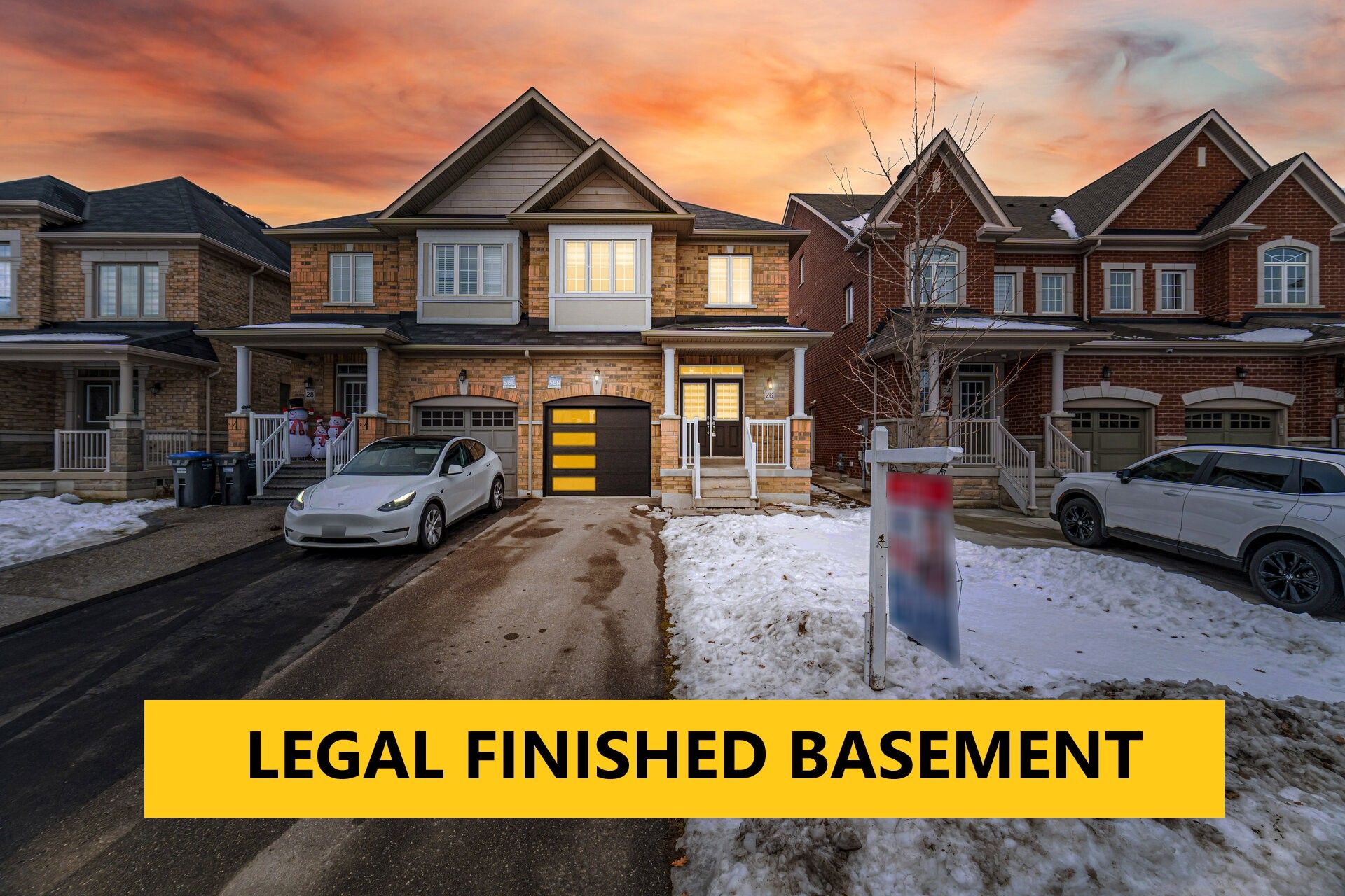 !!! Legal finished 2-bedrooms basement semi-detached with separate entrance & permit by the town of caledon !!! Approx. 1749 sq ft as per mpac. Executive 3-bedrooms semi-detached home with elegant brick elevation in prestigious southfields village caledon!! Features double-door main entry & 9-ft high ceilings on the main floor. Upgraded family-size kitchen with quartz countertops & quartz matching backsplash & brand new stainless steel appliances, plus a walk-out to the backyard from the breakfast area! Spacious primary bedroom with 4-piece ensuite & walk-in closet. All three bedrooms are generously sized. **carpet free house** no sidewalk driveway for extra parking. [3 cars parking] *whole house is professionally painted [2025] newly luxury constructed legal finished basement w/separate entrance, kitchen, 2 bedrooms & spa kind full washroom [2025] [town of caledon permit attached] brand new led pot lights throughout. Walking distance to schools and parks, and just steps to etobicoke creek. Shows 10/10! Must view house*