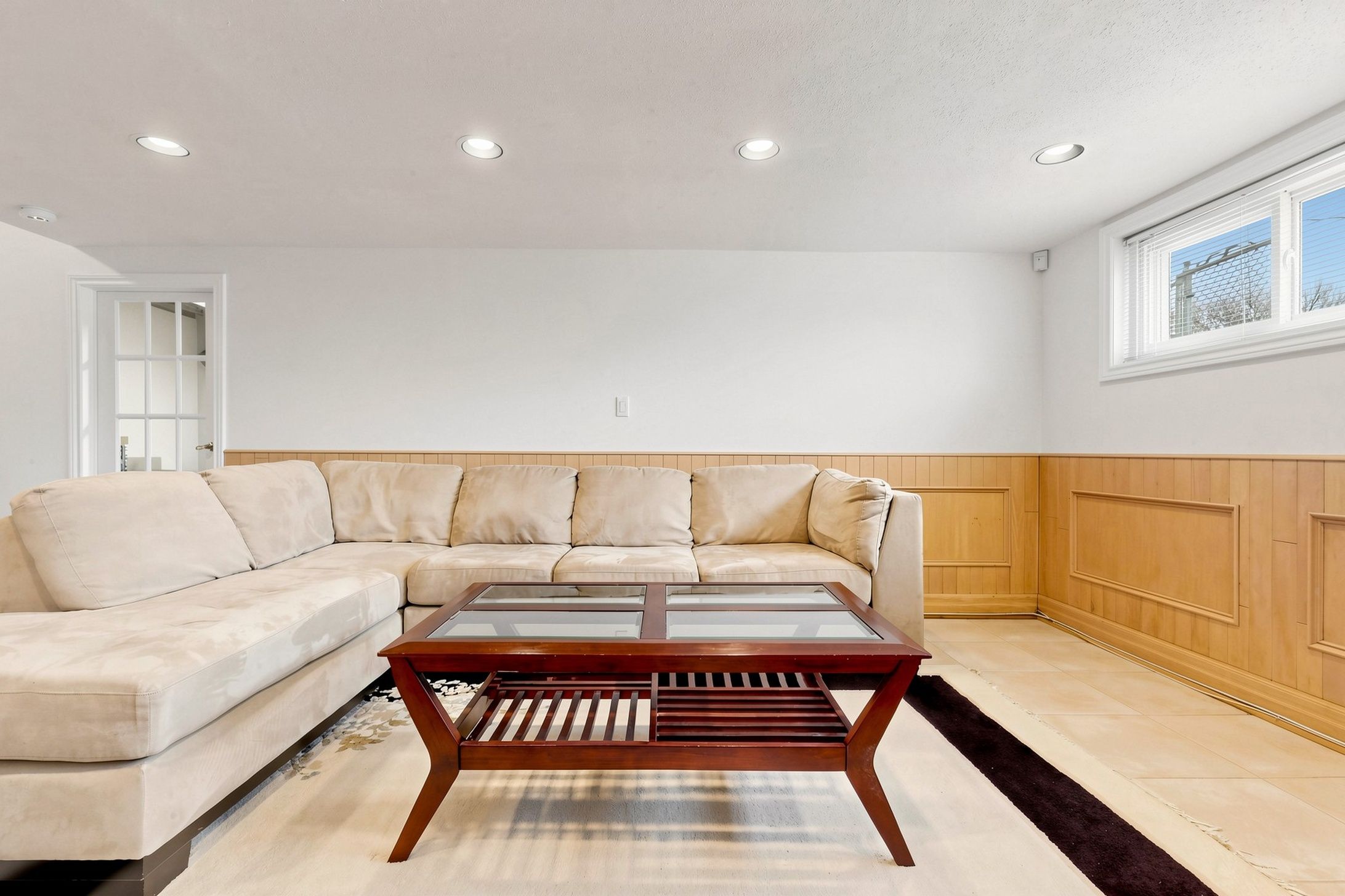 • Finished basement offers extra living space with maple wainscoting and storage options.