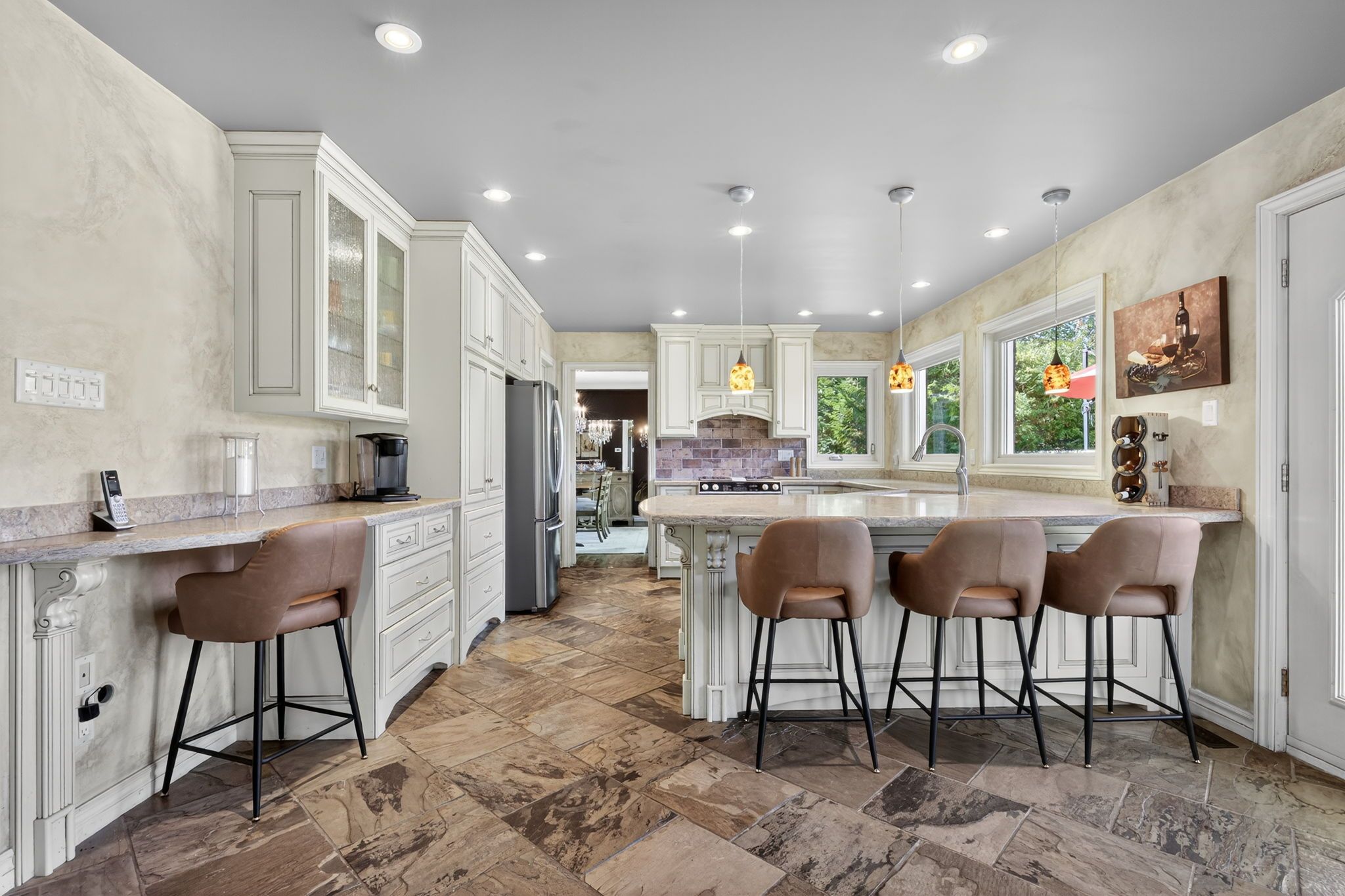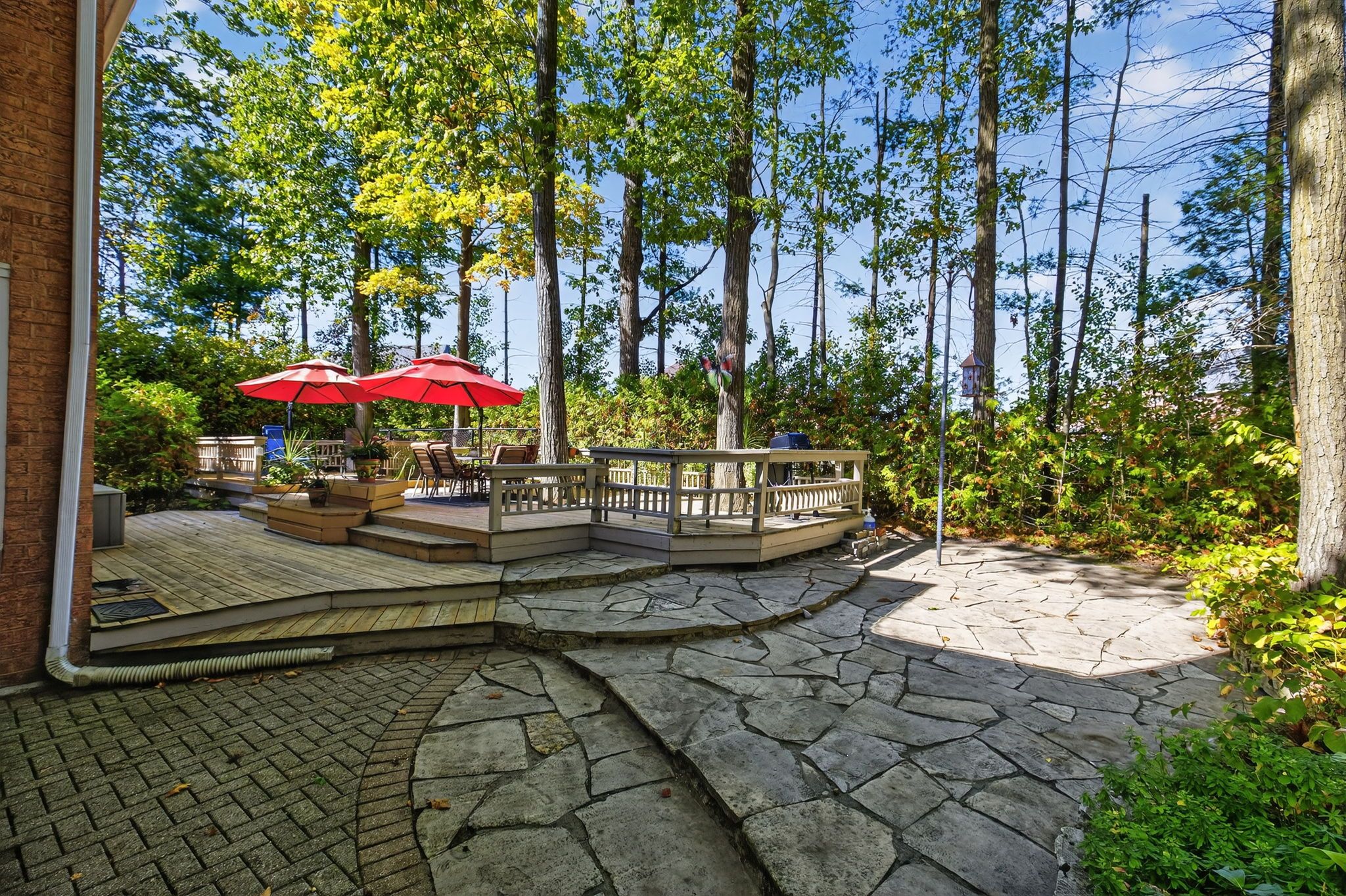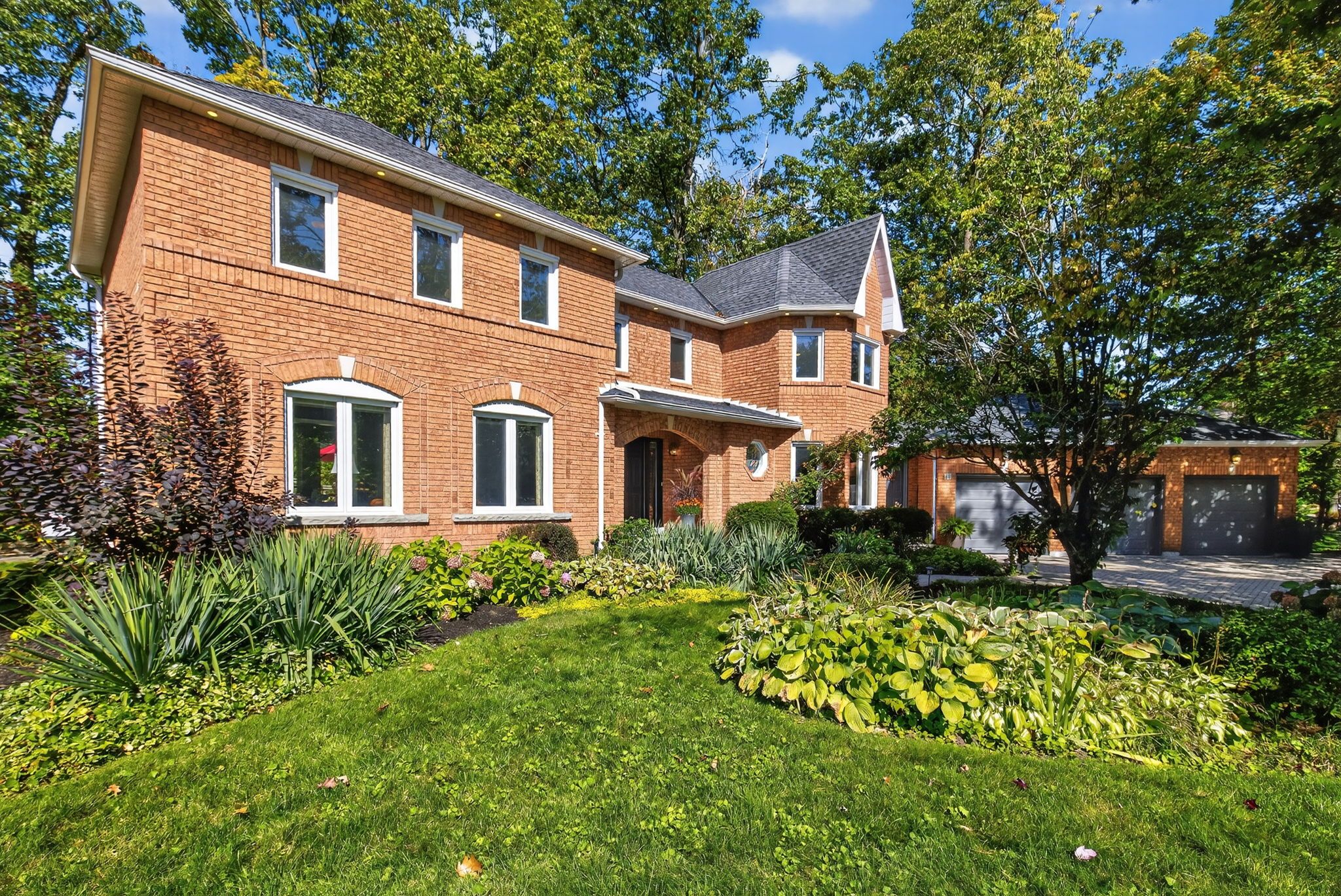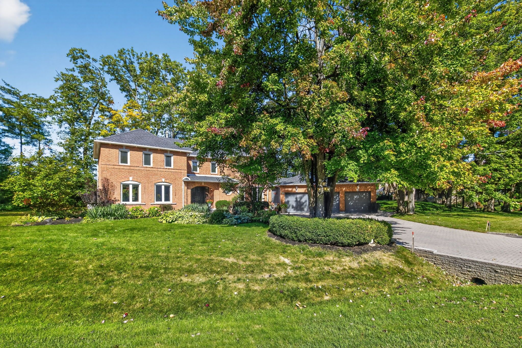 Beautiful stonegate estate home set on a premium 1/2 acre, mature treed lot on a quiet cul-de-sac in a sought after executive neighbourhood. Originally designed with four upper bedrooms, one has been thoughtfully transformed into a luxurious dressing room for the spacious primary suite, easily converted back if desired. The primary bedroom also features a generous ensuite with a stunning steam shower. The upper level offers two additional bedrooms with adjacent bathrooms. A bright, eat-in kitchen overlooks the inviting family room with fireplace and provides a walkout to a private flagstone patio and expansive deck, perfect for entertaining. The main floor also includes a dedicated office, laundry room, formal dining room, and a welcoming living room with gas fireplace. Offering 3,067 sq ft above grade and 4,058 sq ft of finished living space on all levels, the professionally finished basement includes a 600 bottle wine cooler, recreation and games areas, a studio or potential bedroom, workshop, storage, and a cedar closet. Quality finishes throughout include hardwood, slate, quartz, pot lights, crown mouldings, built-ins, and wainscoting, all part of a thoughtfully renovated layout. Exterior highlights include a unistone triple driveway, triple car garage, soffit lighting, and inground sprinklers. Updates include eavestroughs with leaf guards, quartz counters and sink, dryer, microwave, windows, garage doors, and main deck boards. Set on a wide, beautiful lot offering privacy and separation from neighbours, great curb appeal, shows well.