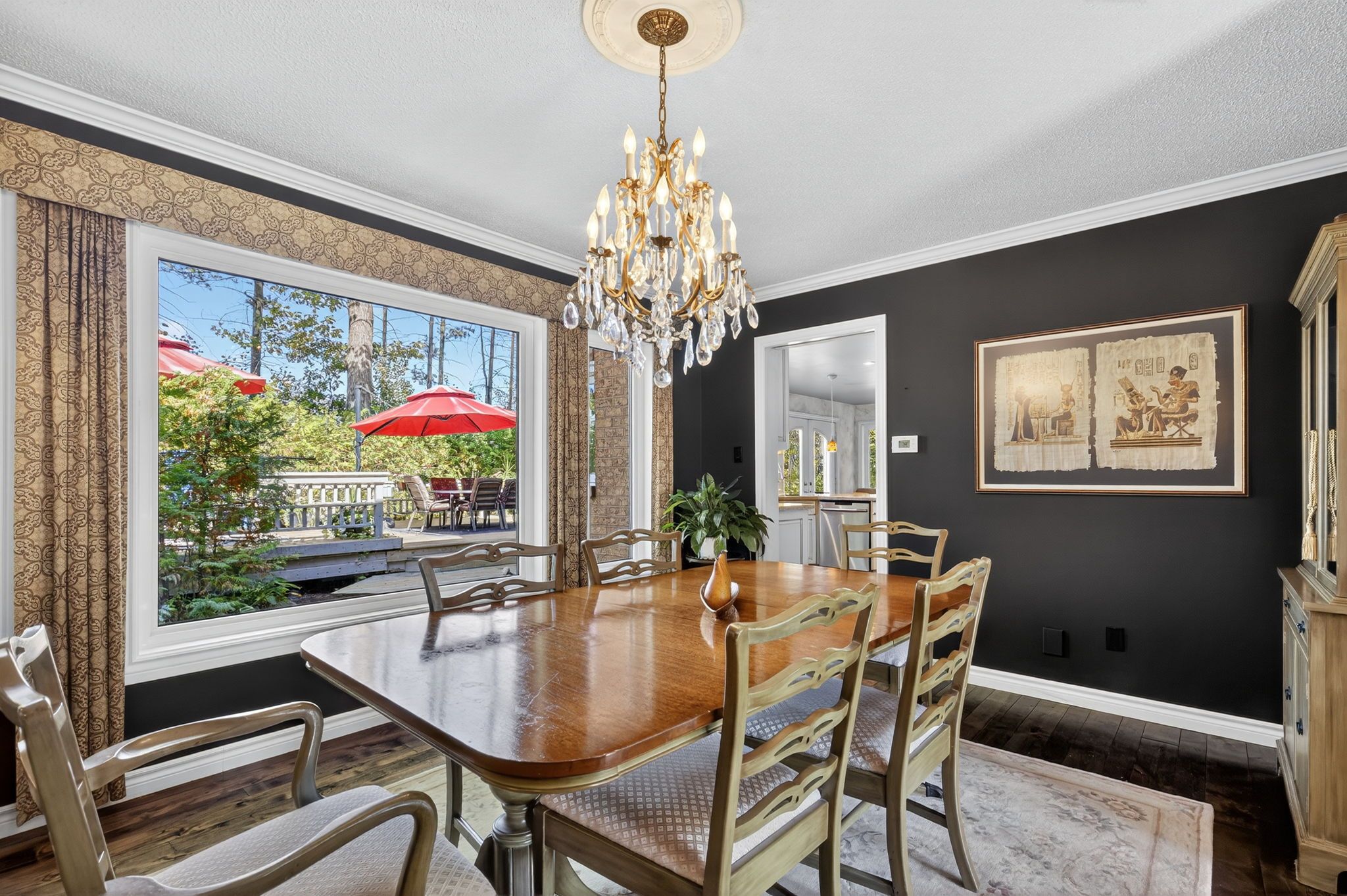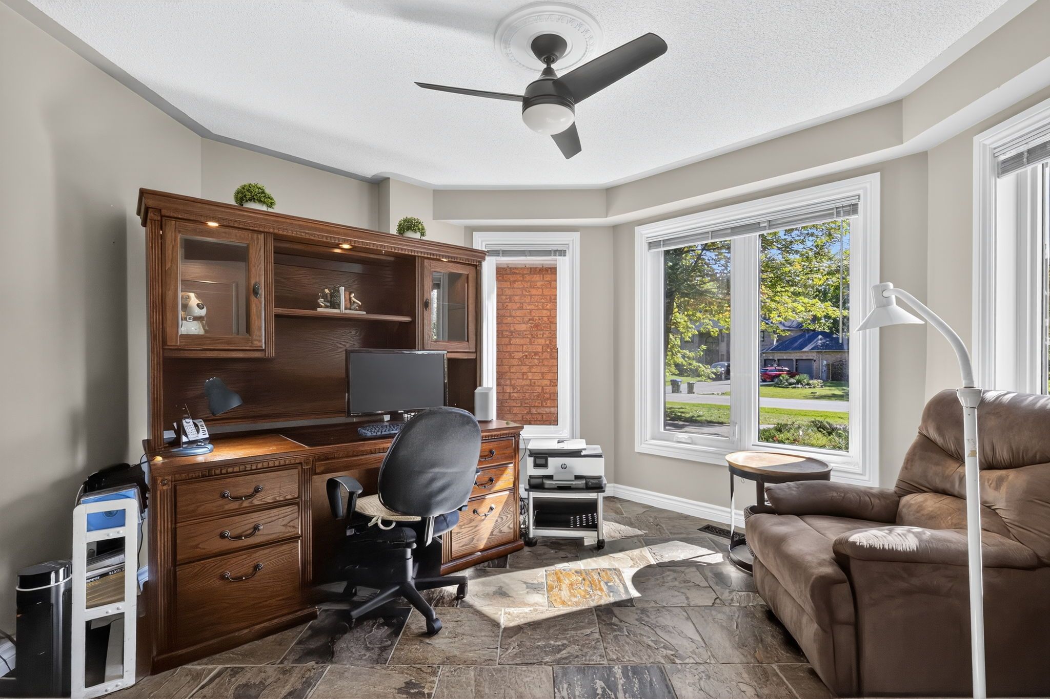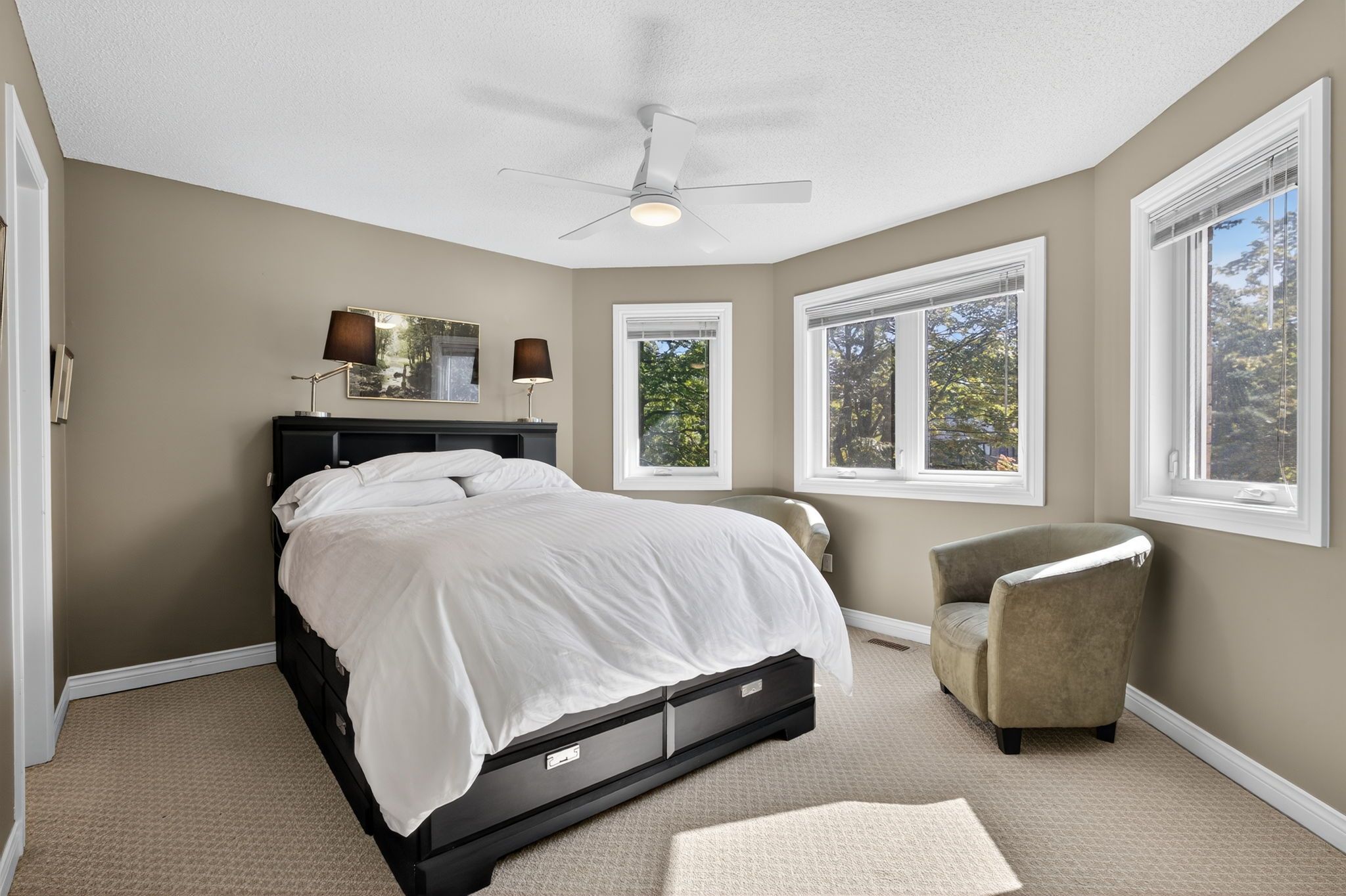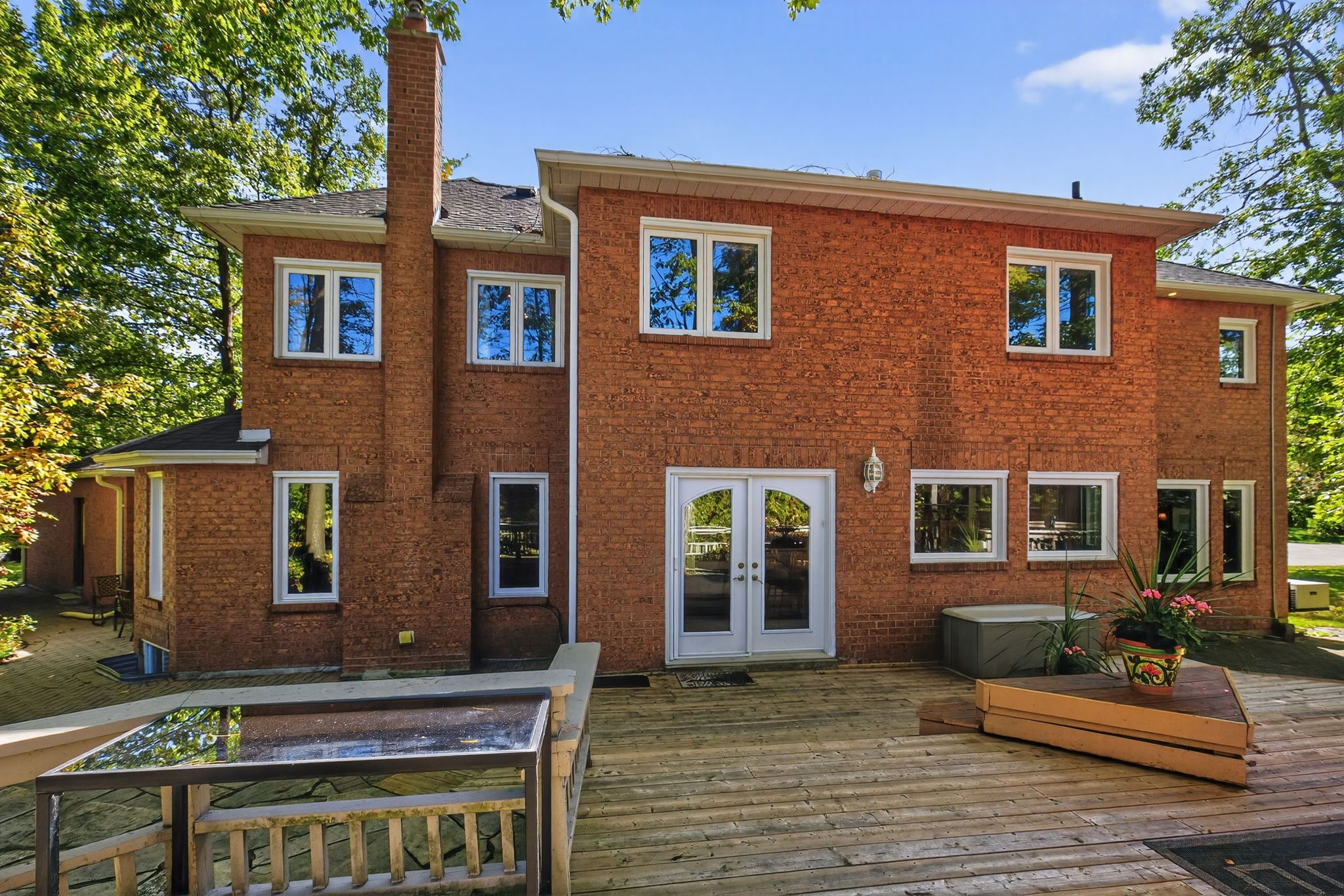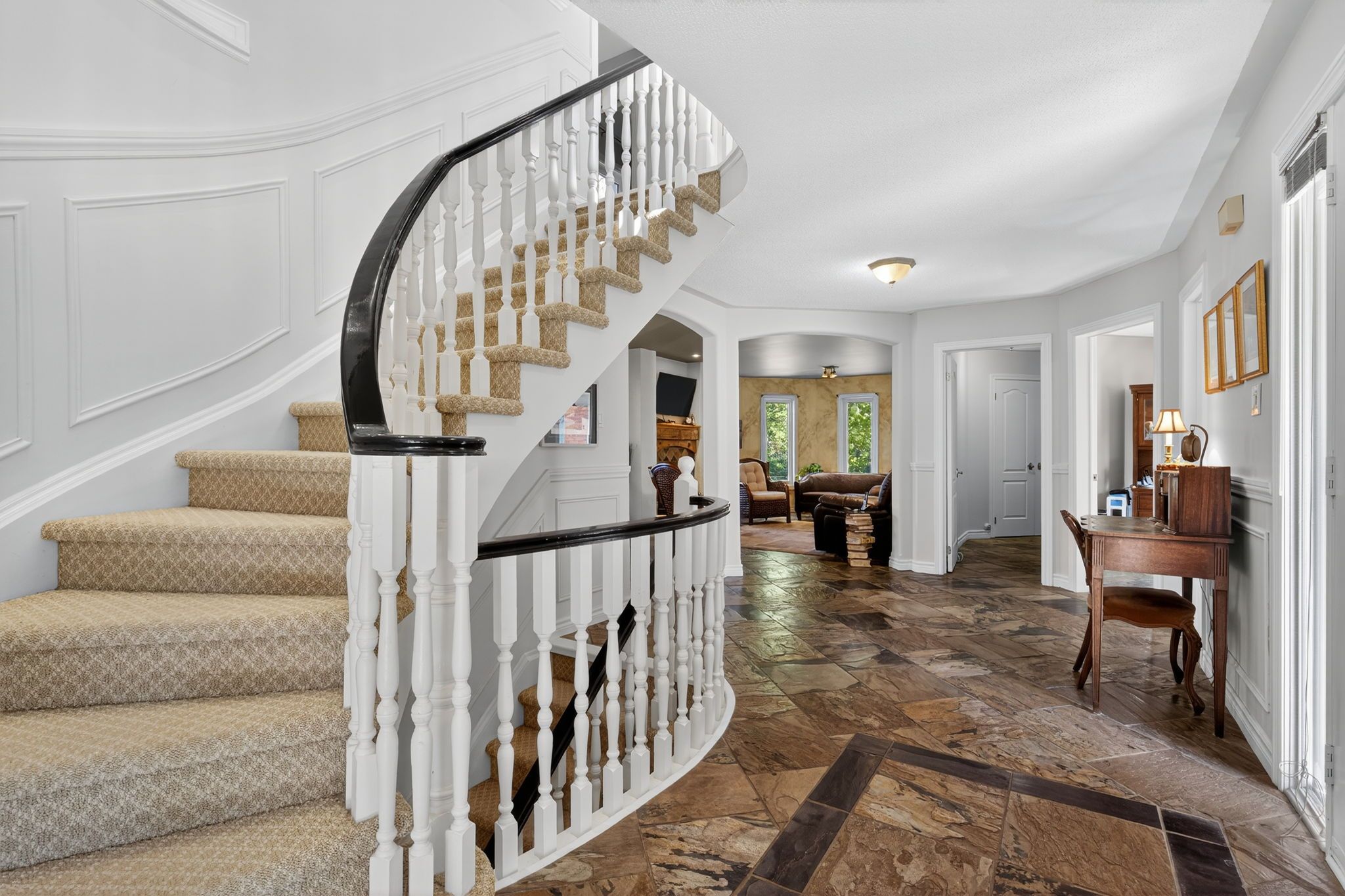 Beautiful stonegate estate home set on a premium 1/2 acre, mature treed lot on a quiet cul-de-sac in a sought after executive neighbourhood. Originally designed with four upper bedrooms, one has been thoughtfully transformed into a luxurious dressing room for the spacious primary suite, easily converted back if desired. The primary bedroom also features a generous ensuite with a stunning steam shower. The upper level offers two additional bedrooms with adjacent bathrooms. A bright, eat-in kitchen overlooks the inviting family room with fireplace and provides a walkout to a private flagstone patio and expansive deck, perfect for entertaining. The main floor also includes a dedicated office, laundry room, formal dining room, and a welcoming living room with gas fireplace. Offering 3,067 sq ft above grade and 4,058 sq ft of finished living space on all levels, the professionally finished basement includes a 600 bottle wine cooler, recreation and games areas, a studio or potential bedroom, workshop, storage, and a cedar closet. Quality finishes throughout include hardwood, slate, quartz, pot lights, crown mouldings, built-ins, and wainscoting, all part of a thoughtfully renovated layout. Exterior highlights include a unistone triple driveway, triple car garage, soffit lighting, and inground sprinklers. Updates include eavestroughs with leaf guards, quartz counters and sink, dryer, microwave, windows, garage doors, and main deck boards. Set on a wide, beautiful lot offering privacy and separation from neighbours, great curb appeal, shows well.