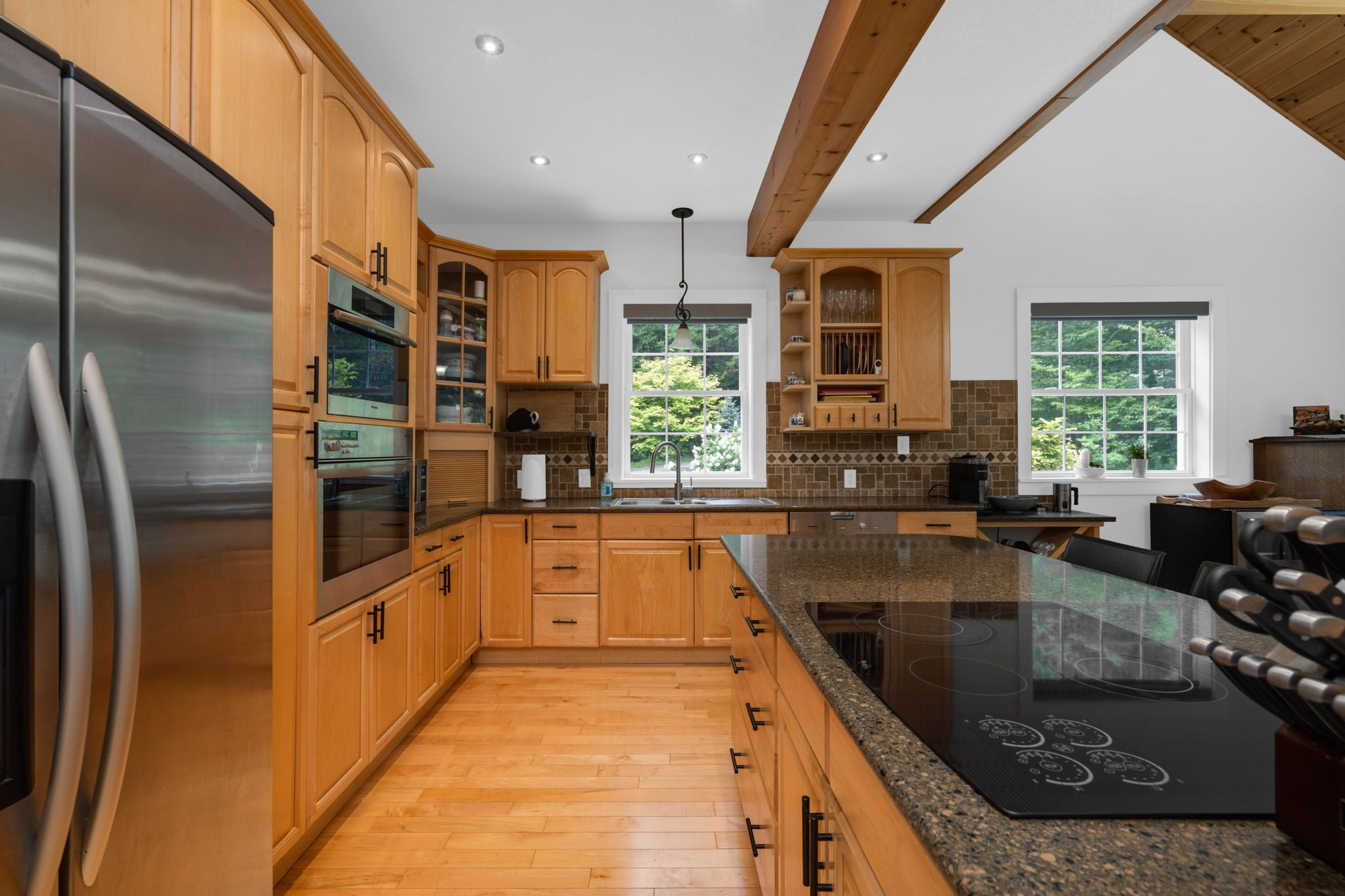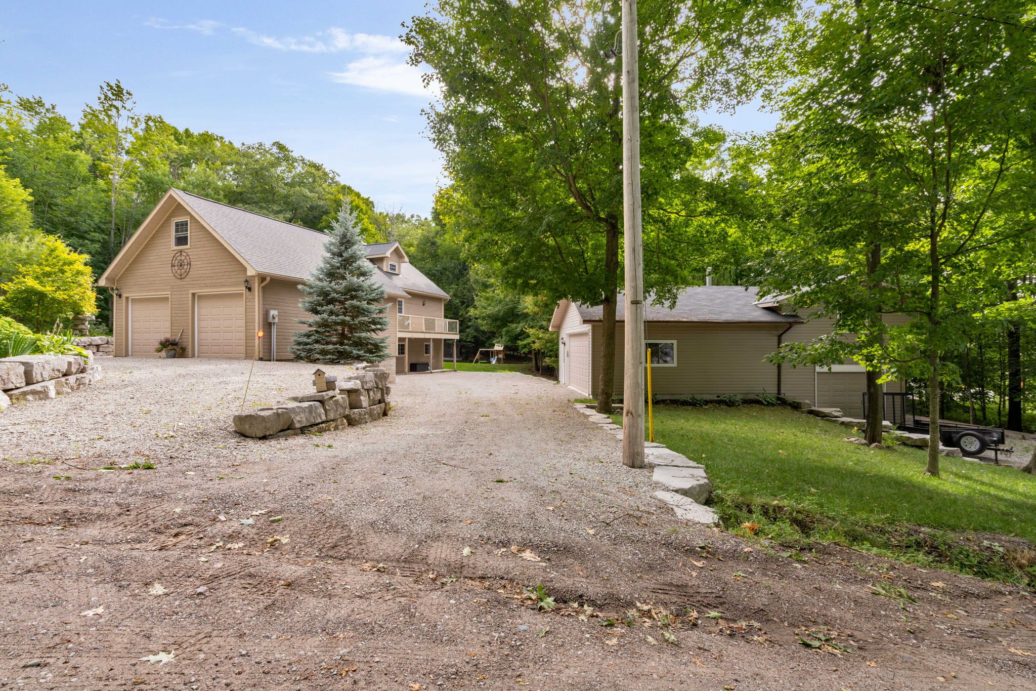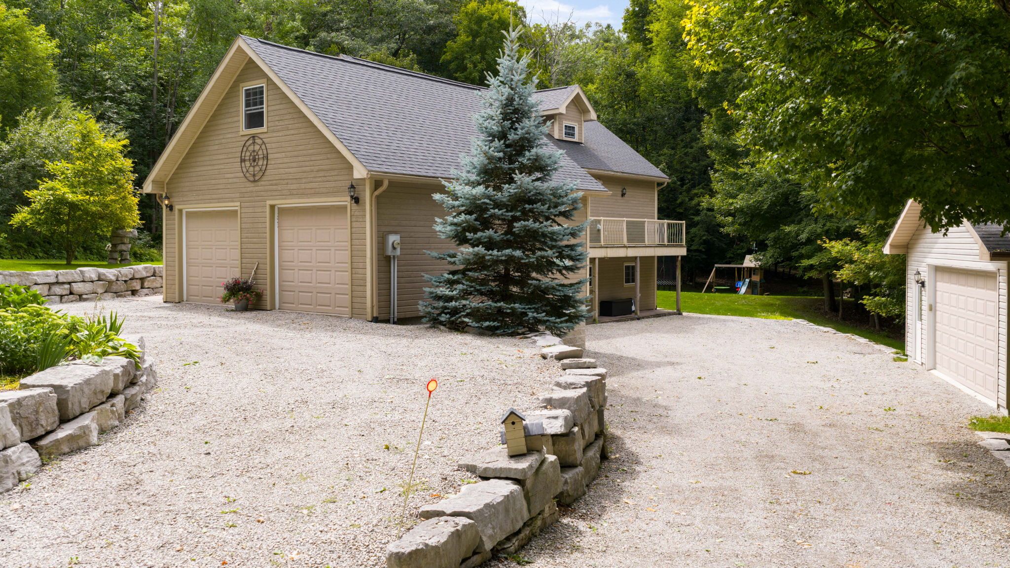 Welcome to 26 eleventh st in midland, situated in an incredible park-like setting with your own pond, surrounded by mature trees on over 2 acres. Minutes from historic shops and dining in downtown midland, from the shore of georgian bay, and an abundance of all season trails for the nature enthusiasts. This residence offers architectural flare and unique finishes throughout - warmth of natural wood details, natural light via upgraded window package - attention to form and design at every turn. Large family? Home business? Extended family? Frequent guests? There is no shortage of functional living space with 6 bedrooms, 4 bathrooms, 2 kitchens, 2 laundry rooms, loft space above garage, above grade lower level, multiple entrances and an abundance of garage space and parking. Open concept floor plan - kitchen, living room, dining room. Custom kitchen features granite countertops, cooktop, double wall oven, food steamer, s/s appliances. Dining room large enough for hosting festive meals. Great room with soaring 15' tongue/groove ceilings, feature wall with gas fireplace and stone mantle. Main level walk out to beautiful deck, privacy offered by the mature tree canopy. Convenience of primary bedroom on the main level with stunning renovated 5pc ensuite - glass walled shower, double sink vanity, quartz countertop, heated floor. Look up - incredible loft space provides additional living room, bedrooms, bathroom - complete with upper level balcony. Full finished lower level (new lighting) with walk out/separate entrance - bedrooms, kitchen, laundry, rec room - set up perfectly for multigenerational family or guests looking for some private space. Above grade windows bathe this additional living space with natural light. Gather around the gas fireplace to warm up on cool evenings. Step outdoors to appreciate five garage bays, an abundance of parking for cars, work vehicles, rvs and more. Additional 1 acre of beautiful, mature, forested property is included!