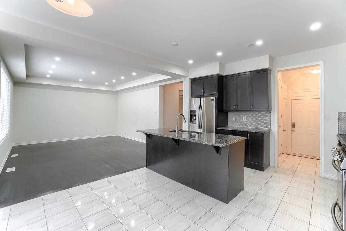 • Large kitchen with a modern island and upgraded granite countertops.