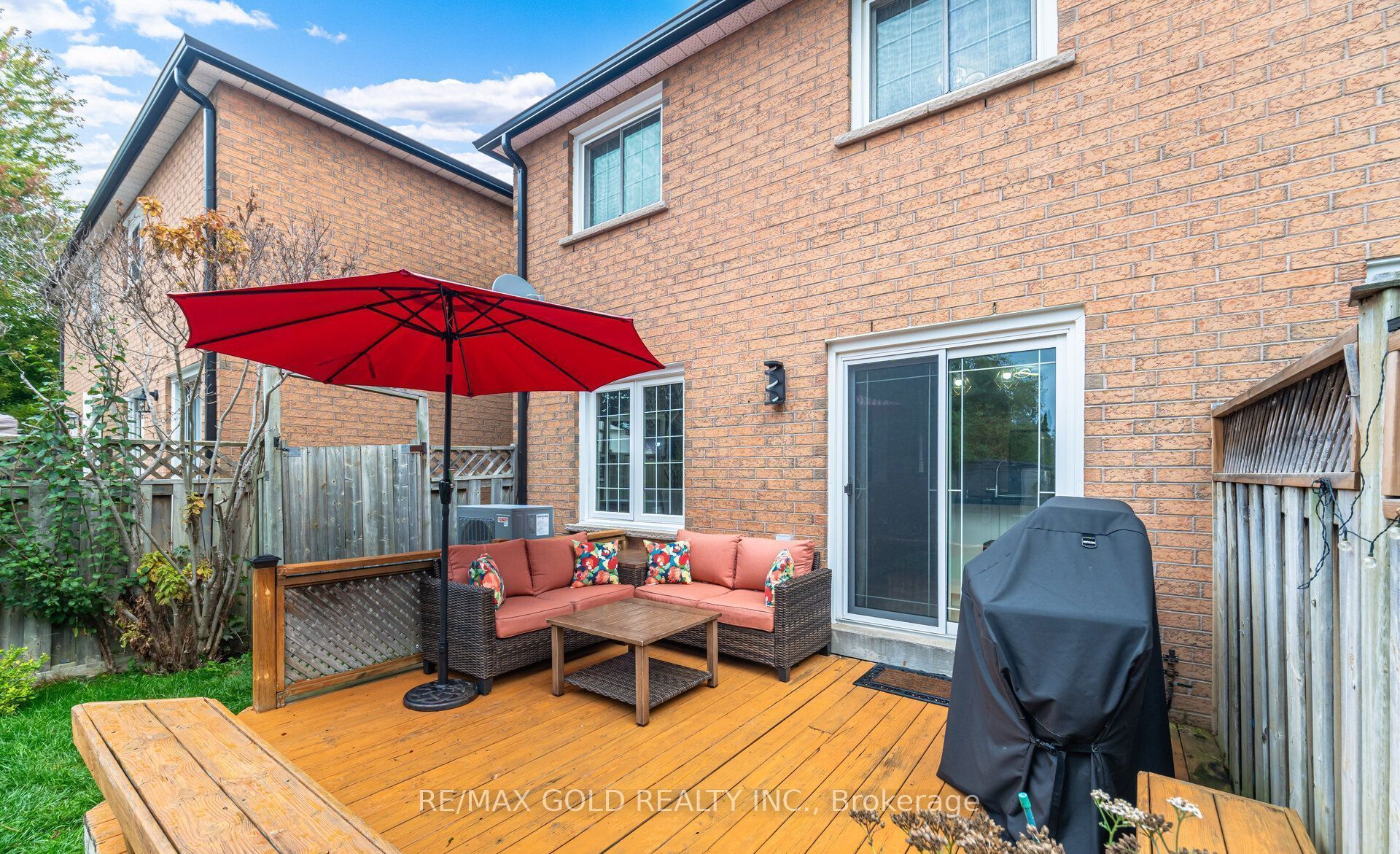 • Private fenced backyard with wood deck, great for entertaining and relaxation.