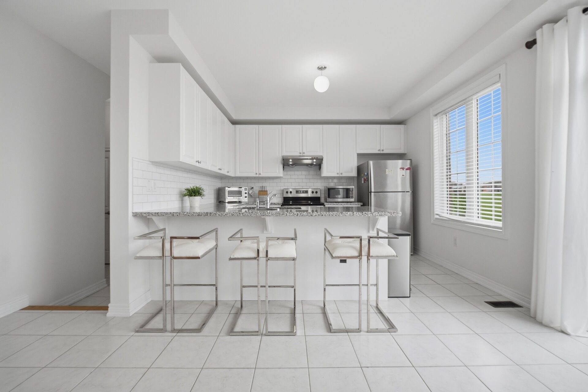 • Spacious kitchen featuring stainless steel appliances and granite countertops.