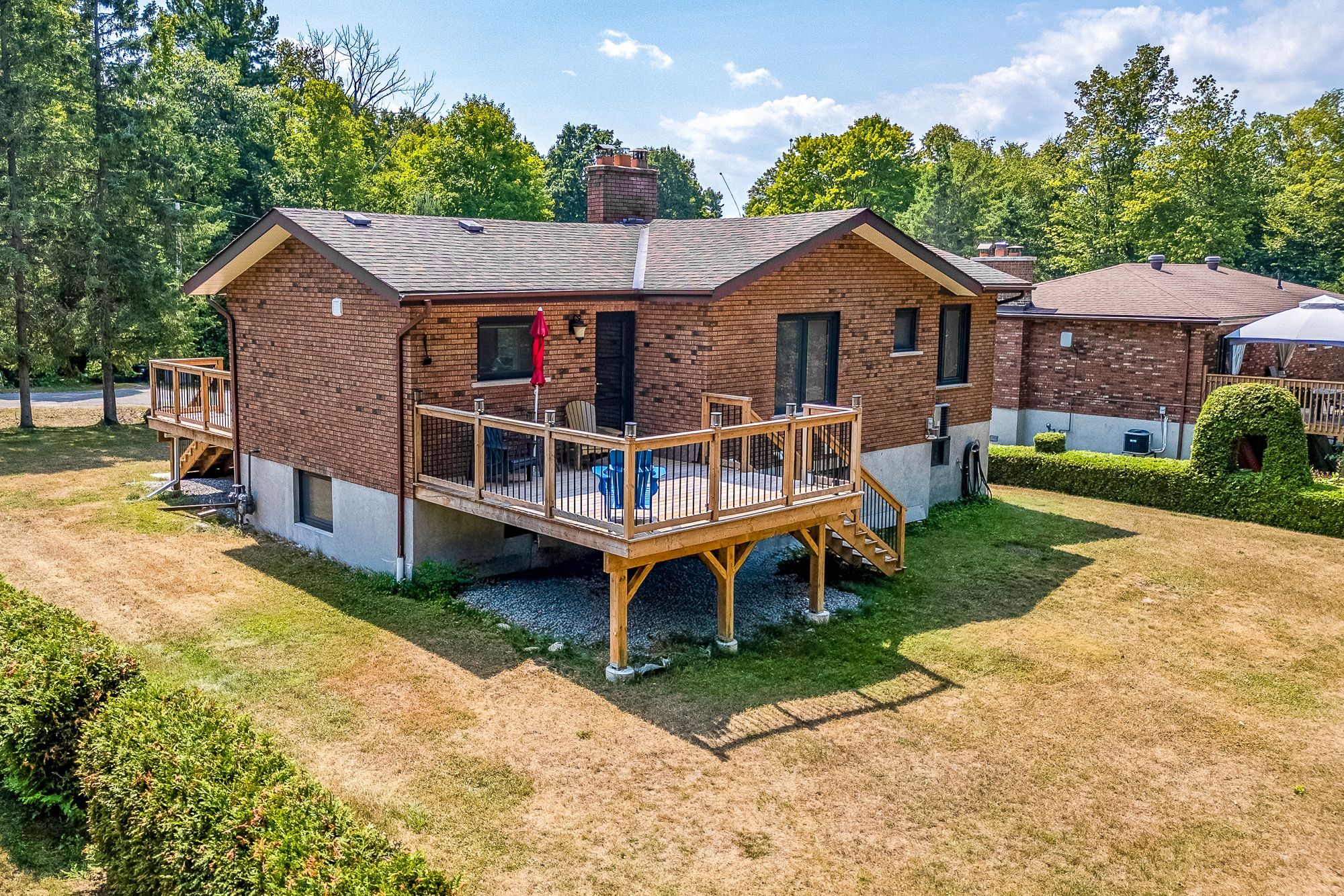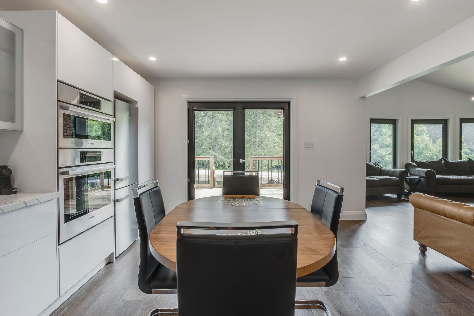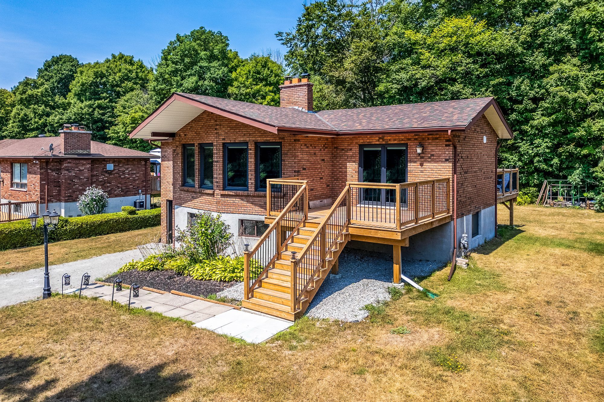 Welcome to this beautifully updated 4-bedroom, 2-bath home in the sought-after georgian highlands community, just steps from the shores of georgian bay. Nestled on a generous lot with a backyard pathway leading to the water, this property combines modern comfort with a prime location for year-round living or a getaway retreat. Inside, you'll find thoughtfully renovated spaces with high-end finishes throughout. The kitchen features quartz countertops, a wolf induction cooktop, built-in microwave and convection oven, and a miele refrigerator, while the updated baths bring a sleek, modern feel. European triple-glazed windows and doors (2022) offer exceptional energy efficiency, uv protection, soundproofing, and thermal insulation. Additional upgrades include engineered hardwood flooring, a forced air gas furnace and central air (2022), on-demand hot water, and the convenience of municipal water. The layout is ideal for flexible living. The upper level hosts 3 bedrooms and a renovated 3-piece bath, while the ground-level walkout includes a bedroom, modern 3-piece bath, and rec room - perfect for extended family or guests. An attached single garage provides convenience. As part of the georgian highlands community, new owners can apply for association membership, which grants access to private beaches, parks, and scenic pathways just beyond your backyard. Located only 90 minutes from the gta and a short drive to penetanguishene and midland, you'll enjoy easy access to shopping, dining, live theatre, museums, golf, and more. This move-in ready home blends modern upgrades with the natural beauty of georgian bay - ready to be enjoyed for years to come.