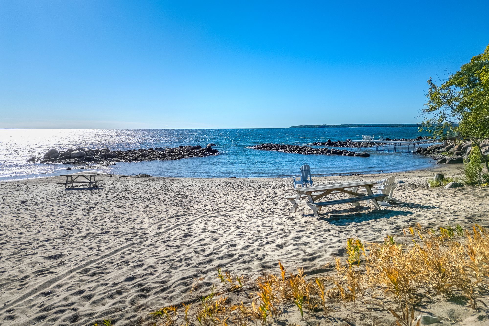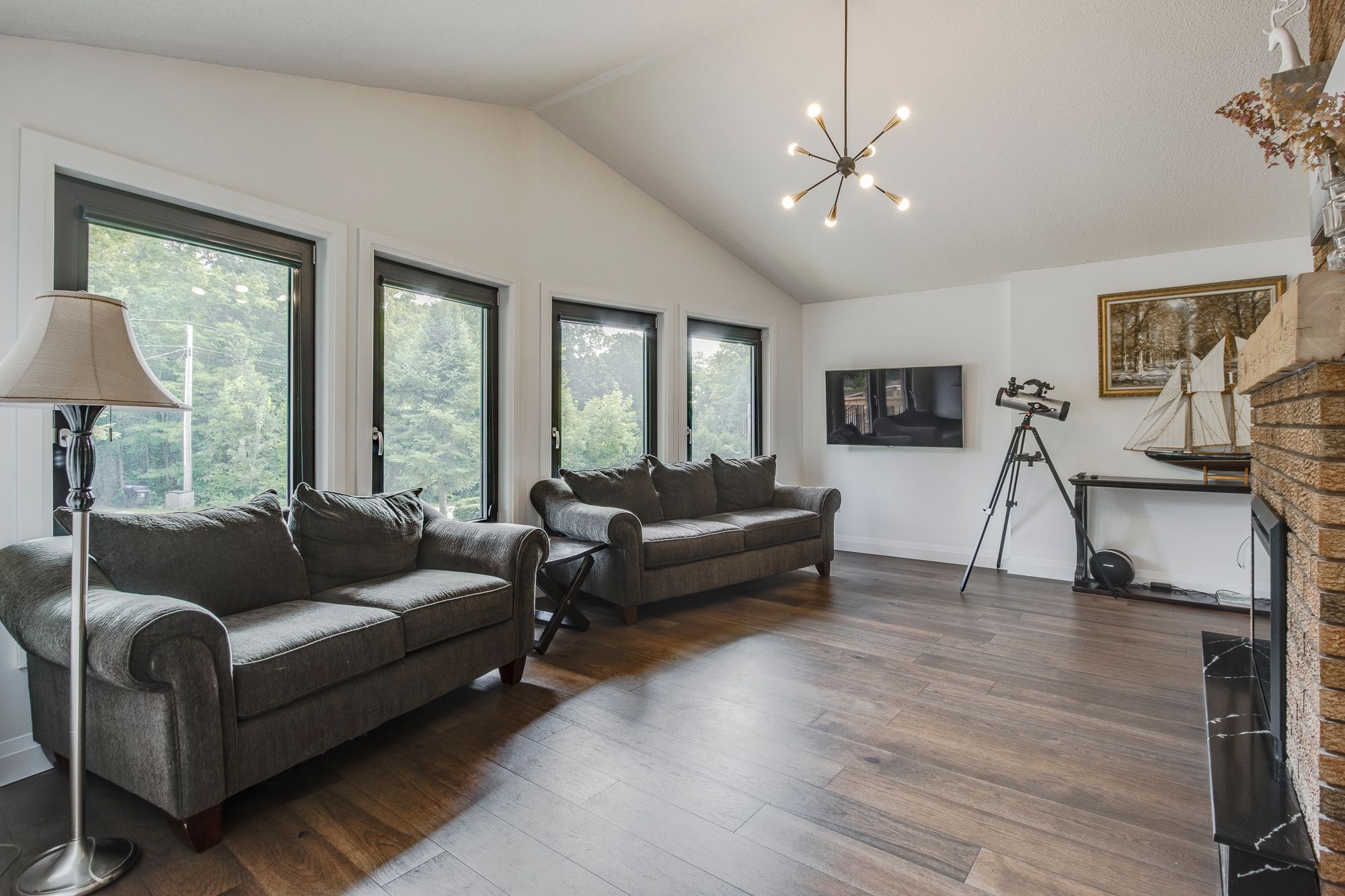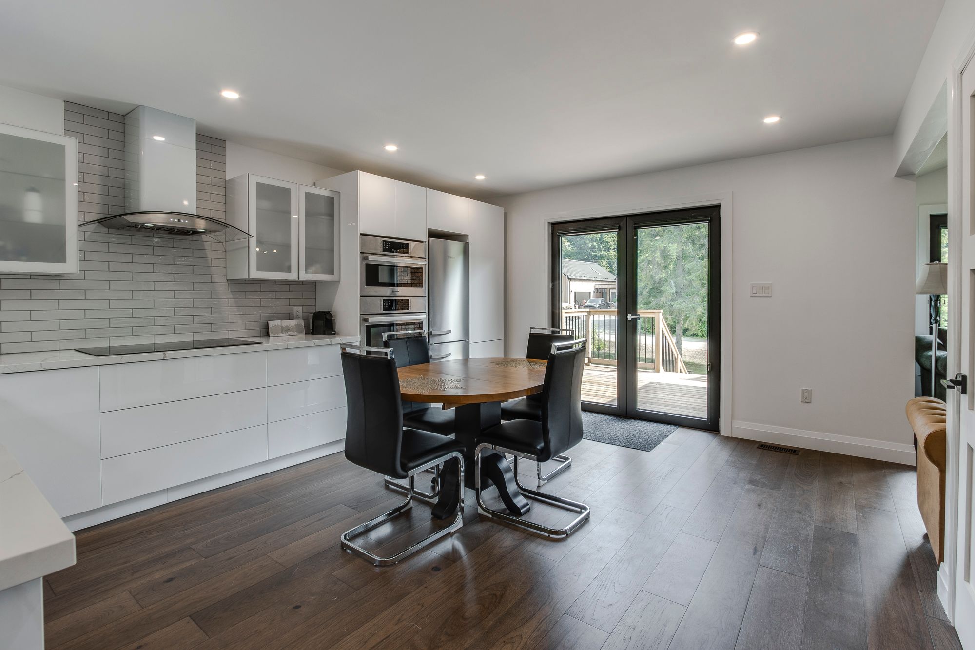 Welcome to this beautifully updated 4-bedroom, 2-bath home in the sought-after georgian highlands community, just steps from the shores of georgian bay. Nestled on a generous lot with a backyard pathway leading to the water, this property combines modern comfort with a prime location for year-round living or a getaway retreat. Inside, you'll find thoughtfully renovated spaces with high-end finishes throughout. The kitchen features quartz countertops, a wolf induction cooktop, built-in microwave and convection oven, and a miele refrigerator, while the updated baths bring a sleek, modern feel. European triple-glazed windows and doors (2022) offer exceptional energy efficiency, uv protection, soundproofing, and thermal insulation. Additional upgrades include engineered hardwood flooring, a forced air gas furnace and central air (2022), on-demand hot water, and the convenience of municipal water. The layout is ideal for flexible living. The upper level hosts 3 bedrooms and a renovated 3-piece bath, while the ground-level walkout includes a bedroom, modern 3-piece bath, and rec room - perfect for extended family or guests. An attached single garage provides convenience. As part of the georgian highlands community, new owners can apply for association membership, which grants access to private beaches, parks, and scenic pathways just beyond your backyard. Located only 90 minutes from the gta and a short drive to penetanguishene and midland, you'll enjoy easy access to shopping, dining, live theatre, museums, golf, and more. This move-in ready home blends modern upgrades with the natural beauty of georgian bay - ready to be enjoyed for years to come.