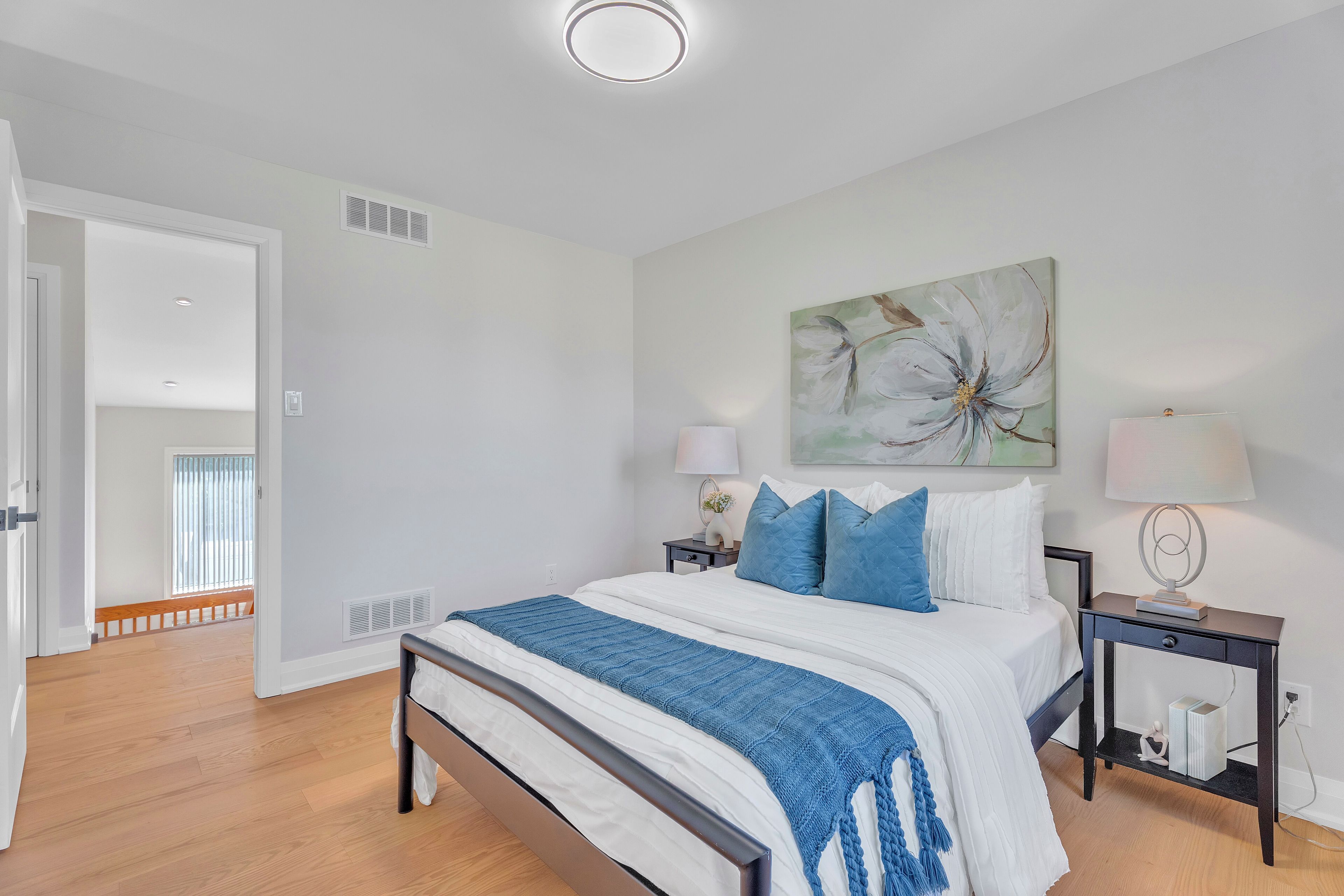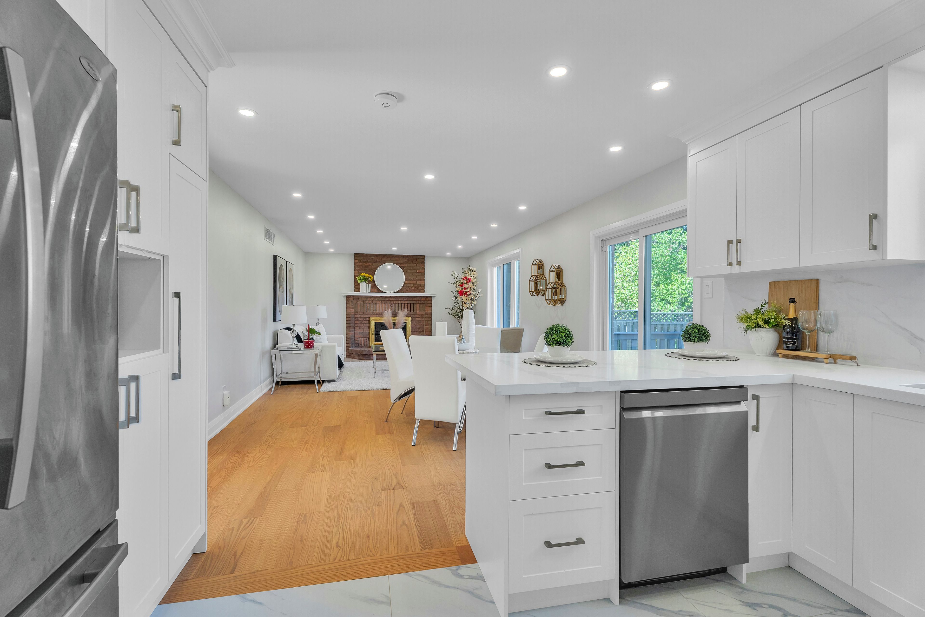 • Updated kitchen features quartz countertops and new appliances for modern cooking.