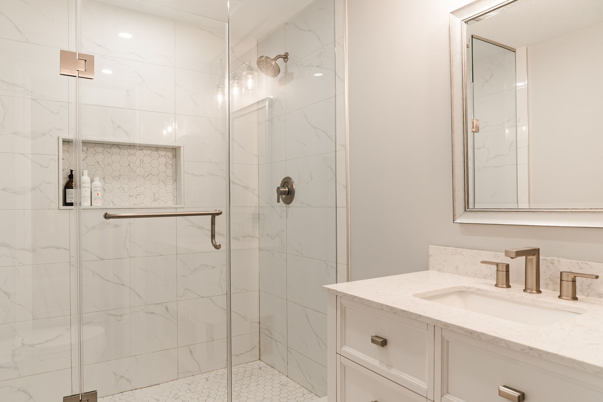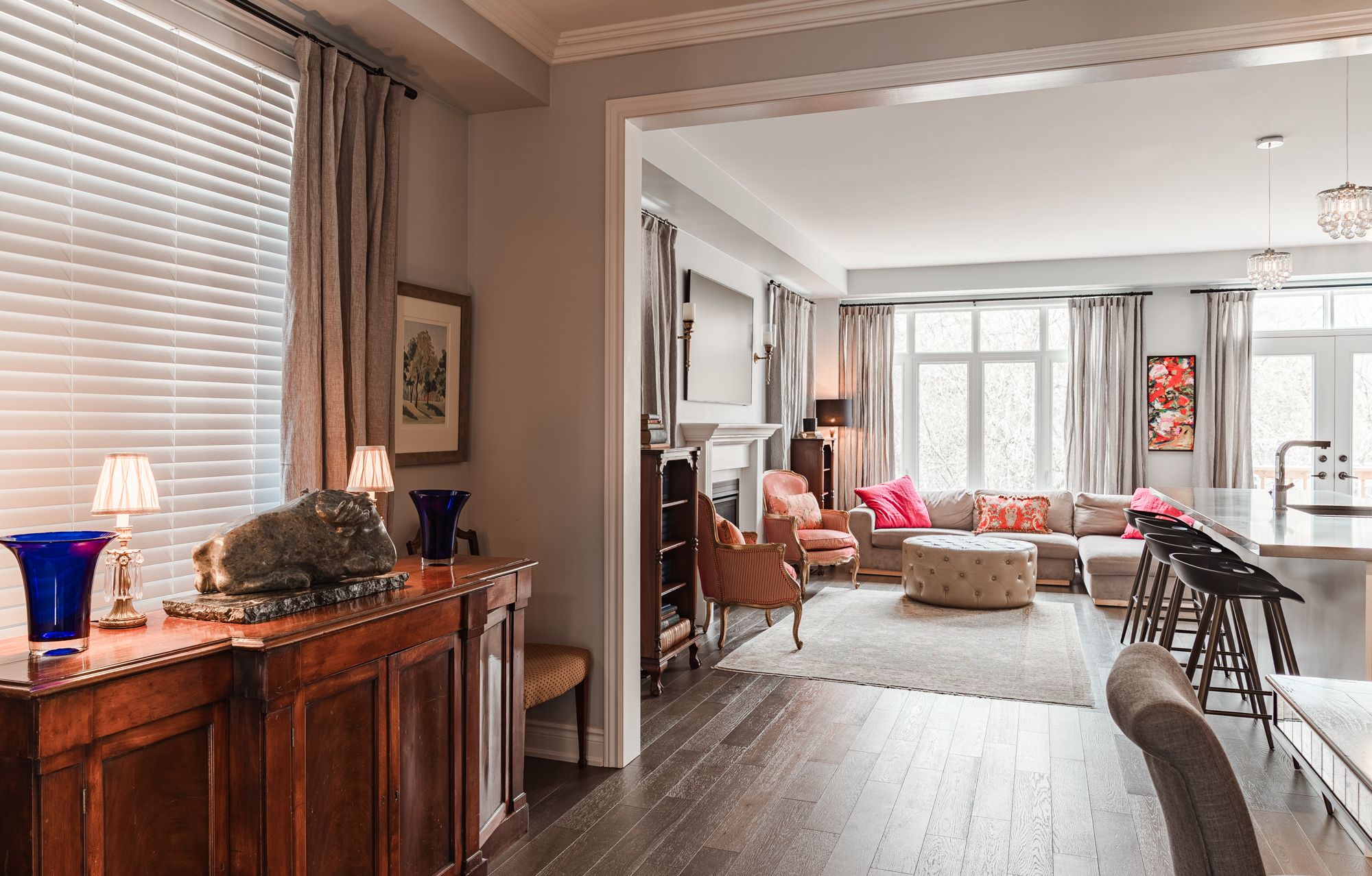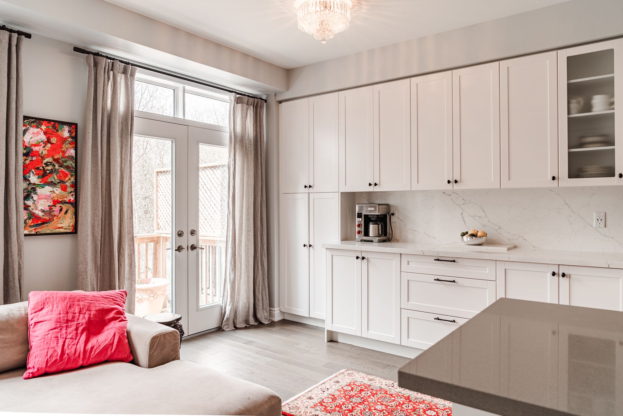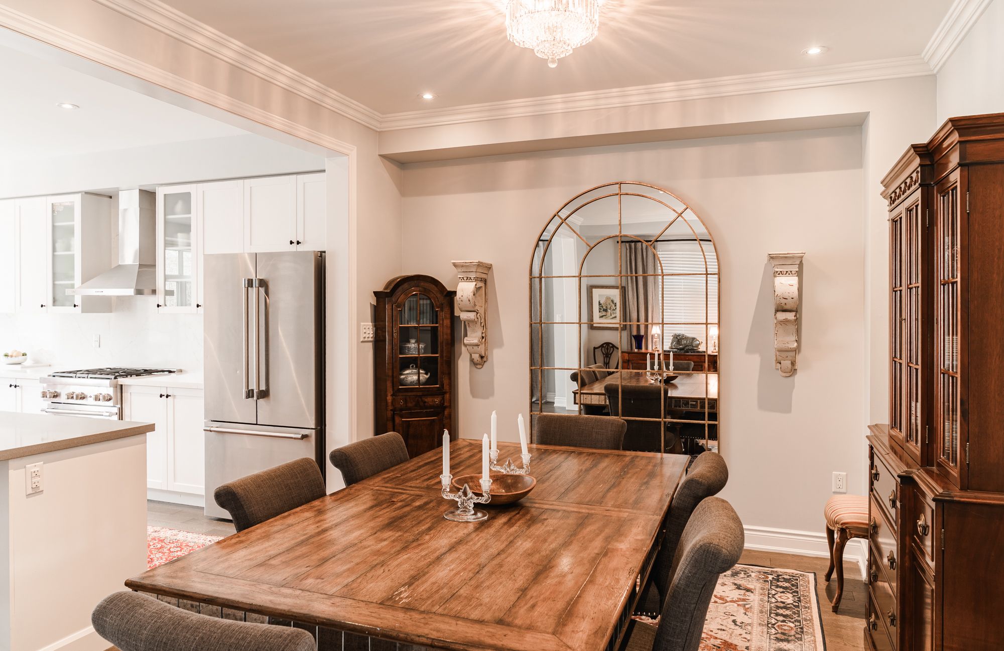 • Modern kitchen features oversized island and high-end appliances.